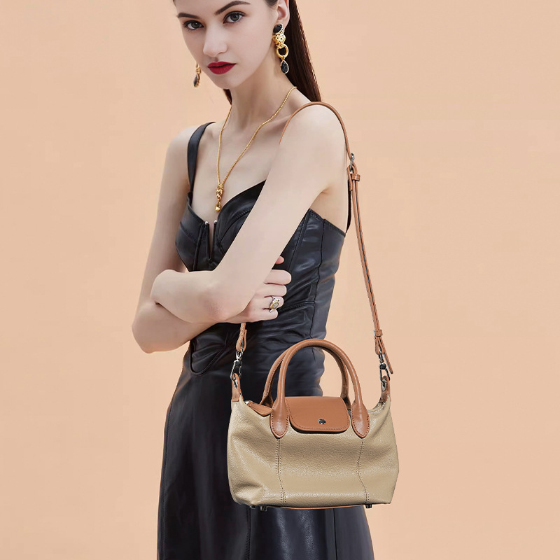 Túi xách tay dành cho nữ, được làm từ chất liệu da bò tự nhiên nguyên tấm, bền đẹp theo thời gian. Thiết kế kiểu dáng túi há cảo hiện đại, kết hợp các tông màu tương phản tinh tế. Dung tích rộng rãi, rất phù hợp để mang đi làm hoặc dùng hàng ngày. Có qu xách chắc chắn, bạn có thể dễ dàng mang theo bên mình mọi lúc mọi nơi. | Tên sản phẩm: Túi Xách Nữ Chất Liệu Da Bò - Túi Ví Nữ | Mã sản phẩm: A0329 - Giá: 1.540.000đ | Mã nhà sản xuất: GUDLE-G04Hình ảnh sản phẩm