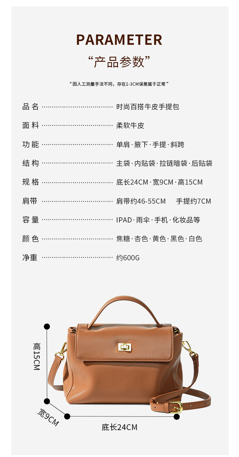 Túi xách tay dành cho nữ, kiểu dáng mới cho mùa hè. Chất liệu da thật cho cảm giác mềm mại và bền lâu. Thiết kế nhỏ gọn nhưng vẫn rất rộng rãi, đựng vừa nhiều vật dụng cá nhân cần thiết. Bạn có thể đeo làm túi đeo chéo hoặc xách tay một cách linh hoạt. Kiểu dáng đơn giản, dễ phối hợp với nhiều trang phục khác nhau. Dùng hàng ngày cho các hoạt động đi làm, đi chơi đều phù hợp. | Tên sản phẩm: Túi Xách Nữ Chất Liệu Da Bò Hàng Mùa Hè - Túi Ví Nữ | Mã sản phẩm: A0345 - Giá: 1.420.000đ | Mã nhà sản xuất: GUDLE-G04Hình ảnh sản phẩm