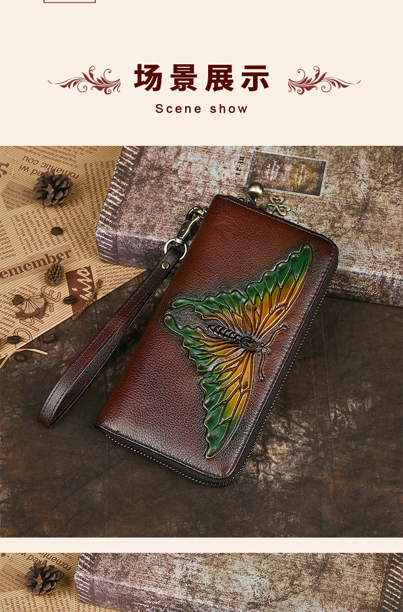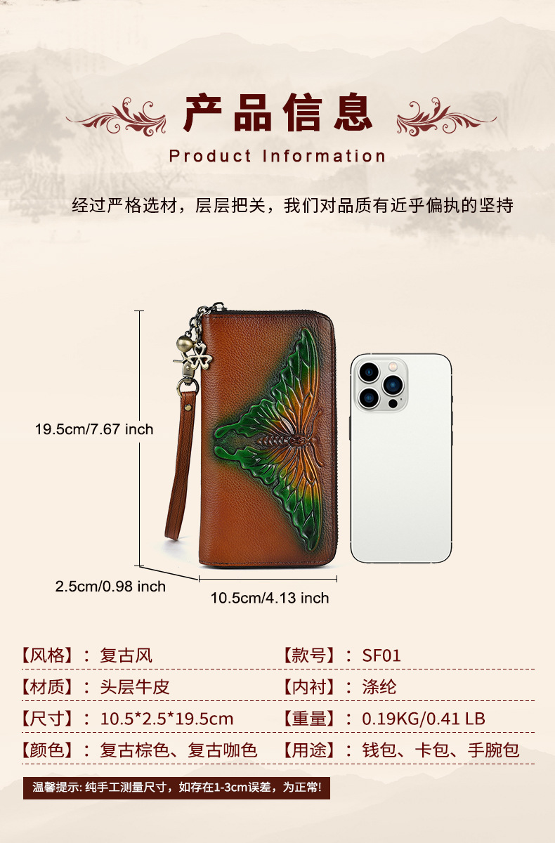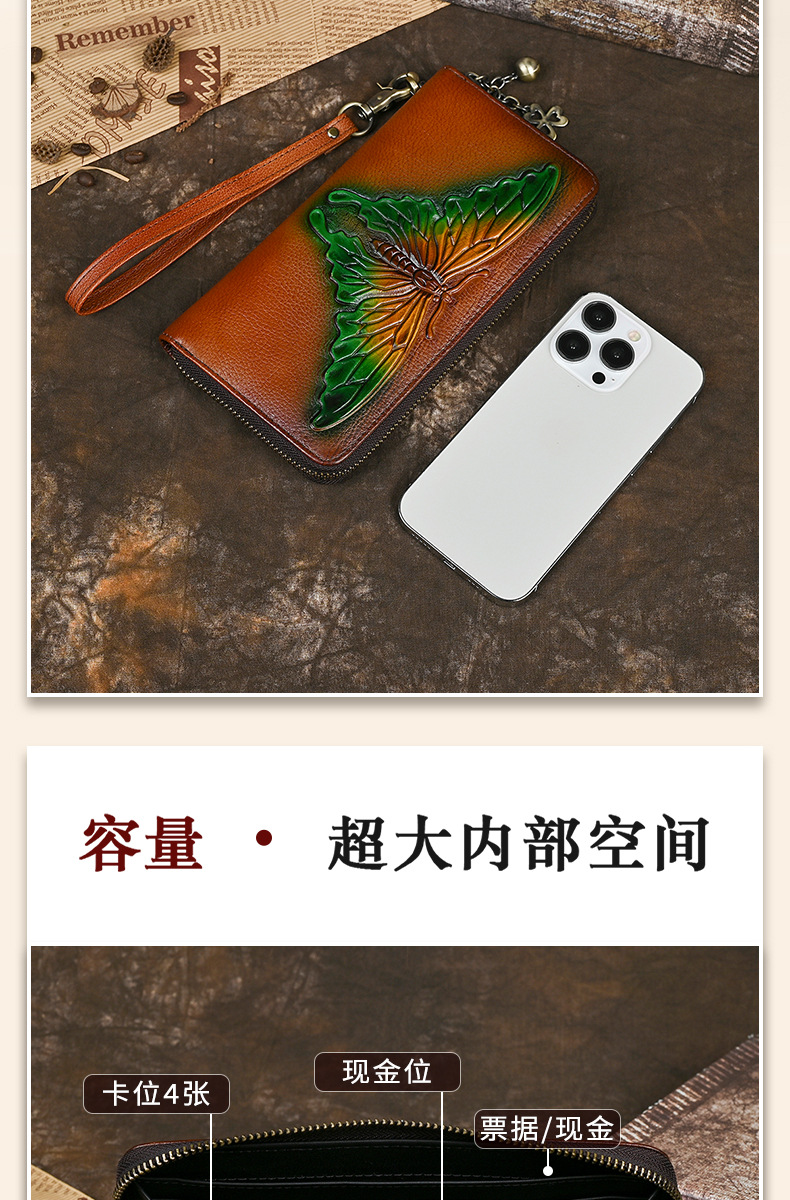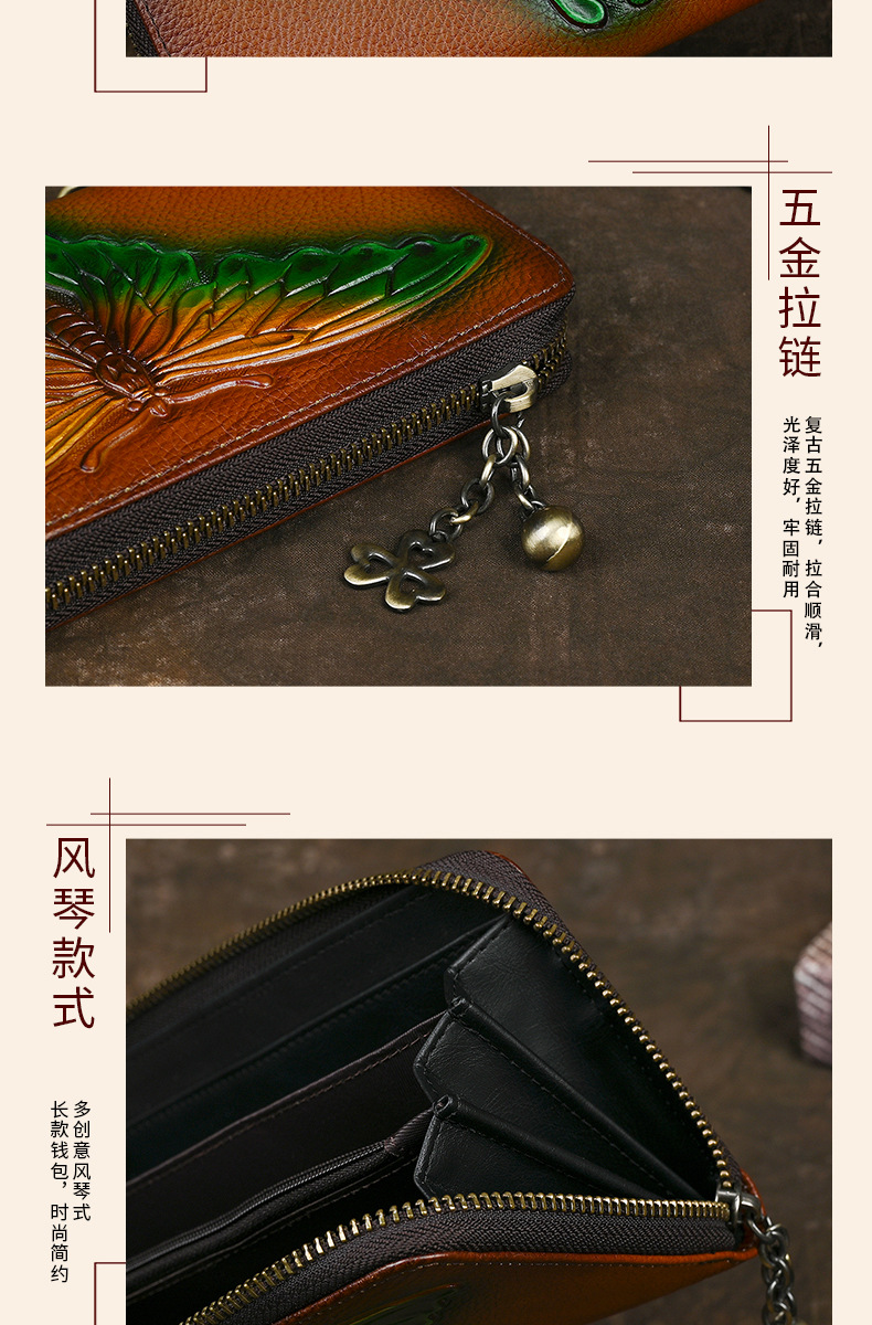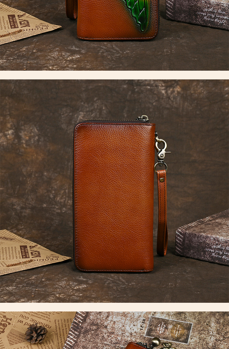 Ví dài nữ dáng dài với phong cách cổ điển và họa tiết dân tộc tinh xảo. Sản phẩm được làm từ chất liệu da thật bền đẹp, bên trong có nhiều ngăn đa năng giúp bạn dễ dàng sắp xếp tiền, thẻ và các vật dụng cá nhân. Khóa kéo mượt mà cùng ngăn chính rộng rãi, tiện lợi cho việc sử dụng hằng ngày. Rất phù hợp để mang theo bên mình hoặc kết hợp cùng các phụ kiện khác. | Tên sản phẩm: Ví Bóp Nữ Chất Liệu Da Bò Họa Tiết Hoa Phục Cổ Cổ Điển - Túi Ví Nữ | Mã sản phẩm: A0353 - Giá: 670.000đ | Mã nhà sản xuất: GUDGE-G02Hình ảnh sản phẩm