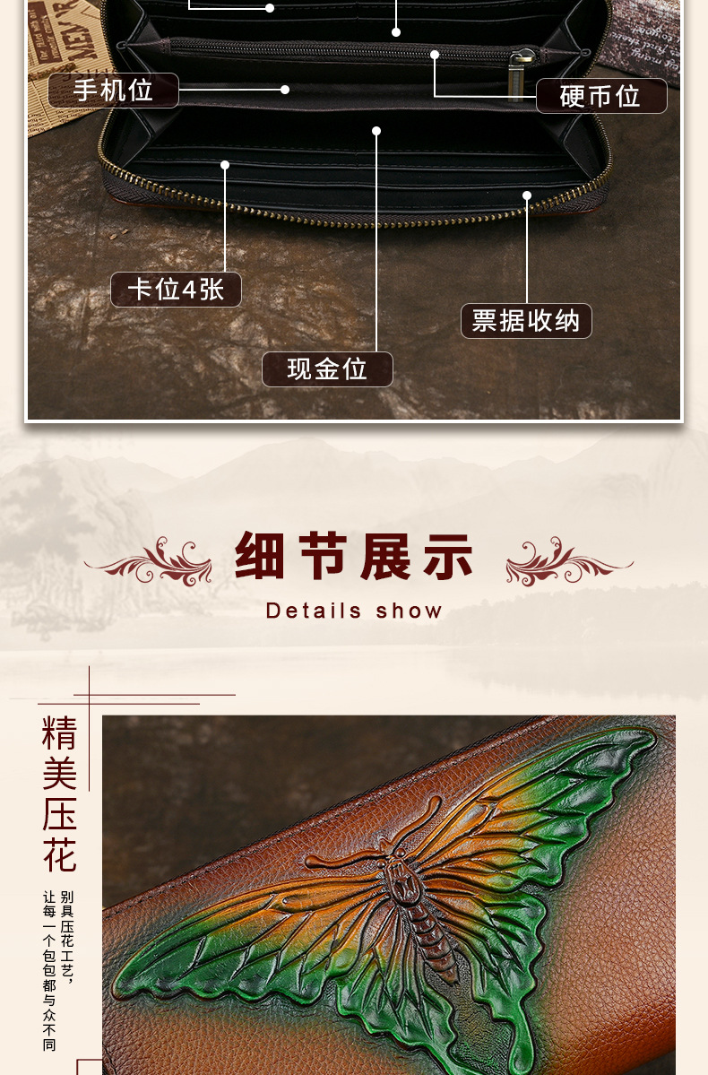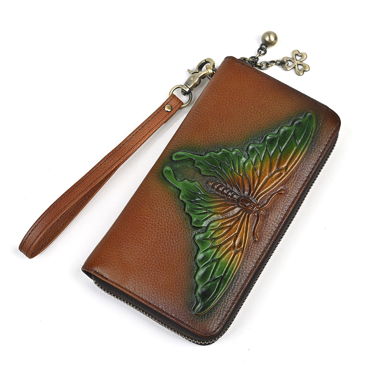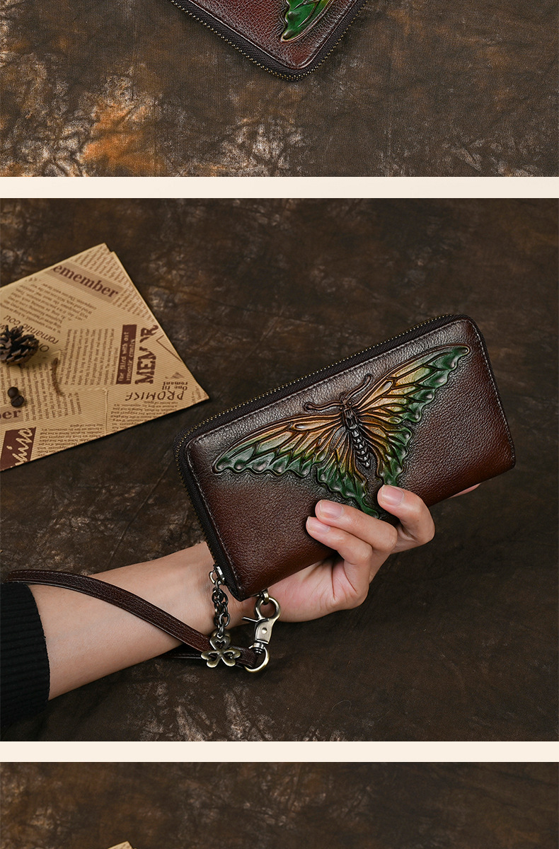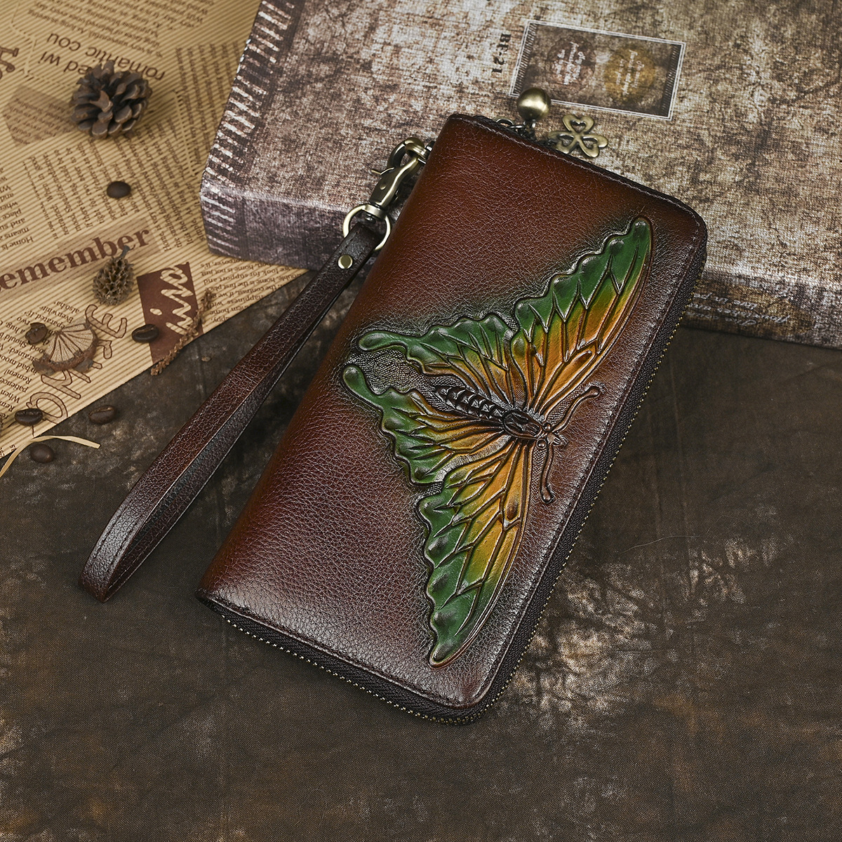 Ví dài nữ dáng dài với phong cách cổ điển và họa tiết dân tộc tinh xảo. Sản phẩm được làm từ chất liệu da thật bền đẹp, bên trong có nhiều ngăn đa năng giúp bạn dễ dàng sắp xếp tiền, thẻ và các vật dụng cá nhân. Khóa kéo mượt mà cùng ngăn chính rộng rãi, tiện lợi cho việc sử dụng hằng ngày. Rất phù hợp để mang theo bên mình hoặc kết hợp cùng các phụ kiện khác. | Tên sản phẩm: Ví Bóp Nữ Chất Liệu Da Bò Họa Tiết Hoa Phục Cổ Cổ Điển - Túi Ví Nữ | Mã sản phẩm: A0353 - Giá: 670.000đ | Mã nhà sản xuất: GUDGE-G02Hình ảnh sản phẩm