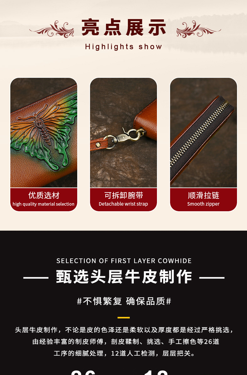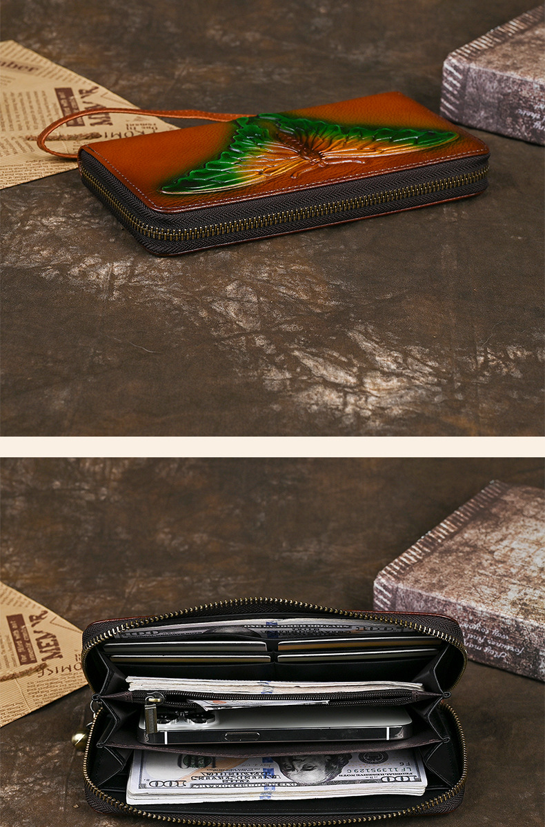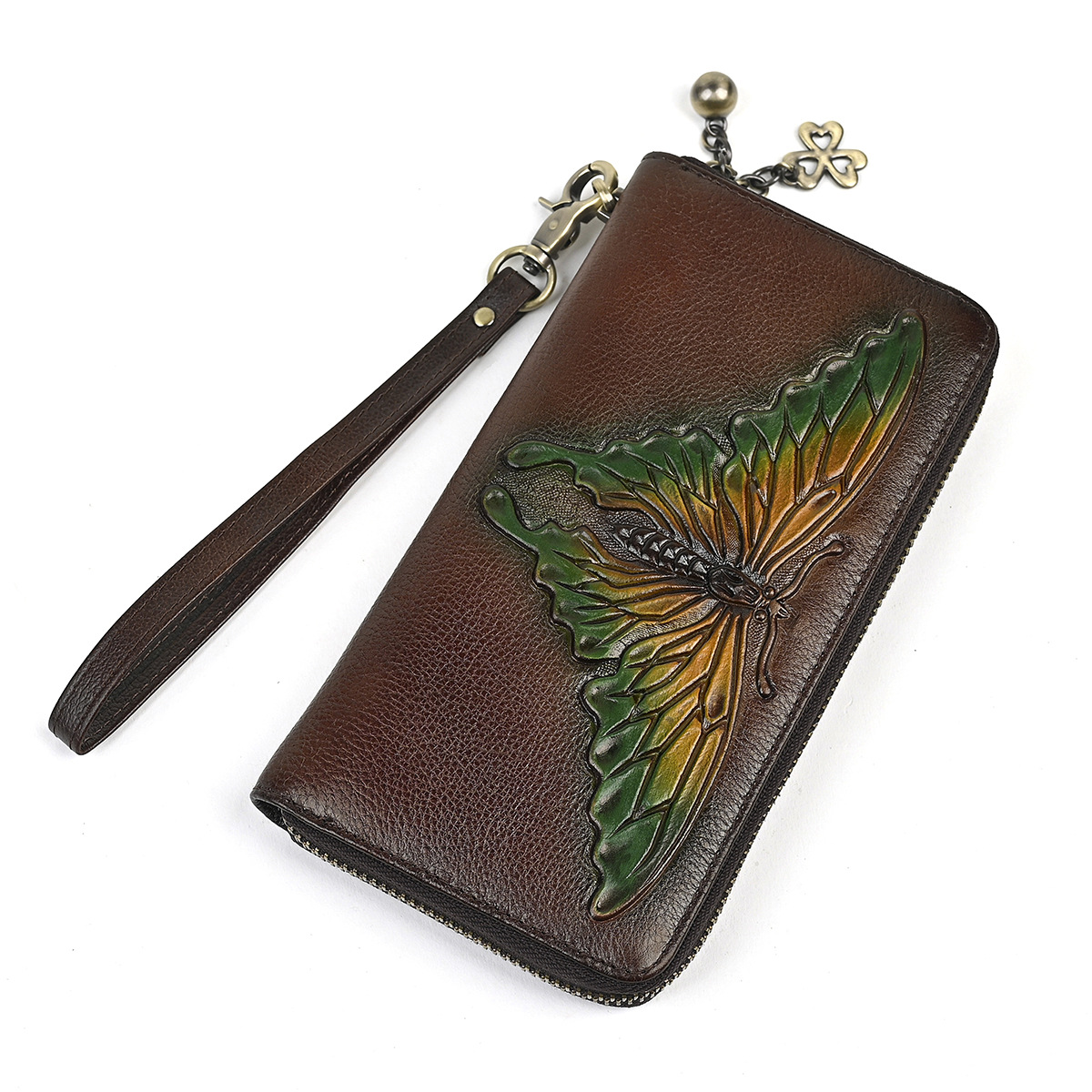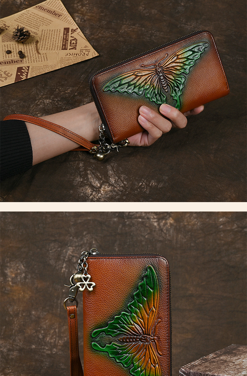 Ví dài nữ dáng dài với phong cách cổ điển và họa tiết dân tộc tinh xảo. Sản phẩm được làm từ chất liệu da thật bền đẹp, bên trong có nhiều ngăn đa năng giúp bạn dễ dàng sắp xếp tiền, thẻ và các vật dụng cá nhân. Khóa kéo mượt mà cùng ngăn chính rộng rãi, tiện lợi cho việc sử dụng hằng ngày. Rất phù hợp để mang theo bên mình hoặc kết hợp cùng các phụ kiện khác. | Tên sản phẩm: Ví Bóp Nữ Chất Liệu Da Bò Họa Tiết Hoa Phục Cổ Cổ Điển - Túi Ví Nữ | Mã sản phẩm: A0353 - Giá: 670.000đ | Mã nhà sản xuất: GUDGE-G02Hình ảnh sản phẩm