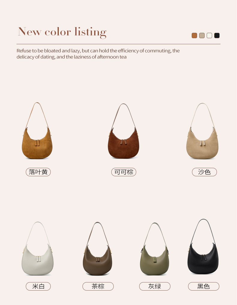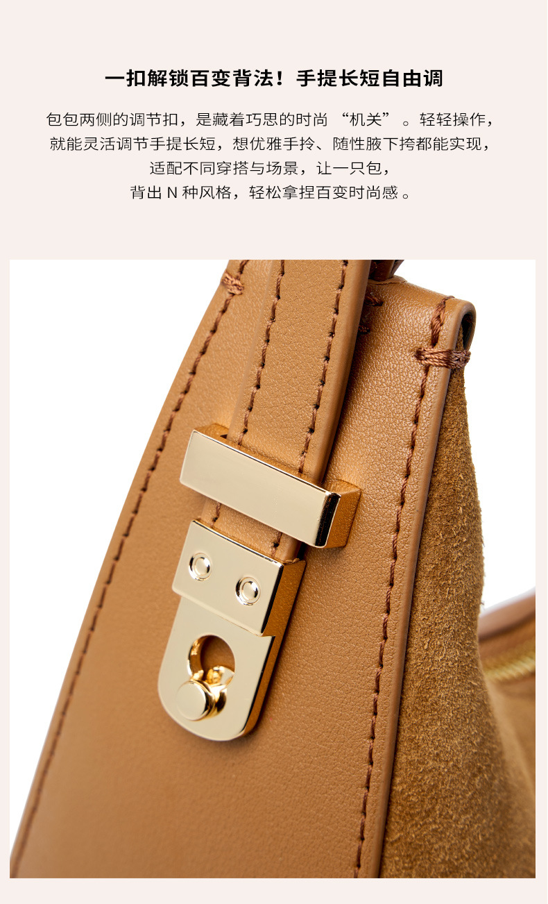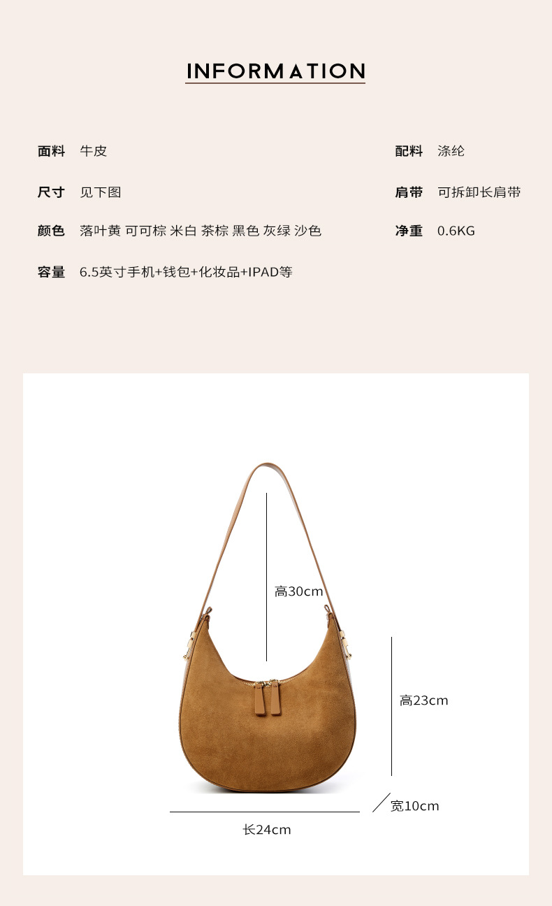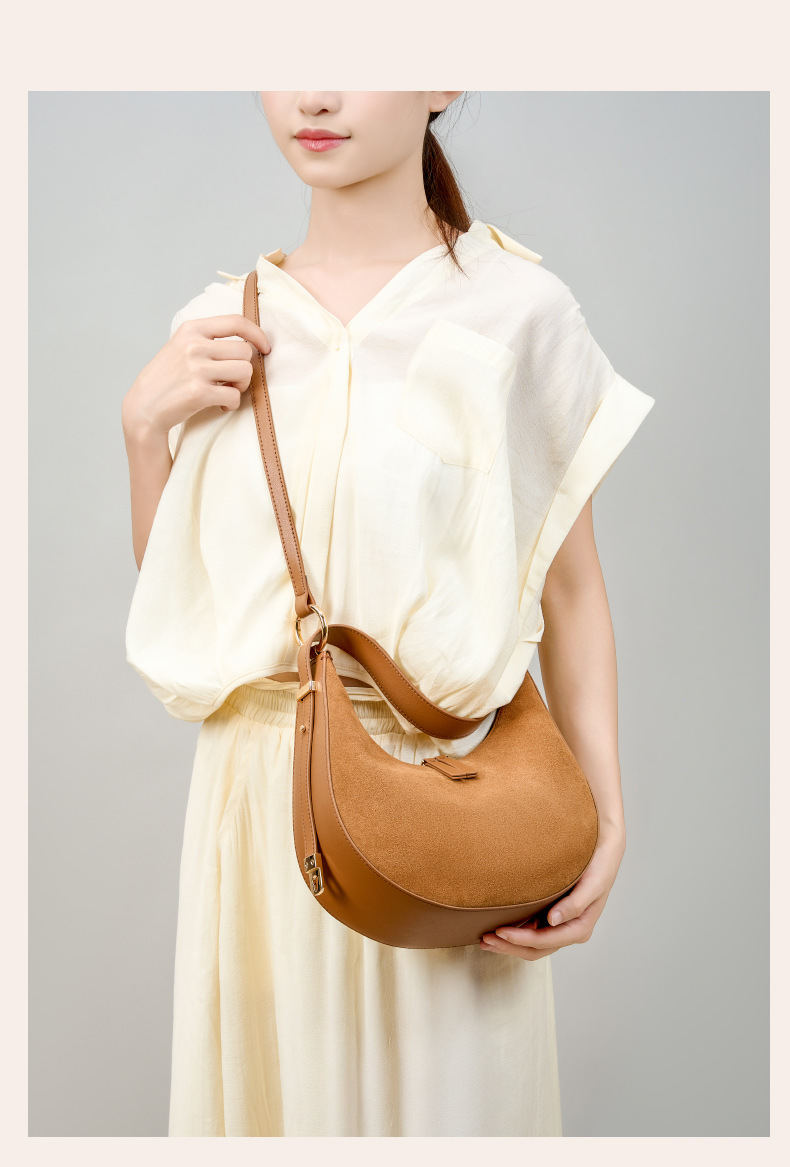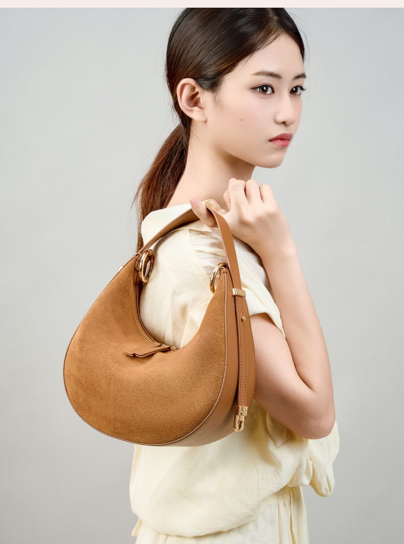 Túi xách dáng trăng lưỡi liềm ôm khít vào nách, thiết kế dành riêng cho chị em. Kiểu dáng đơn giản, hiện đại, dễ dàng phối hợp cùng nhiều trang phục khi đi làm hay dạo phố. Túi được làm từ chất liệu da mềm, bên trong rộng rãi giúp đựng vừa nhiều vật dụng cá nhân cần thiết. Có thể xách tay bằng qu hoặc khoác lên v một cách thoải mái và tiện lợi. | Tên sản phẩm: Túi Xách Nữ Chất Liệu Da Bò - Túi Ví Nữ | Mã sản phẩm: A0392 - Giá: 1.630.000đ | Mã nhà sản xuất: GUDLE-G05Hình ảnh sản phẩm
