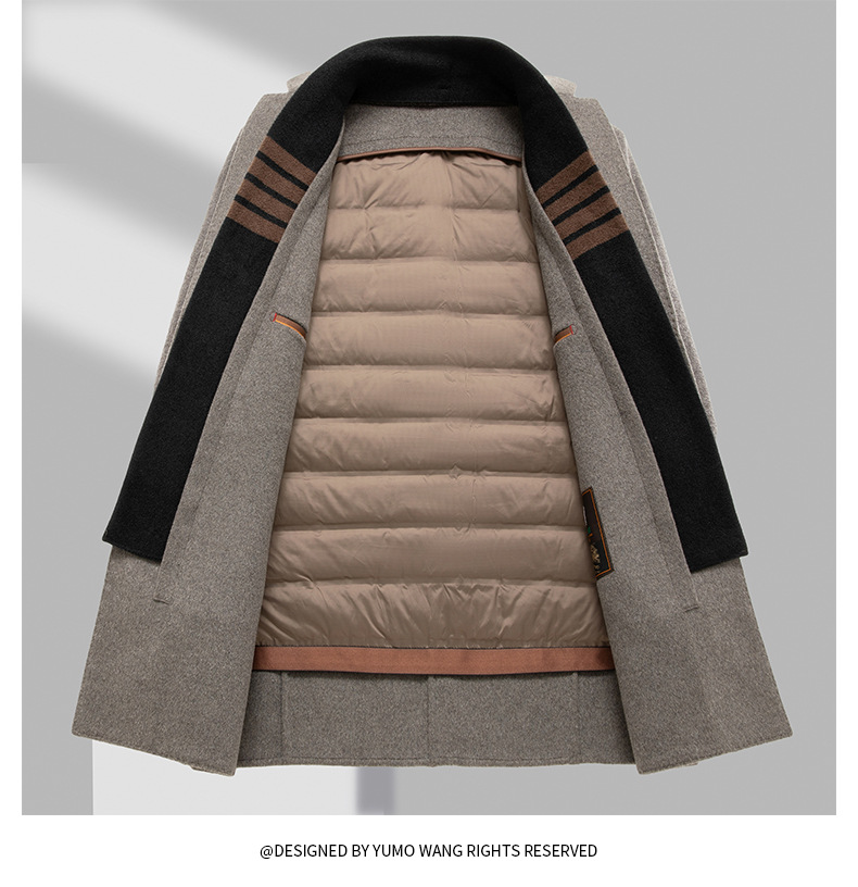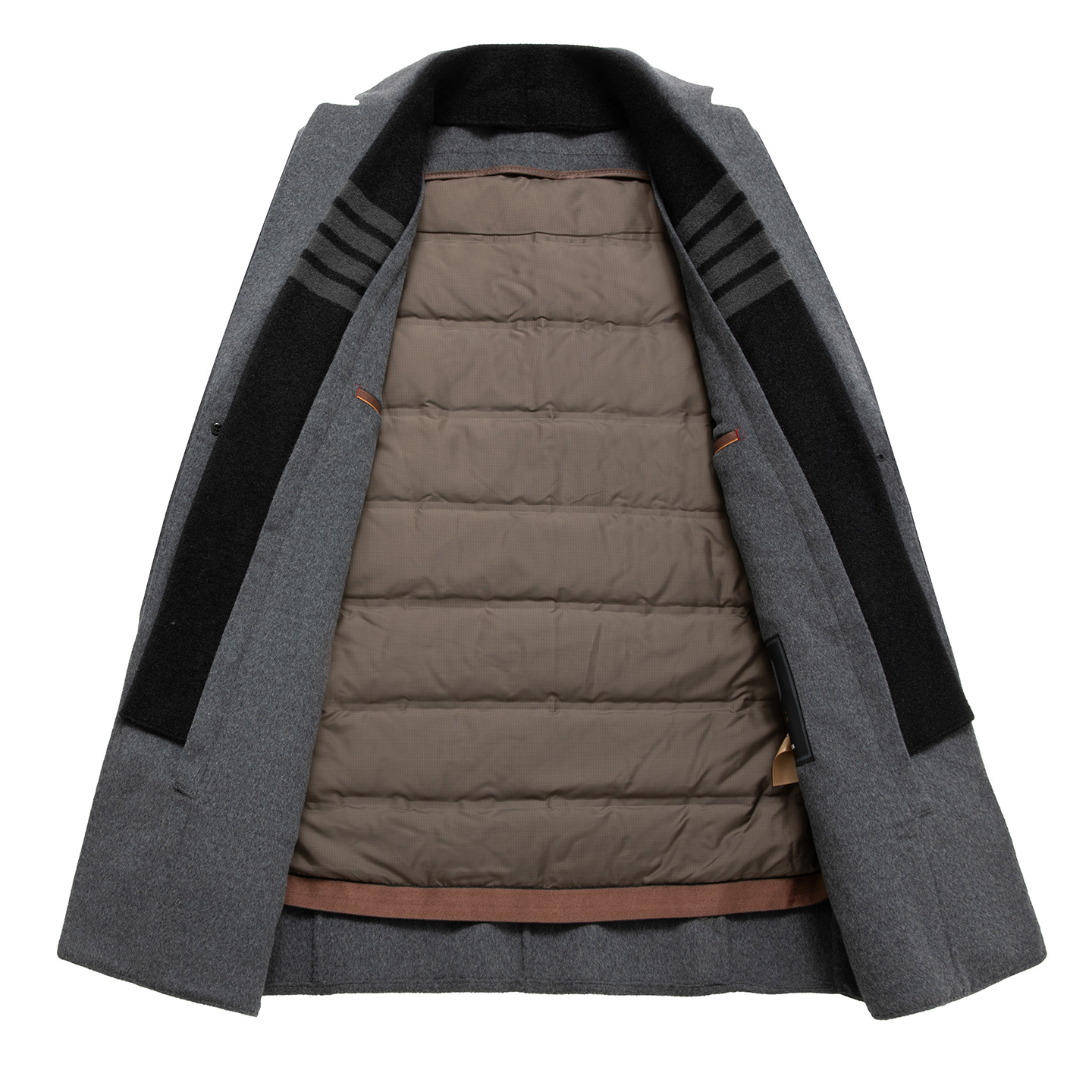 Áo khoác dành cho nam, kiểu dáng dài vừa phải, phù hợp mặc trong tiết trời thu đông. Thiết kế kết hợp giữa dáng vẻ lịch sự và nét thoải mái, dễ dàng phối với nhiều trang phục. Điểm nổi bật là phần áo lông vũ bên trong có thể tháo rời, giúp giữ ấm hiệu quả khi trời lạnh giá. Chất liệu chính từ len dệt mang lại cảm giác mềm mại và ấm áp. Cách sử dụng đơn giản, mặc trực tiếp như áo khoác thông thường hoặc kết hợp cùng bộ lót để tăng thêm khả năng chống rét. | Tên sản phẩm: Áo Khoác Nam Hàng Mùa Xuân Thu Đông - Thời Trang Nam | Mã sản phẩm: A0394 - Giá: 2.960.000đ | Mã nhà sản xuất: WATYM-G06Hình ảnh sản phẩm