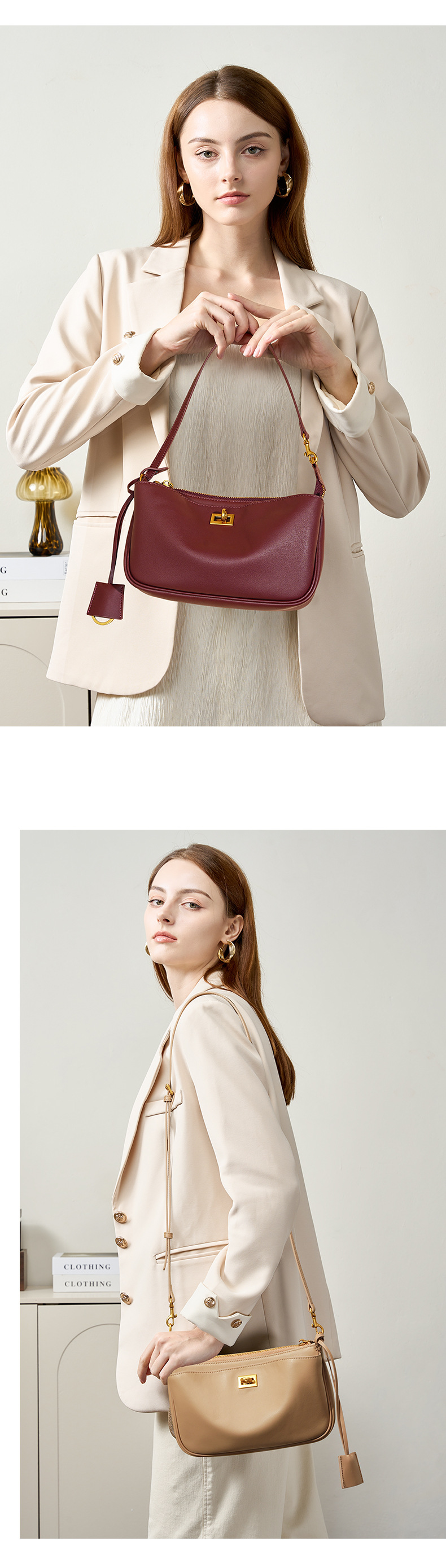Túi xách tay dáng ống, thiết kế nhỏ gọn và dễ phối đồ. Sản phẩm làm từ chất liệu da mềm, điểm nhấn là khóa khóa kim loại tinh tế. Có thể đeo làm túi cầm tay, túi khoác v hoặc túi đeo dưới nách một cách linh hoạt. Dây đeo điều chỉnh được giúp bạn dễ dàng thay đổi kiểu đeo phù hợp với từng dịp sử dụng. Kiểu dáng đơn giản nhưng không kém phần thời trang. | Tên sản phẩm: Túi Xách Nữ Chất Liệu Da Bò - Túi Ví Nữ | Mã sản phẩm: A0401 - Giá: 1.630.000đ | Mã nhà sản xuất: GUDLE-G05Hình ảnh sản phẩm