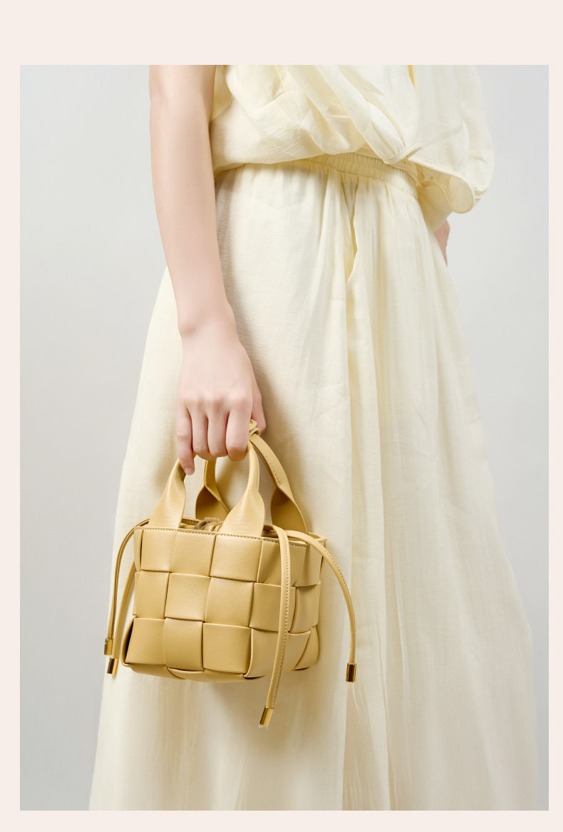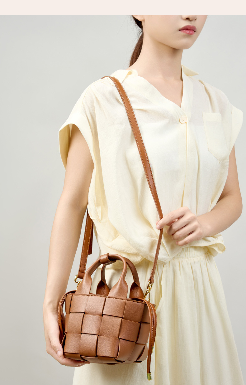 Túi được đan từ chất liệu da bò mềm mại, tạo nên vẻ đẹp thủ công tinh tế. Kiểu dáng hình giỏ xách, thân túi dạng thùng rộng rãi giúp bạn dễ dàng sắp xếp đồ đạc bên trong. Sản phẩm có hai cách mang linh hoạt: có thể đeo trên v hoặc khoác chéo người tùy theo sở thích và nhu cầu sử dụng. Đây là mẫu mã mới, phù hợp cho nhiều dịp trong ngày. Khi dùng, tránh để túi tiếp xúc trực tiếp với mưa hoặc các vật sắc nhọn. | Tên sản phẩm: Túi Xách Nữ Chất Liệu Da Bò - Túi Ví Nữ | Mã sản phẩm: A0453 - Giá: 1.490.000đ | Mã nhà sản xuất: GUDLE-G04Hình ảnh sản phẩm