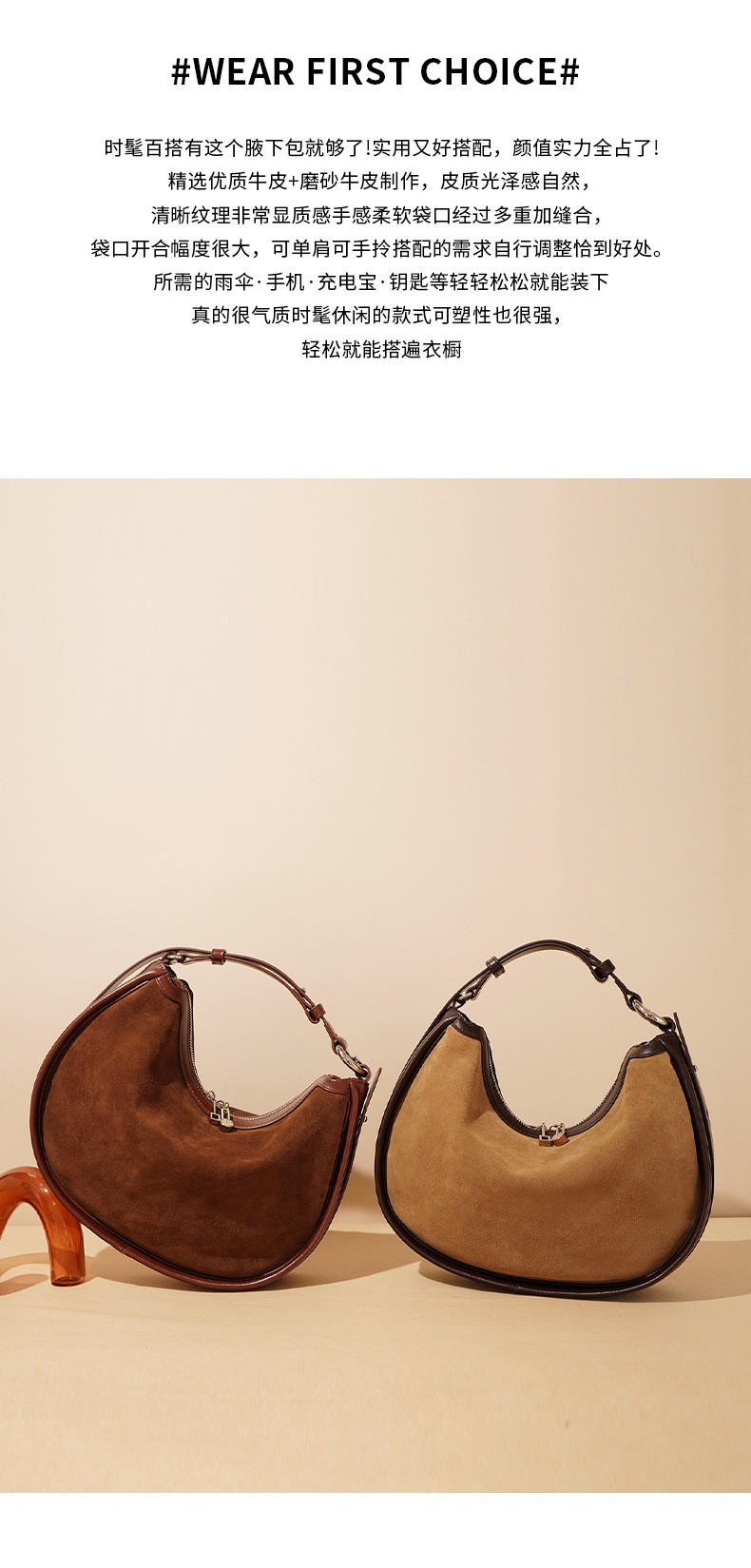 Chiếc túi hình vầng trăng với chất da mềm mịn, mang phong cách hoài cổ nhẹ nhàng. Dây đeo có thể điều chỉnh linh hoạt, cho phép bạn đeo chéo người hoặc khoác trên v một cách thoải mái. Thiết kế nhỏ gọn nhưng vẫn đủ rộng để đựng các vật dụng cần thiết hằng ngày. Rất phù hợp để sử dụng khi đi làm hoặc dạo phố. Bạn có thể dễ dàng phối hợp với nhiều trang phục khác nhau. | Tên sản phẩm: Túi Xách Nữ Chất Liệu Da Bò Phục Cổ Cổ Điển - Túi Ví Nữ | Mã sản phẩm: A0460 - Giá: 1.380.000đ | Mã nhà sản xuất: GUDLE-G04Hình ảnh sản phẩm