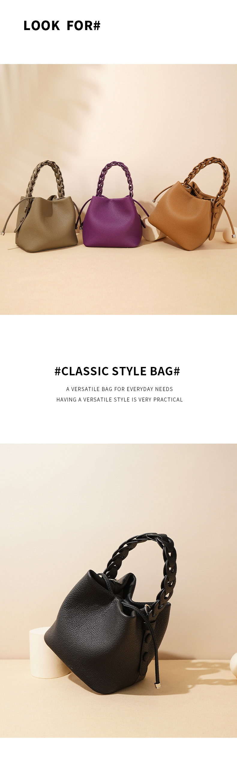 Chiếc túi xách nhỏ dáng đeo chéo này được làm từ chất liệu da thật, mang đến cảm giác mềm mại và bền bỉ. Kiểu dáng túi tròn như chiếc xô nhỏ, kết hợp cả qu đeo và qu xách, rất tiện lợi. Bạn có thể đeo chéo người hoặc xách tay một cách thoải mái khi đi làm hay dạo phố. Túi đủ rộng để đựng ví, điện thoại, chìa khóa và một vài món đồ cá nhân nhỏ gọn. | Tên sản phẩm: Túi Xách Nữ Chất Liệu Da Bò - Túi Ví Nữ | Mã sản phẩm: A0461 - Giá: 1.250.000đ | Mã nhà sản xuất: GUDLE-G04Hình ảnh sản phẩm