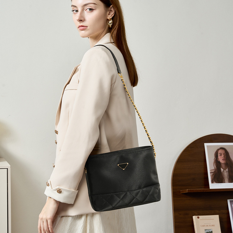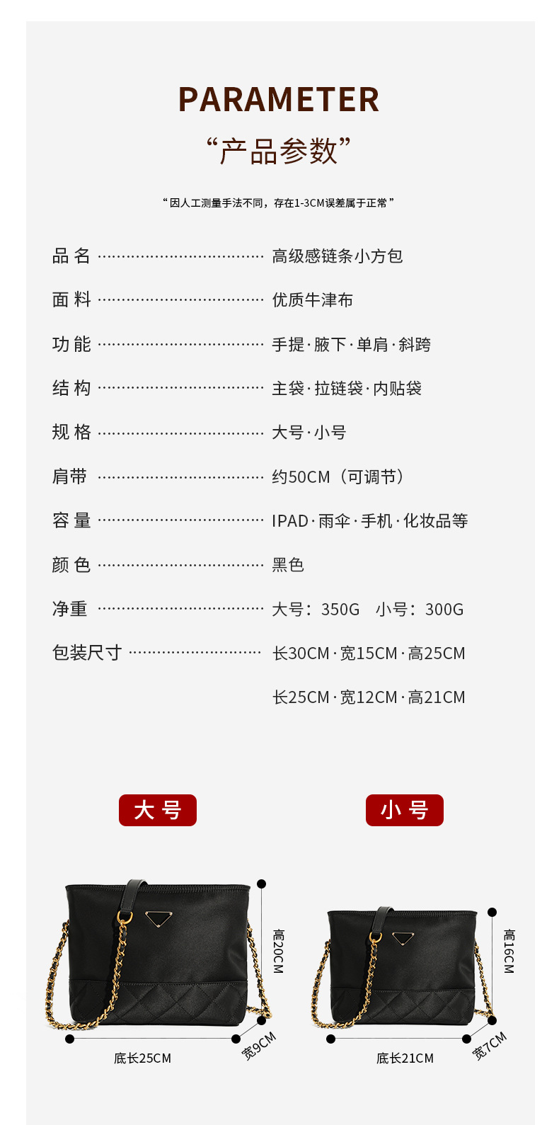 Túi xách kiểu dáng vuông nhỏ, màu đen dễ phối đồ. Dây đeo làm từ mắt xích kim loại, có thể đeo v hoặc khoác chéo. Chất liệu vải oxford bền chắc, mang lại không gian rộng rãi bên trong. Thiết kế nhẹ nhàng, phù hợp cho việc di chuyển hằng ngày và nhiều hoàn cảnh sử dụng. Cách dùng đơn giản, chỉ cần đựng các vật dụng cá nhân và mang theo bên mình. | Tên sản phẩm: Túi Xách Nữ - Túi Ví Nữ | Mã sản phẩm: A0466 - Giá: 990.000đ | Mã nhà sản xuất: GUDLE-G03Hình ảnh sản phẩm
