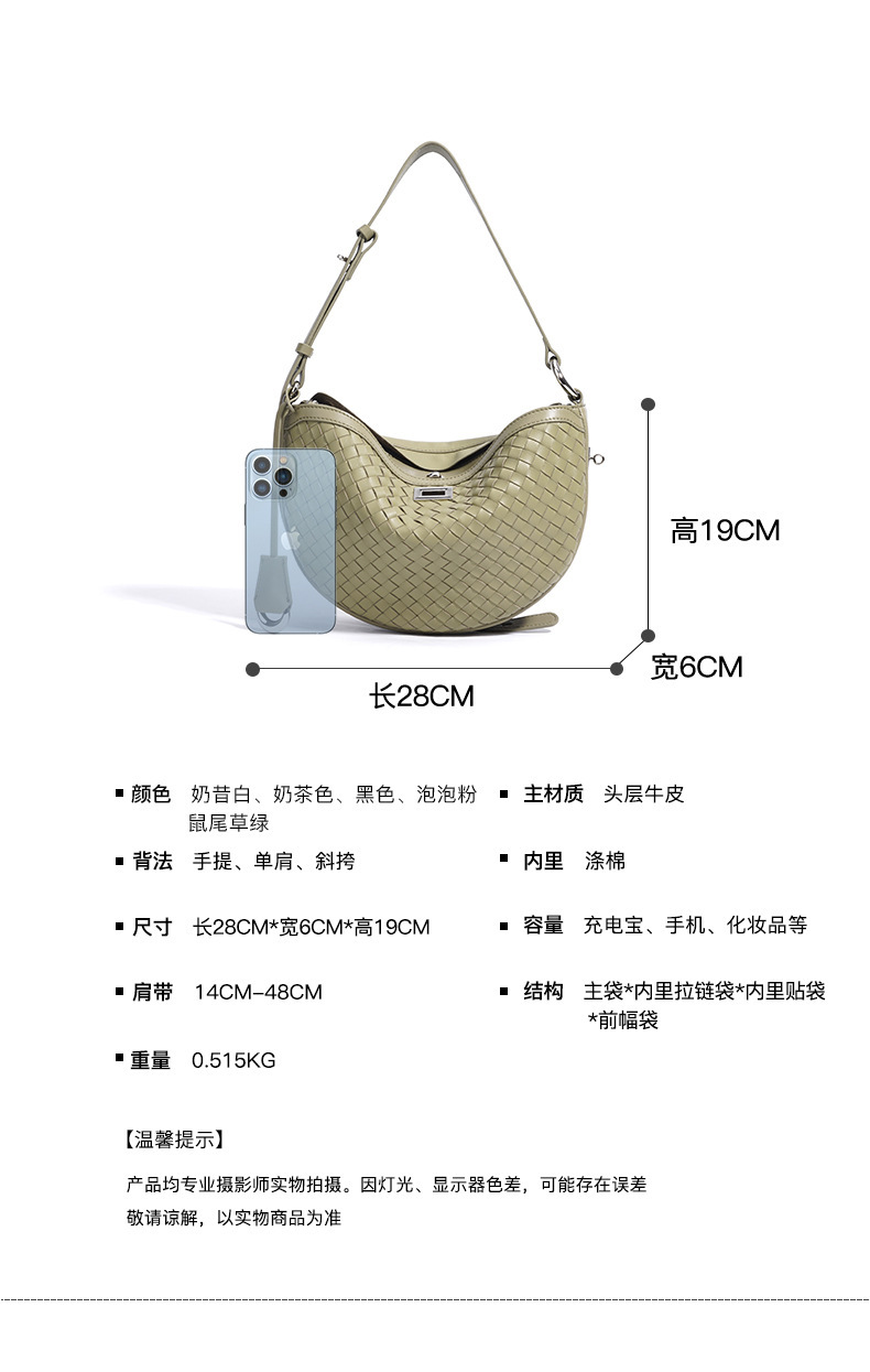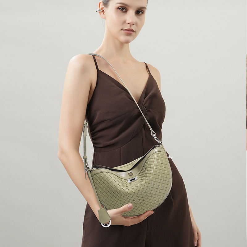 Túi hình trăng khuyết mới ra mắt, được làm từ chất da bò mềm mại với phần thân túi đan tay tinh tế. Kiểu dáng nhỏ gọn, phù hợp mang theo khi dạo phố hay gặp gỡ bạn bè. Thiết kế đa năng cho phép bạn đeo chéo, xách tay hoặc kẹp dưới cánh tay một cách thoải mái. Cách sử dụng đơn giản: chỉ cần điều chỉnh dây đeo theo ý thích và sắp xếp đồ dùng cá nhân vào các ngăn tiện lợi. | Tên sản phẩm: Túi Xách Nữ Chất Liệu Da Bò Hàng Mùa Hè - Túi Ví Nữ | Mã sản phẩm: A0493 - Giá: 1.390.000đ | Mã nhà sản xuất: GUDLE-G04Hình ảnh sản phẩm