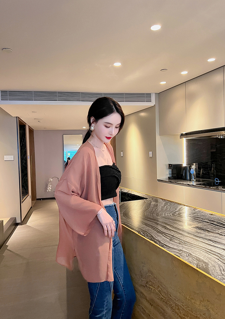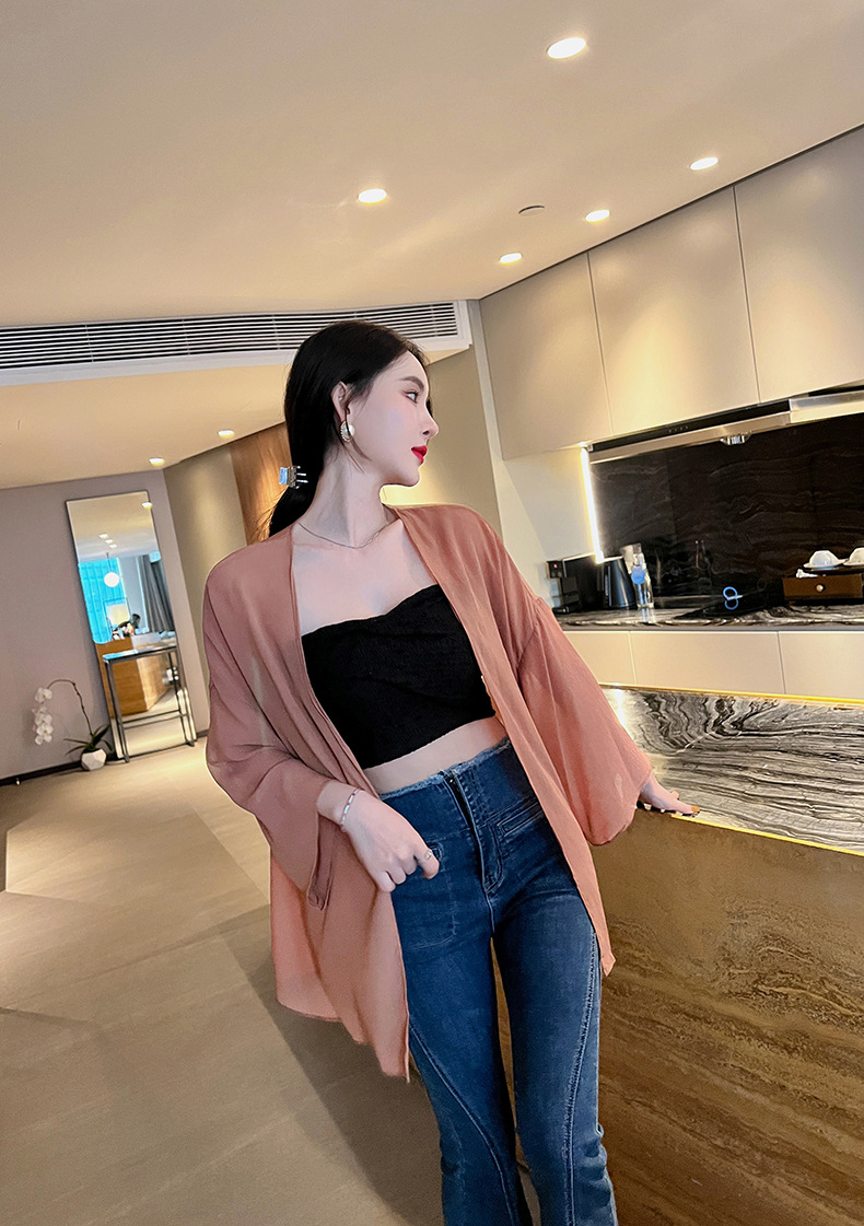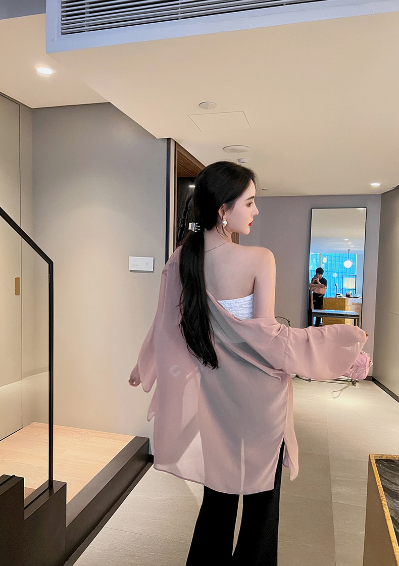 Áo khoác mỏng kiểu dáng châu Âu dành cho nữ, phù hợp mặc trong môi trường máy lạnh hoặc khi ra nắng. Chất vải mềm mại, nhẹ nhàng tạo cảm giác thoải mái, dễ chịu khi mặc. Thiết kế đơn giản, dễ phối với nhiều loại trang phục khác nhau như đầm, quần tây hay quần jean. Có thể dùng làm áo bảo vệ da khi đi ngoài trời hoặc giữ ấm nhẹ trong phòng. | Tên sản phẩm: Áo Sơ Mi Nữ Chất Liệu Vải Voan Hàng Mùa Hè Phong Cách Âu Mỹ - Thời Trang Nữ | Mã sản phẩm: A0563 - Giá: 530.000đ | Mã nhà sản xuất: CHDG-G01Hình ảnh sản phẩm