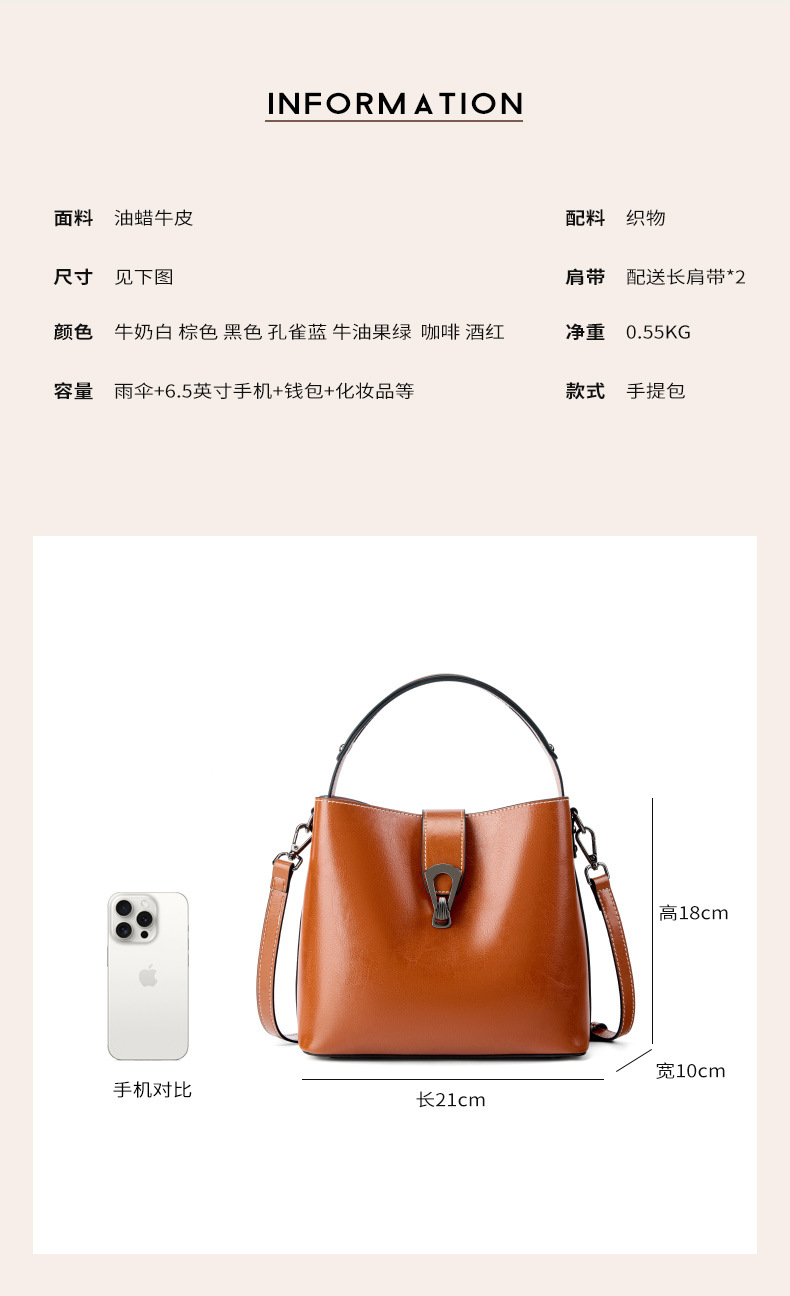 Túi xách nữ được làm từ chất liệu da mềm mịn có lớp phủ dầu sáp, tạo vẻ ngoài đầy cá tính. Thiết kế dáng thùng với qu đeo rộng, vừa khoác chéo thoải mái vừa có thể xách tay một cách tiện lợi. Dung tích bên trong rộng rãi, giúp bạn sắp xếp được nhiều vật dụng cá nhân cần thiết. Đây là mẫu túi dễ dàng phối hợp với nhiều trang phục trong đời sống hằng ngày. | Tên sản phẩm: Túi Xách Nữ Chất Liệu Da Bò - Túi Ví Nữ | Mã sản phẩm: A0571 - Giá: 1.050.000đ | Mã nhà sản xuất: GUDLE-G03Hình ảnh sản phẩm