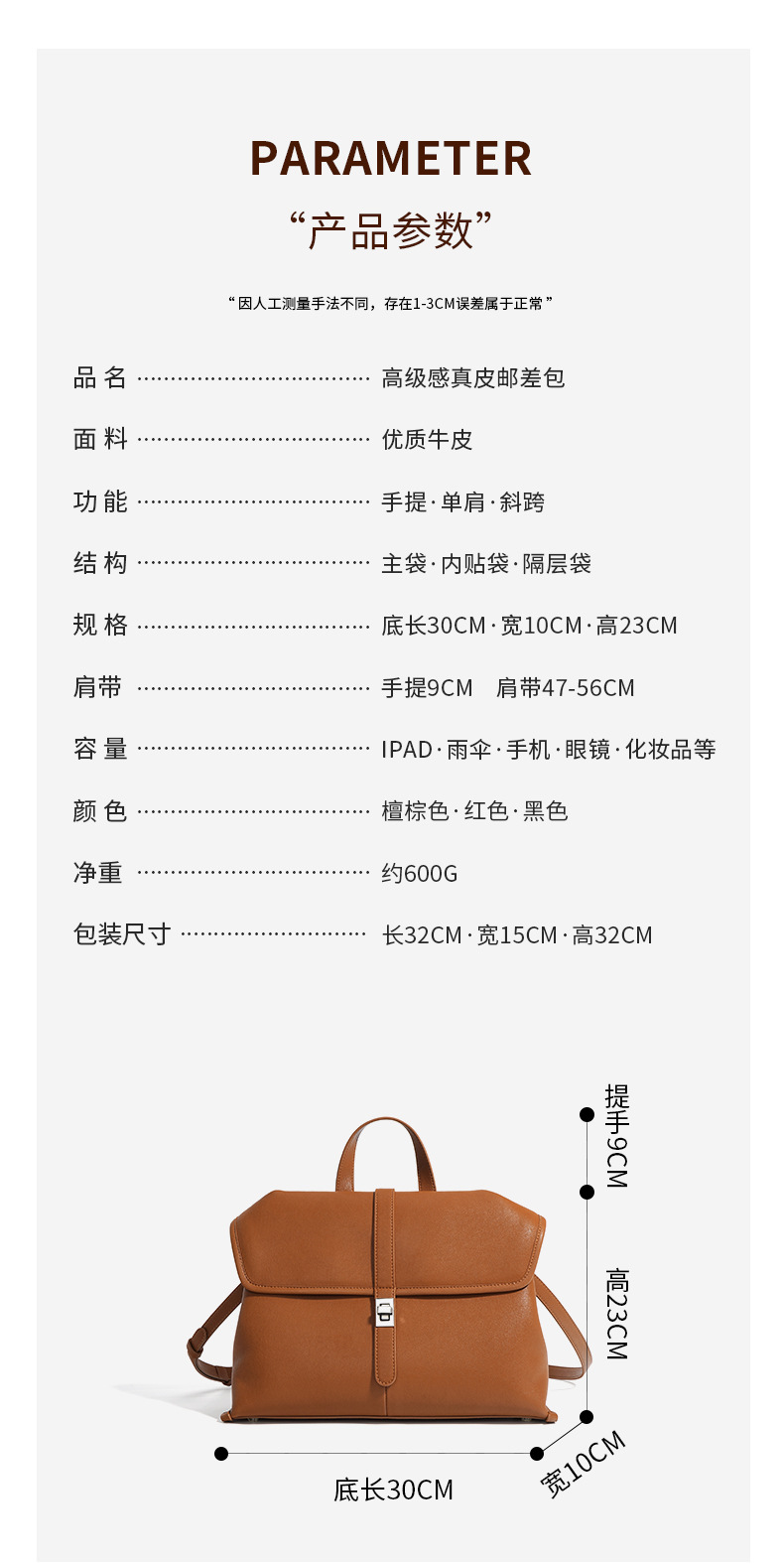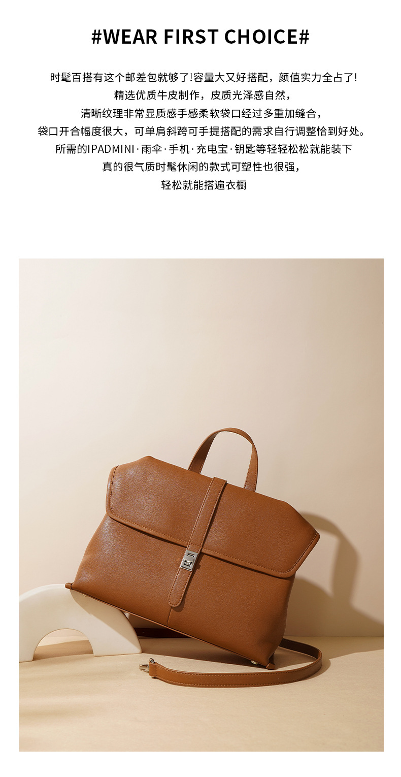 Chiếc túi này được làm từ chất liệu da bò mềm mại và bền bỉ. Kiểu dáng túi đưa thư cổ điển kết hợp cùng dây đeo dài, giúp bạn có thể đeo chéo người hoặc xách tay một cách thoải mái. Thiết kế gọn nhẹ, nhiều ngăn tiện lợi, rất phù hợp để sử dụng hằng ngày, khi đi làm hay dạo phố. Bạn có thể đựng vừa ví, điện thoại, các vật dụng cá nhân một cách gọn gàng. | Tên sản phẩm: Túi Xách Nữ Chất Liệu Da Bò - Túi Ví Nữ | Mã sản phẩm: A0586 - Giá: 1.490.000đ | Mã nhà sản xuất: GUDLE-G04Hình ảnh sản phẩm