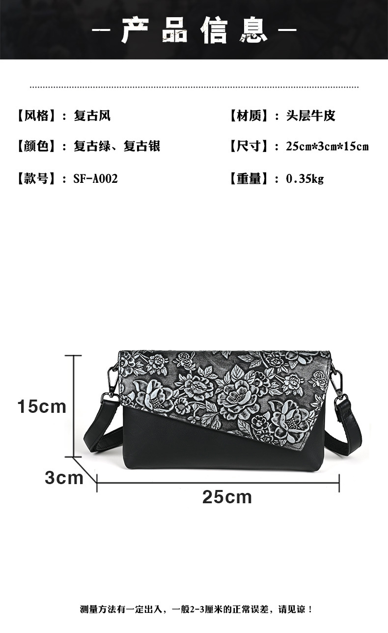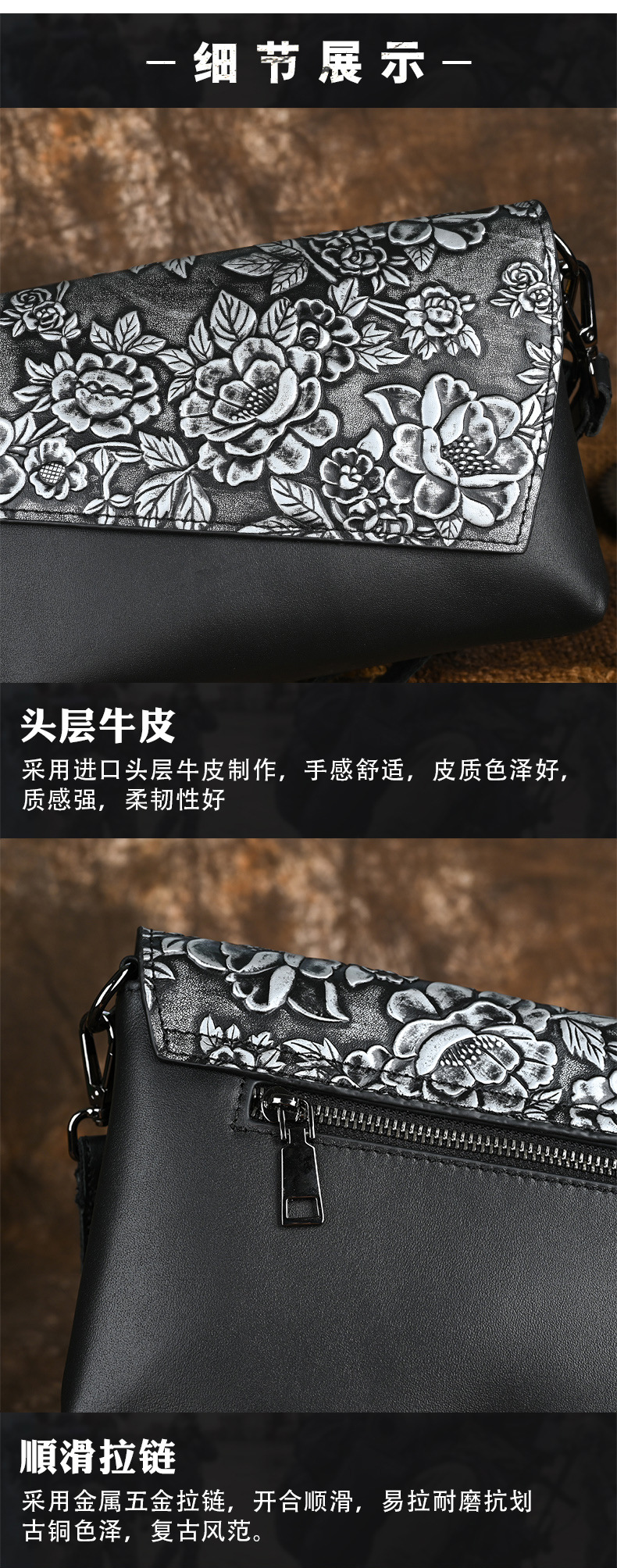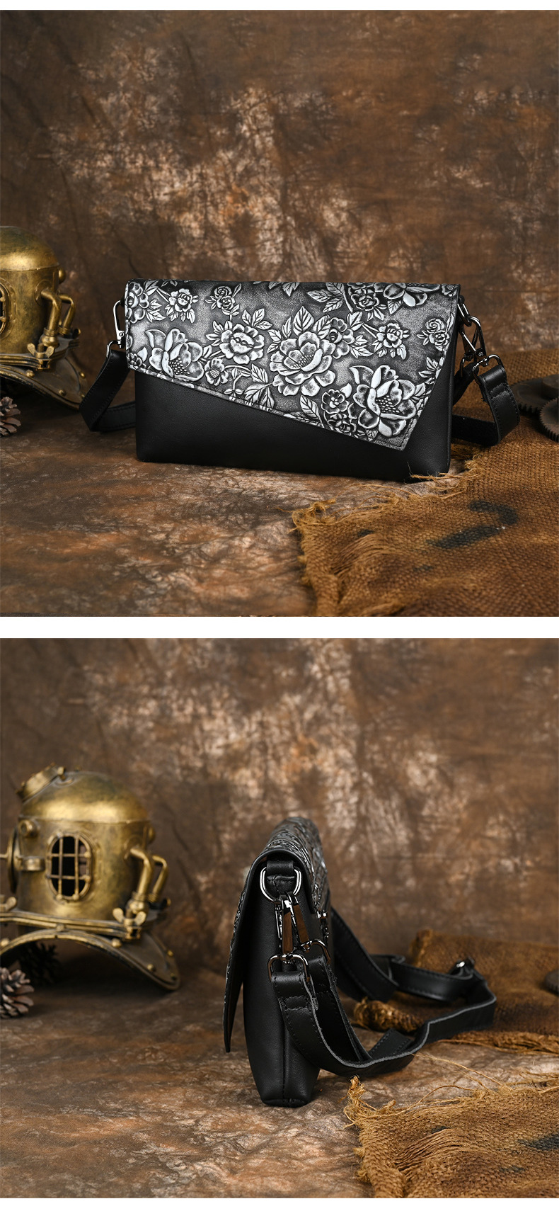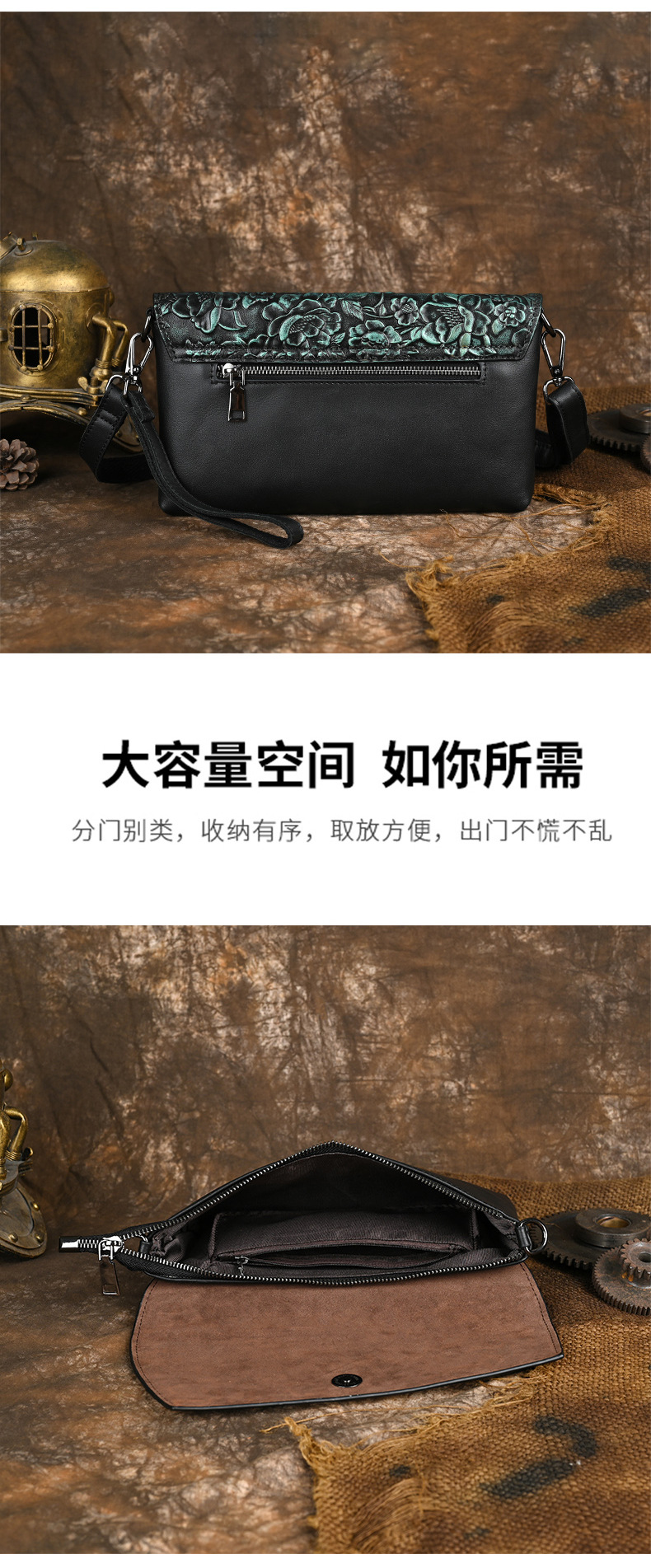 Túi xách kiểu dáng mới dành cho nữ, có thể đeo chéo hoặc xách tay. Thiết kế ôm gọn với họa tiết hoa nhẹ nhàng, mang phong cách hoài cổ. Túi được làm từ chất liệu da mềm, bền đẹp. Bên trong rộng rãi, đựng vừa nhiều vật dụng cá nhân như ví, điện thoại, phụ kiện. Rất tiện lợi cho các bà mẹ khi ra ngoài. Dùng dây đeo để khoác chéo v hoặc tháo ra để cầm tay tùy thích. | Tên sản phẩm: Ví Bóp Cầm Tay Nữ Chất Liệu Da Bò Họa Tiết Hoa Trung Niên Phục Cổ Cổ Điển - Túi Ví Nữ | Mã sản phẩm: A0613 - Giá: 830.000đ | Mã nhà sản xuất: GUDGE-G03Hình ảnh sản phẩm