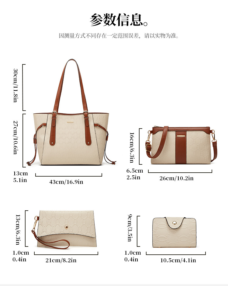 Bộ sưu tập túi xách mới cho mùa thu đông này, gồm bốn món với kiểu dáng thời trang và hiện đại. Túi chính là dạng túi to có qu đeo chéo và qu đeo v, sức chứa rộng rãi. Đi kèm là những chiếc túi nhỏ hơn bên trong, giúp bạn sắp xếp đồ đạc gọn gàng và dễ dàng tìm thấy. Cách sử dụng đơn giản, bạn chỉ cần đeo túi chính và sắp xếp các món đồ cá nhân vào các ngăn túi nhỏ bên trong cho tiện lợi khi di chuyển. | Tên sản phẩm: Túi Xách Nữ Bộ 4 Món Hàng Mùa Xuân Thu Đông - Túi Ví Nữ | Mã sản phẩm: A0682 - Giá: 610.000đ | Mã nhà sản xuất: SHRYIN-G02Hình ảnh sản phẩm