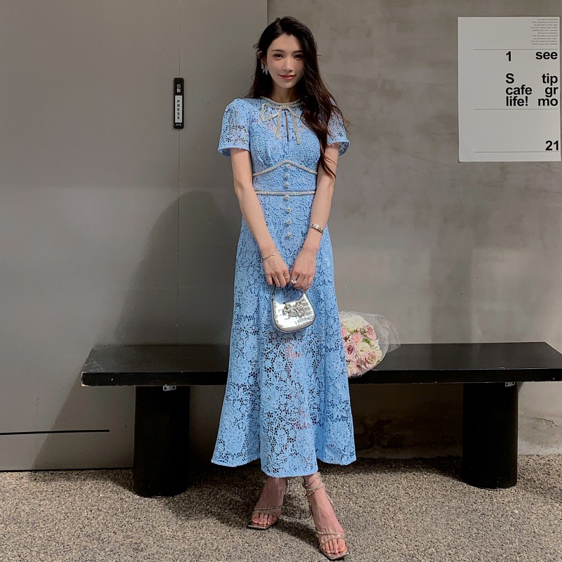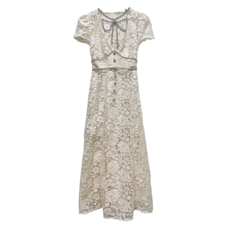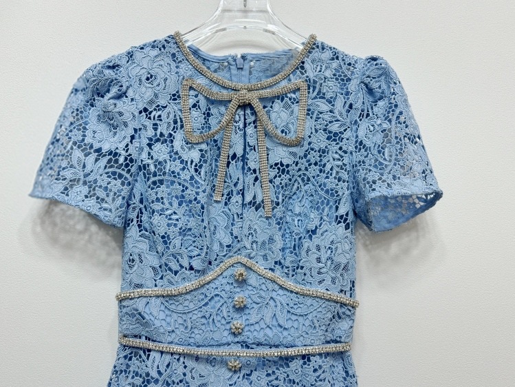 Chiếc váy ngắn tay cổ tròn này mang phong cách cổ điển với họa tiết ren được làm thủ công tinh xảo. Điểm nhấn là hình con bướm được đính hạt cẩn tỉ mỉ, tạo nên vẻ đẹp mềm mại. Sản phẩm có hai màu trắng ngà và xanh dương mới, chất vải mềm mặc thoải mái. Phù hợp cho các dịp đi chơi, dạo phố. Giặt nhẹ nhàng bằng tay để bảo quản chất liệu và đường nét. | Tên sản phẩm: Váy Đầm Liền Thân Nữ Chất Liệu Ren Ngắn Tay Phục Cổ Cổ Điển - Thời Trang Nữ | Mã sản phẩm: A0683 - Giá: 2.780.000đ | Mã nhà sản xuất: HADN-G06Hình ảnh sản phẩm