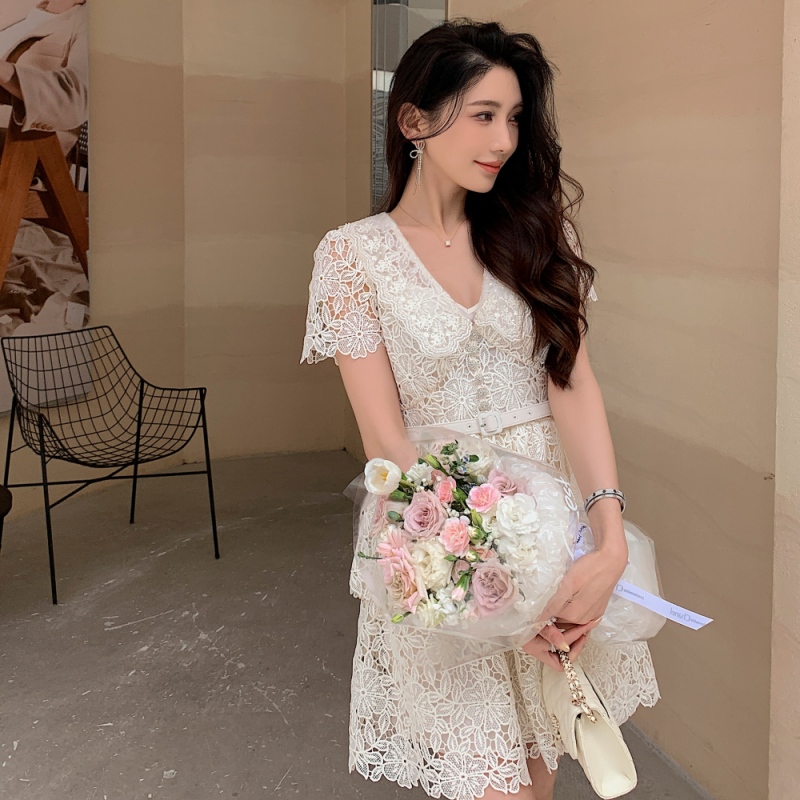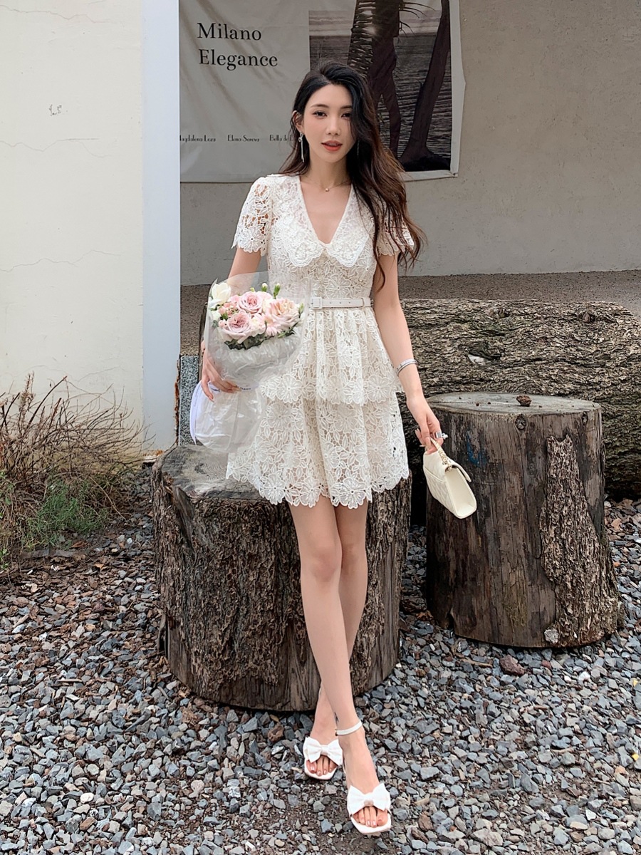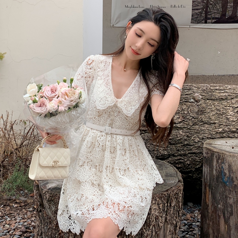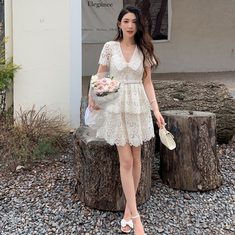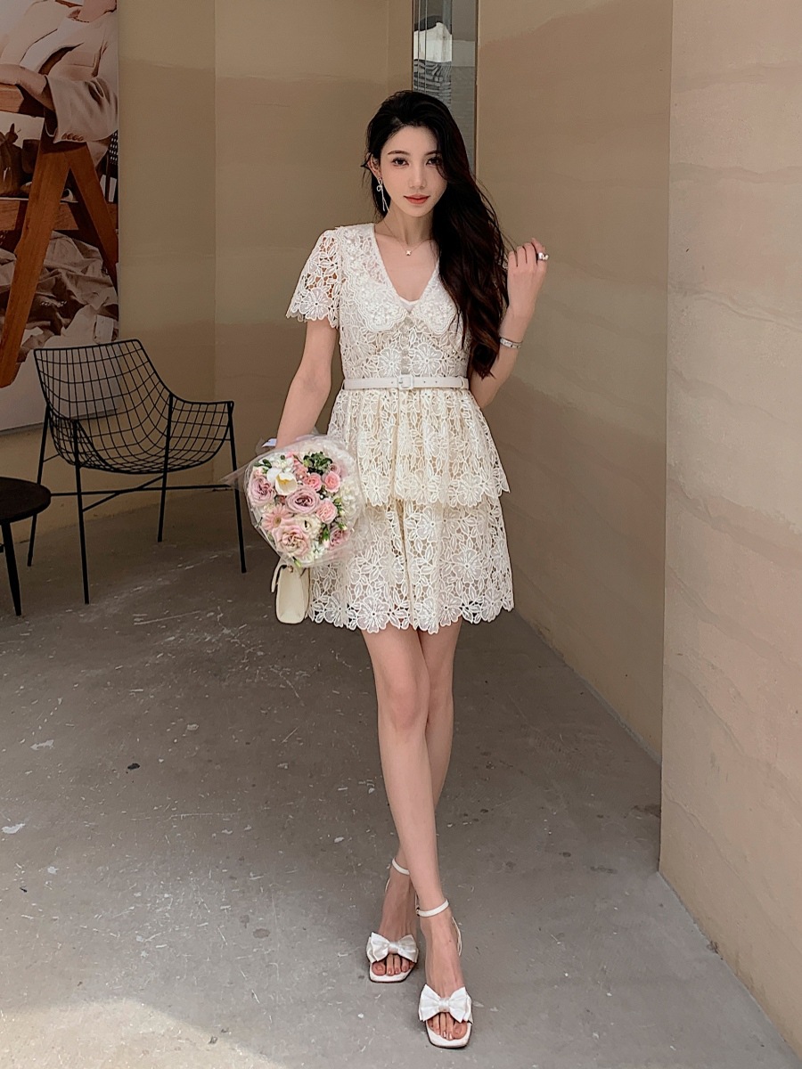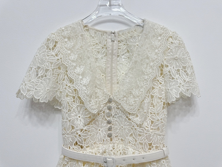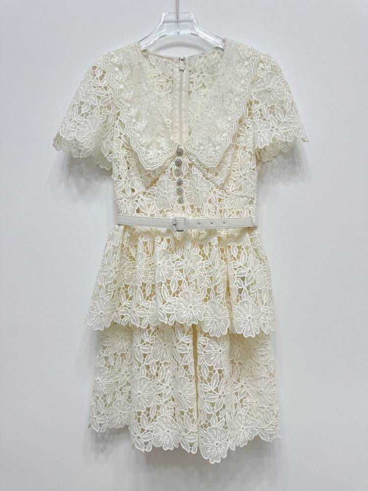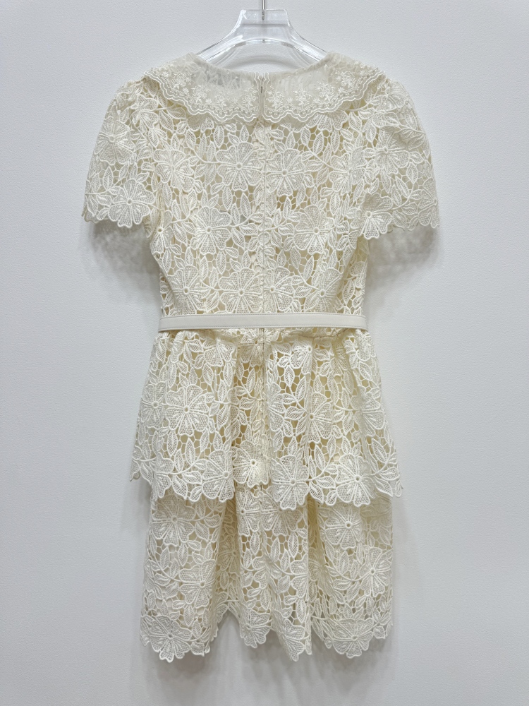 Bộ trang phục hai mảnh này gồm áo cổ bẻ tay ngắn và chân váy xếp tầng. Chất vải điểm xuyến họa tiết ren tinh tế, toát lên vẻ thanh lịch, nhẹ nhàng. Tông màu trắng ngà nhẹ nhàng phù hợp cho những ngày xuân hè. Đi kèm là chiếc thắt lưng giúp bạn dễ dàng phối đồ, tôn lên đường nét cơ thể. Mẫu thiết kế này dễ mặc, phù hợp cho nhiều dịp giao lưu hàng ngày. | Tên sản phẩm: Váy Đầm Liền Thân Nữ Chất Liệu Ren Ngắn Tay Kín Cổ Hàng Mùa Hè - Thời Trang Nữ | Mã sản phẩm: A0688 - Giá: 2.310.000đ | Mã nhà sản xuất: HADN-G05Hình ảnh sản phẩm