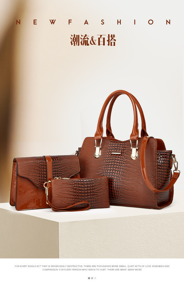 Bộ túi xách ba món này gồm một túi lớn, một túi nhỏ và một ví cầm tay, rất tiện lợi để phối đồ và phân loại đồ dùng cá nhân. Thiết kế theo xu hướng mới, phù hợp cho nhiều dịp sử dụng. Bạn có thể dùng riêng lẻ từng món hoặc kết hợp chúng một cách linh hoạt để tạo nên phong cách riêng. Sản phẩm đáp ứng tốt nhu cầu hàng ngày, giúp bạn mang theo mọi vật dụng cần thiết một cách gọn gàng và có tổ chức. | Tên sản phẩm: Đồ Bộ Nữ Cả Bộ 3 Món Hàng Mùa Xuân Thu Đông - Thời Trang Nữ | Mã sản phẩm: A0692 - Giá: 610.000đ | Mã nhà sản xuất: SHRYIN-G02Hình ảnh sản phẩm