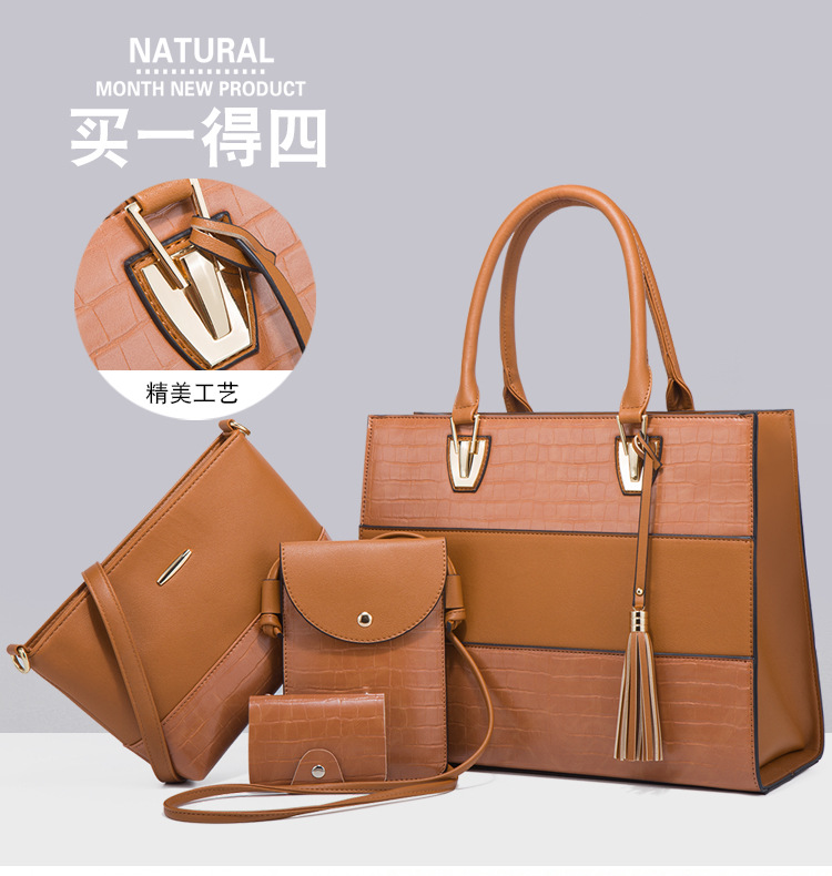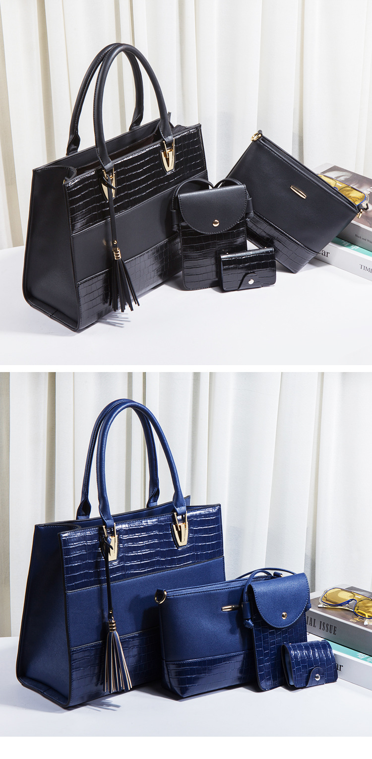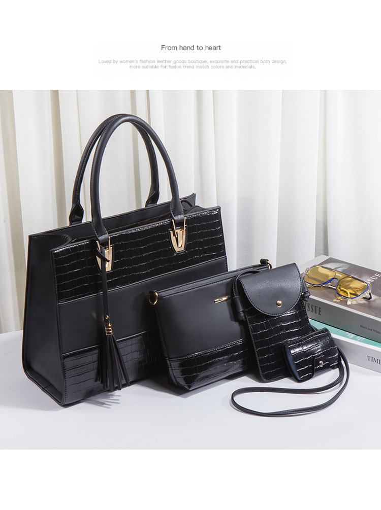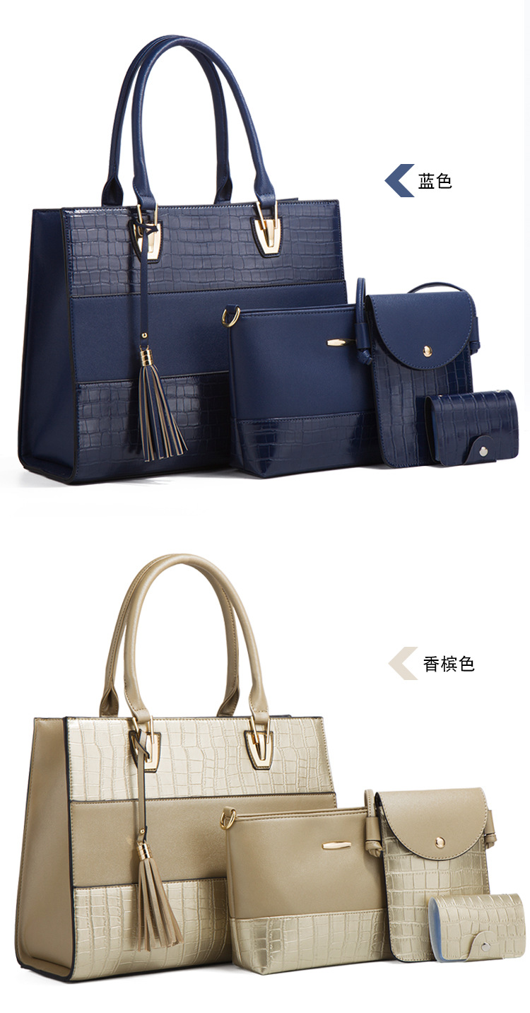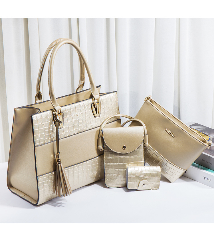 Bộ sưu tập túi xách mới dành cho nữ, mang phong cách hoài cổ với họa tiết da cá sấu ấn tượng. Bộ sản phẩm gồm bốn chiếc với kích thước lớn nhỏ khác nhau, có thể dùng linh hoạt làm túi đeo chéo, túi đeo v hoặc túi xách tay tùy thích. Chất liệu bền đẹp, thiết kế nhiều ngăn giúp sắp xếp đồ dùng gọn gàng. Có thể dùng riêng lẻ từng túi hoặc kết hợp cả bộ tùy theo nhu cầu sử dụng hằng ngày hoặc khi đi chơi. | Tên sản phẩm: Túi Xách Nữ Vân Da Cá Sấu Bộ 4 Món Phục Cổ Cổ Điển - Túi Ví Nữ | Mã sản phẩm: A0693 - Giá: 670.000đ | Mã nhà sản xuất: SHRYIN-G02Hình ảnh sản phẩm