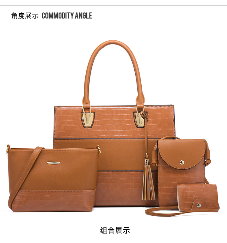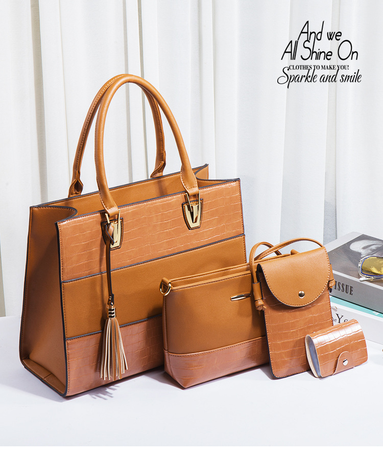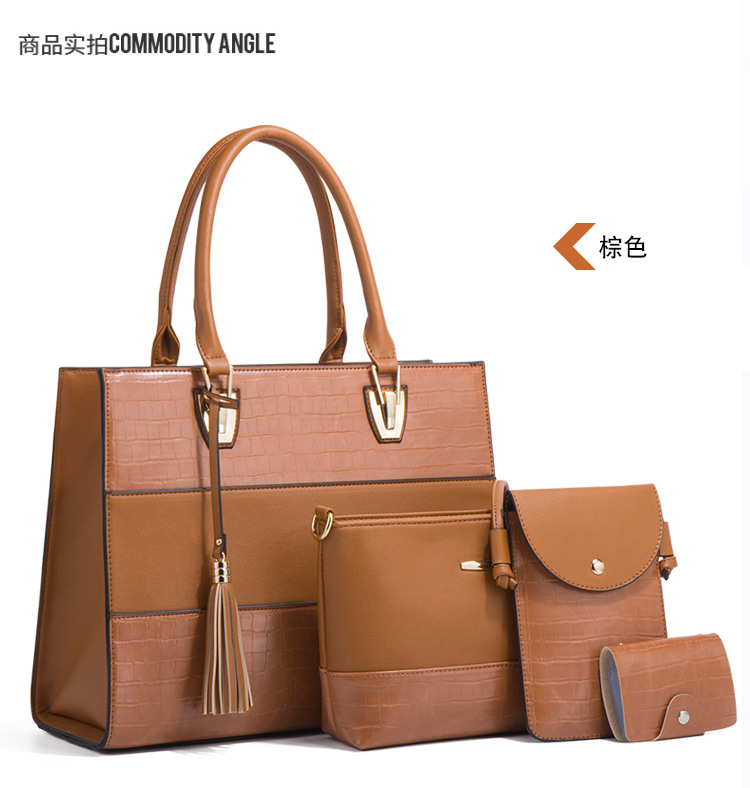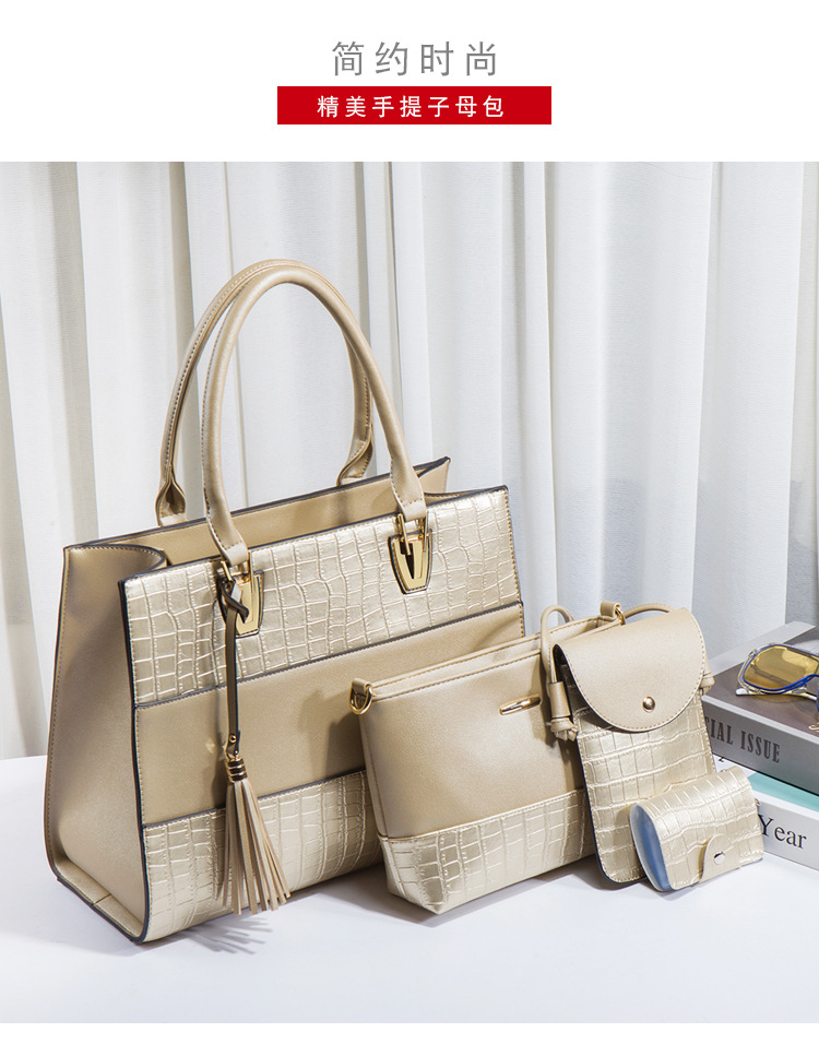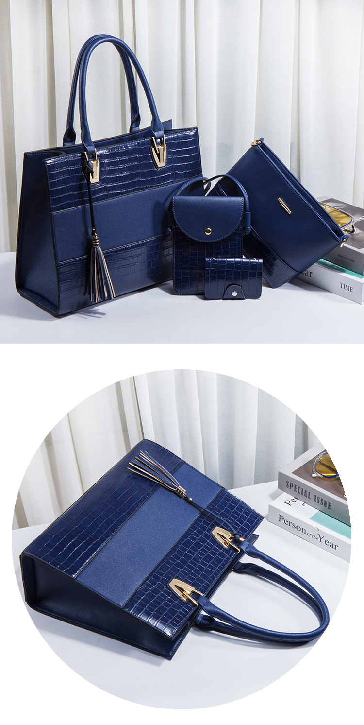 Bộ sưu tập túi xách mới dành cho nữ, mang phong cách hoài cổ với họa tiết da cá sấu ấn tượng. Bộ sản phẩm gồm bốn chiếc với kích thước lớn nhỏ khác nhau, có thể dùng linh hoạt làm túi đeo chéo, túi đeo v hoặc túi xách tay tùy thích. Chất liệu bền đẹp, thiết kế nhiều ngăn giúp sắp xếp đồ dùng gọn gàng. Có thể dùng riêng lẻ từng túi hoặc kết hợp cả bộ tùy theo nhu cầu sử dụng hằng ngày hoặc khi đi chơi. | Tên sản phẩm: Túi Xách Nữ Vân Da Cá Sấu Bộ 4 Món Phục Cổ Cổ Điển - Túi Ví Nữ | Mã sản phẩm: A0693 - Giá: 670.000đ | Mã nhà sản xuất: SHRYIN-G02Hình ảnh sản phẩm