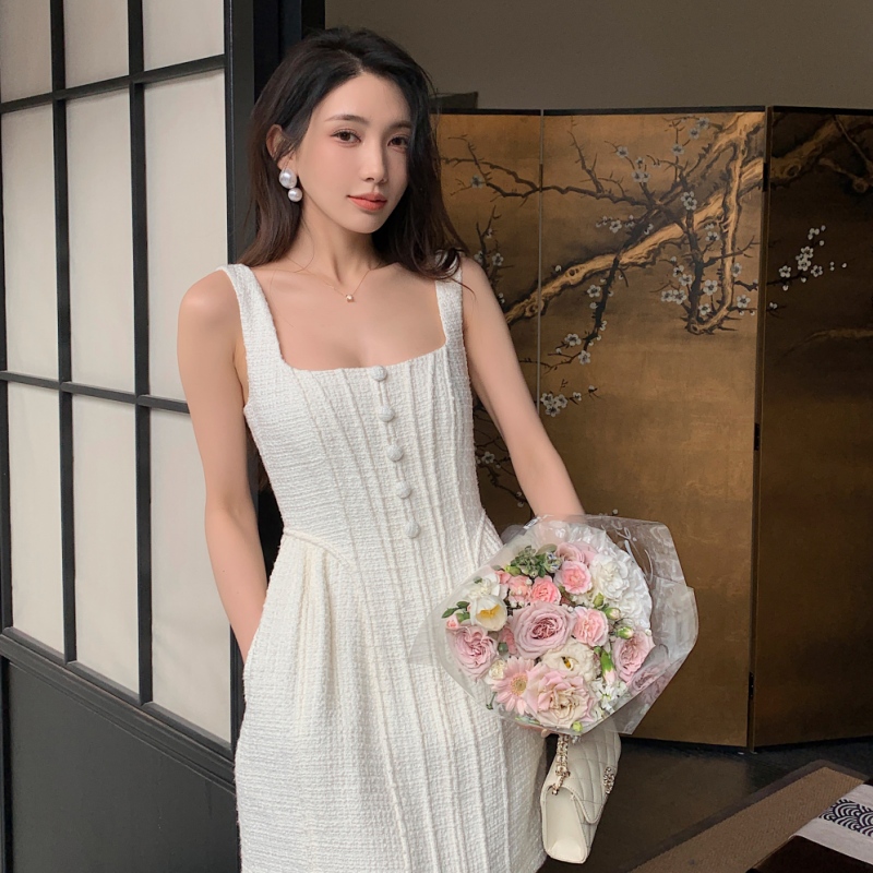 Chiếc áo váy không tay này có màu trắng ngà nhẹ nhàng, phù hợp cho mùa xuân hè. Chất vải dệt thô mang đến cảm giác sờ mềm mại và có đường nét rõ rệt. Thiết kế ôm eo giúp tôn lên dáng người một cách tự nhiên. Bạn có thể mặc nó một mình hoặc kết hợp cùng áo khoác mỏng để tạo nên những bộ trang phục đẹp mắt cho nhiều dịp khác nhau. | Tên sản phẩm: Váy Đầm Liền Thân Nữ Họa Tiết Hoa Hàng Mùa Hè - Thời Trang Nữ | Mã sản phẩm: A0697 - Giá: 1.640.000đ | Mã nhà sản xuất: HADN-G05Hình ảnh sản phẩm