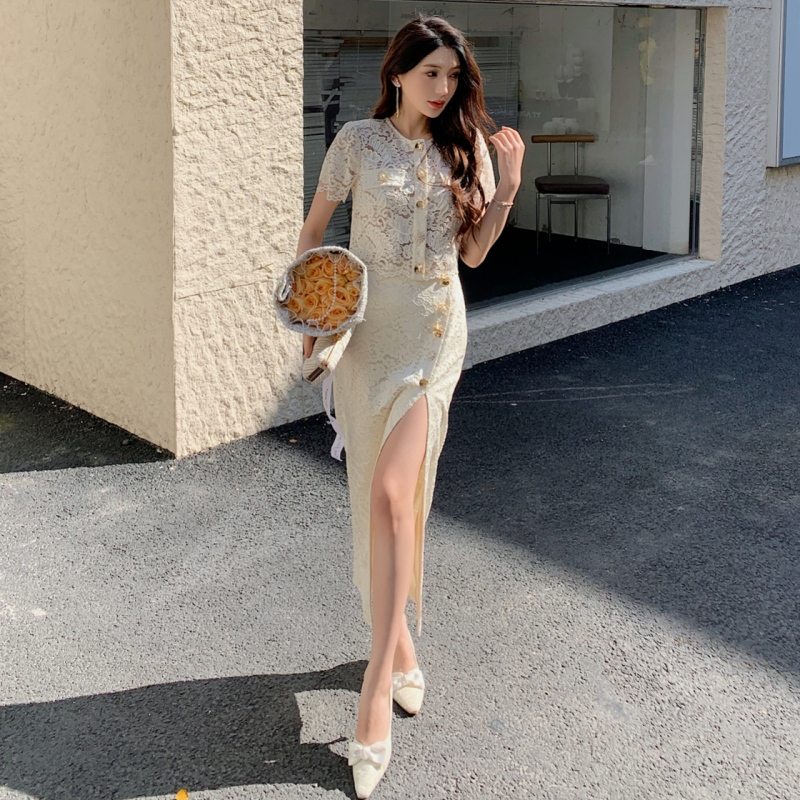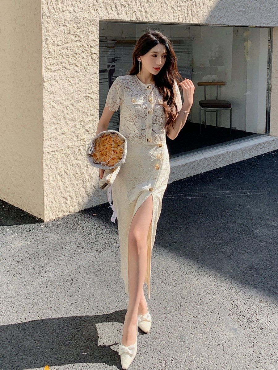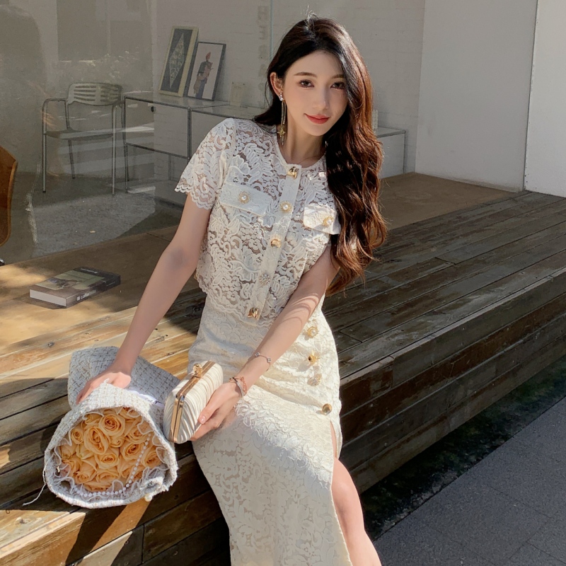 Bộ trang phục hai mảnh này mang đến vẻ đẹp dịu dàng và nữ tính. Áo khoác dáng dài được điểm xuyết họa tiết ren xuyên thấu tinh tế, mặc cùng chân váy dài có thiết kế xẻ nhẹ hai bên. Điểm nhấn là phần eo được nâng cao, giúp tôn lên đường nét cơ thể một cách duyên dáng. Bộ trang phục thích hợp cho những buổi dạo phố hay những chuyến đi chơi. Có thể mặc nguyên bộ hoặc phối cùng các trang phục khác để tạo nên những phong cách đa dạng. | Tên sản phẩm: Đồ Bộ Nữ Chất Liệu Ren Dáng Dộng Cả Bộ 2 Món - Thời Trang Nữ | Mã sản phẩm: A0705 - Giá: 1.440.000đ | Mã nhà sản xuất: HADN-G04Hình ảnh sản phẩm