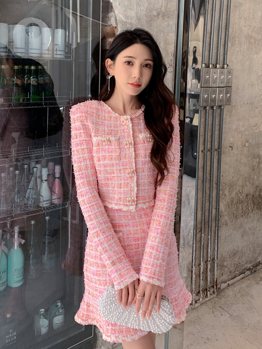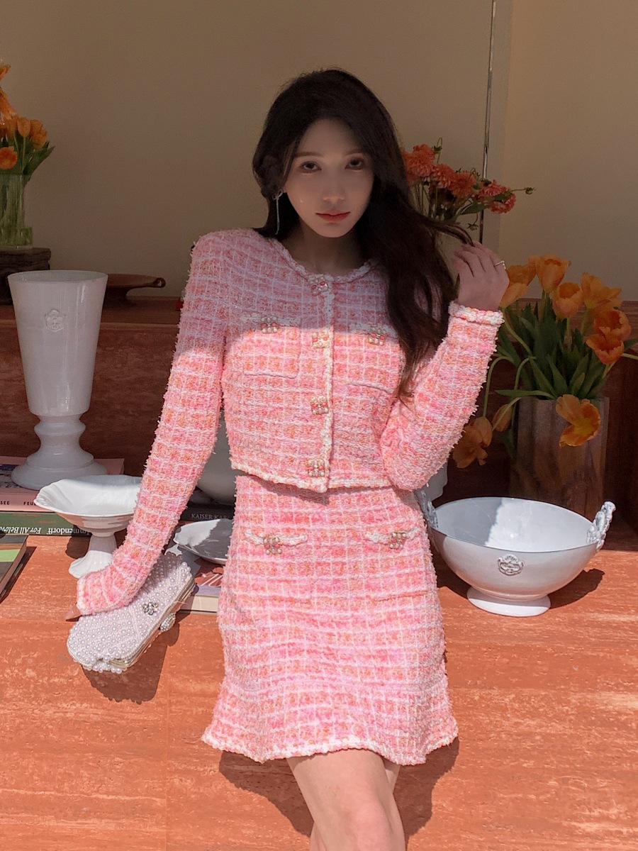 Bộ trang phục hai món này mang phong cách dịu dàng, nữ tính. Chiếc áo kiểu dáng ôn hòa kết hợp cùng chân váy ngắn ôm sát, xòe nhẹ phần gấu tạo dáng đuôi cá. Họa tiết caro hồng phấn điểm xuyết trên nền vải dệt kim mềm mại, tôn lên vẻ duyên dáng cho người mặc. Có thể phối cùng giày thể thao cho nét tươi trẻ, hoặc kết hợp với giày gót nhẹ để tạo điểm nhấn thanh lịch. | Tên sản phẩm: Đồ Bộ Nữ Áo Len Cả Bộ 2 Món Kiểu Đuôi Cá - Thời Trang Nữ | Mã sản phẩm: A0706 - Giá: 1.440.000đ | Mã nhà sản xuất: HADN-G04Hình ảnh sản phẩm