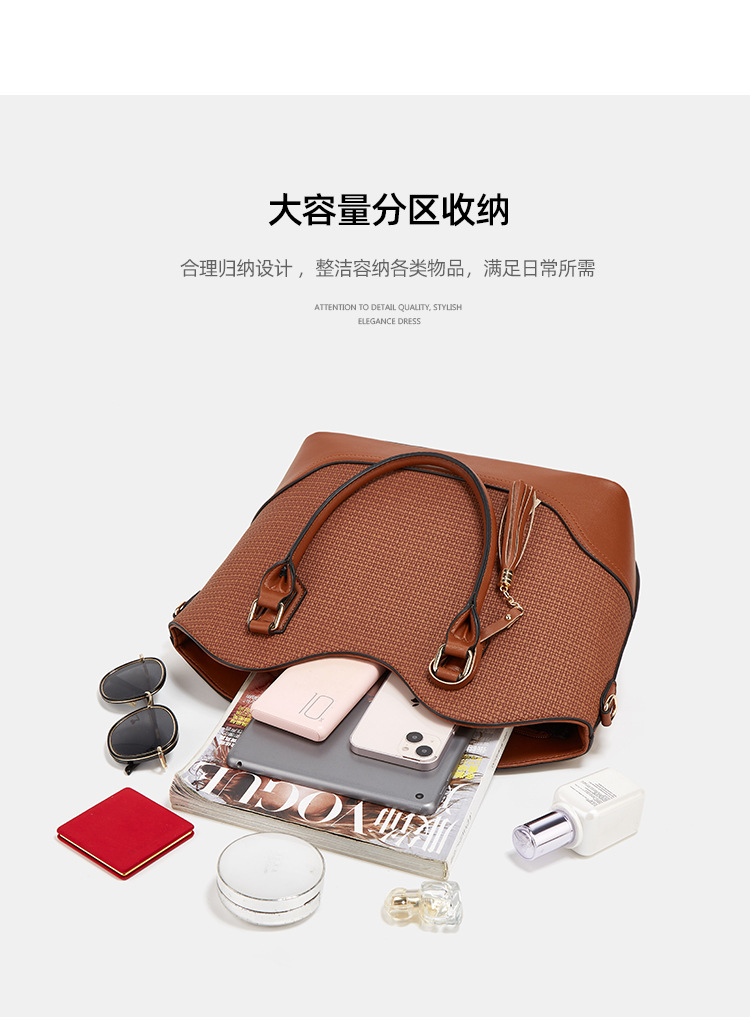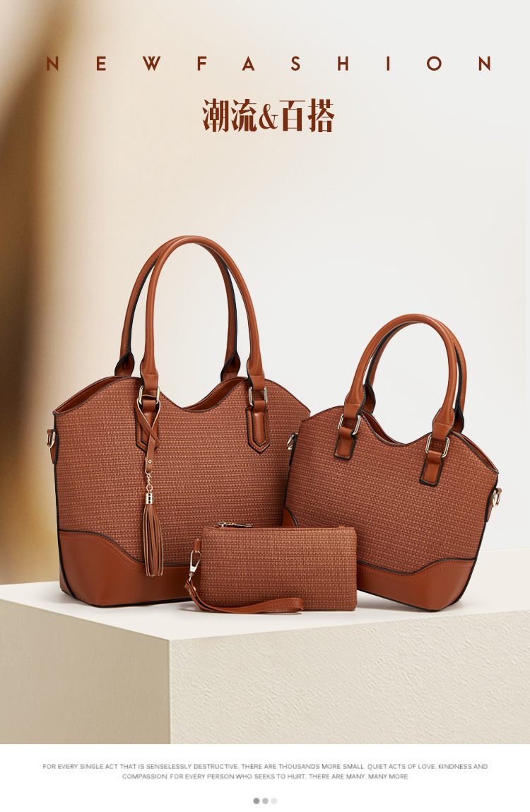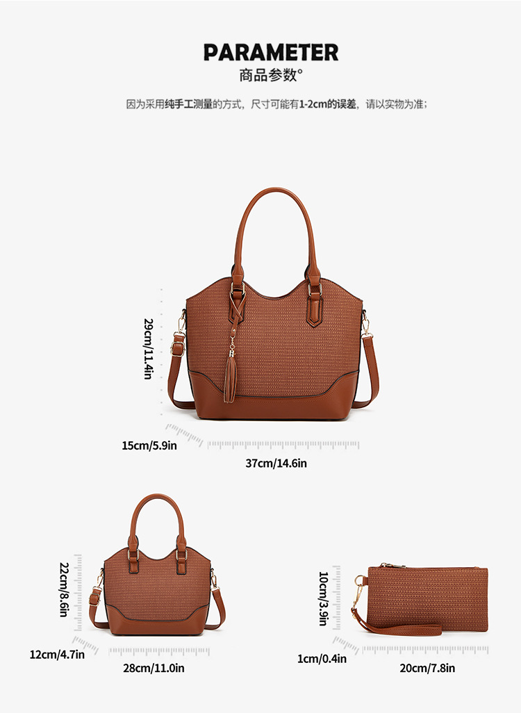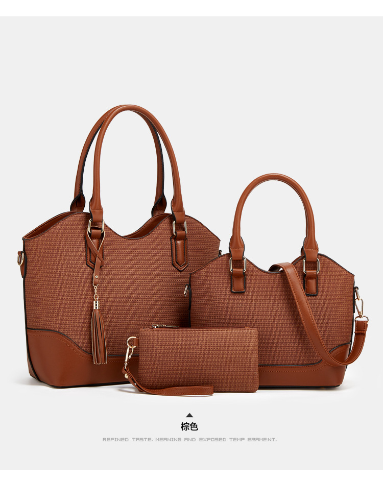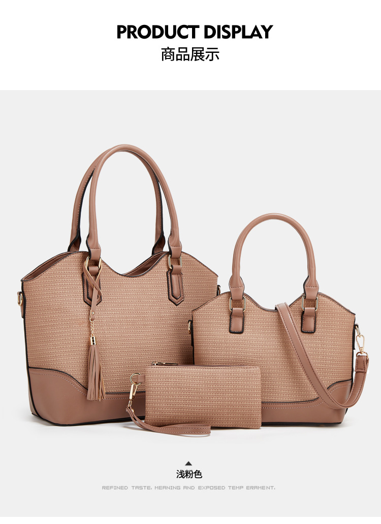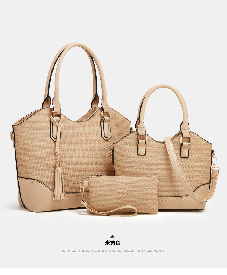 Bộ ba túi xách mới nhất gồm một túi lớn, một túi vừa và một túi nhỏ có kiểu dáng tương đồng, tạo thành một bộ sưu tập hài hòa. Thiết kế theo xu hướng thời trang hiện nay, phù hợp cho nhiều dịp sử dụng khác nhau. Bạn có thể dùng riêng lẻ từng chiếc túi hoặc kết hợp chúng một cách linh hoạt để đựng các vật dụng cá nhân cần thiết. Bộ sản phẩm đáp ứng tốt nhu cầu sắp xếp đồ đạc một cách gọn gàng và ngăn nắp. | Tên sản phẩm: Túi Xách Nữ Cả Bộ 3 Món - Túi Ví Nữ | Mã sản phẩm: A0743 - Giá: 610.000đ | Mã nhà sản xuất: SHRYIN-G02Hình ảnh sản phẩm