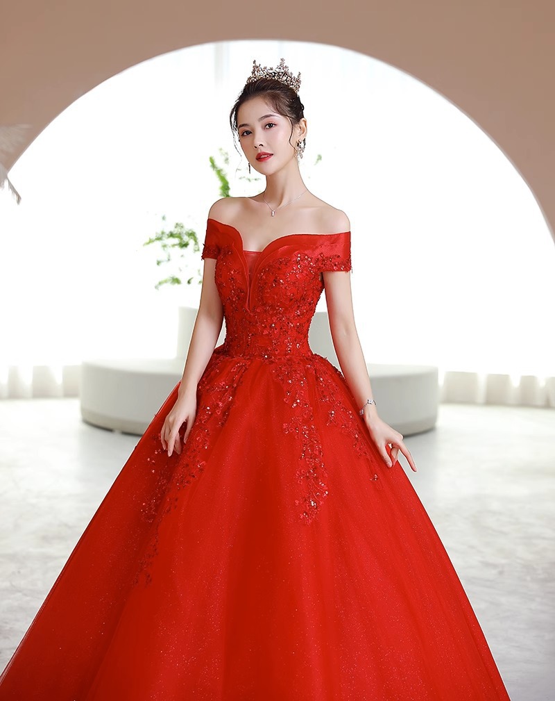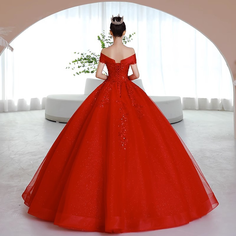 Váy dạ hội thiết kế dáng cổ khoét thẳng, phần thân trên ôm sát tôn dáng. Chân váy xòe rộng với nhiều lớp vải tạo độ phồng nhẹ nhàng, lãng mạn. Sản phẩm thích hợp cho các dịp quan trọng như tiệc cưới, dạ hội. Mặc cùng phụ kiện như giày cao gót và trang sức để tôn lên vẻ đẹp duyên dáng, thanh lịch. | Tên sản phẩm: Váy Đầm Liền Thân Nữ Dùng Trong Lễ Cưới - Thời Trang Nữ | Mã sản phẩm: A0779 - Giá: 1.850.000đ | Mã nhà sản xuất: SHTYFA-G05Hình ảnh sản phẩm