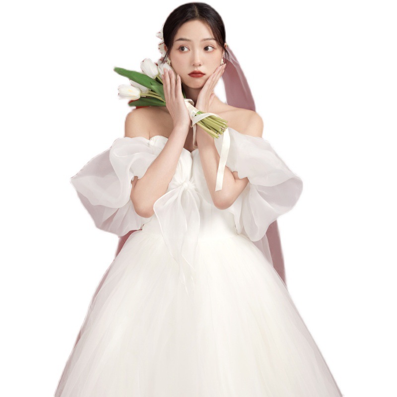 Váy cưới mới với phần cổ áo khoét ngang và tay phồng, tạo điểm nhấn bằng nơ xinh xắn. Thiết kế giúp tôn dáng, phần chân váy xòe nhẹ nhàng vừa vặn. Kiểu dáng công chúa này phù hợp để chụp ảnh khi đi du lịch hoặc mặc trong các nghi lễ. Có thể mặc trực tiếp, dễ dàng kết hợp với các phụ kiện khác để hoàn thiện vẻ ngoại hình. | Tên sản phẩm: Váy Đầm Liền Thân Nữ Thắt Nơ Bướm Tay Phồng Dùng Trong Lễ Cưới - Thời Trang Nữ | Mã sản phẩm: A0817 - Giá: 1.400.000đ | Mã nhà sản xuất: SHTYFA-G04Hình ảnh sản phẩm