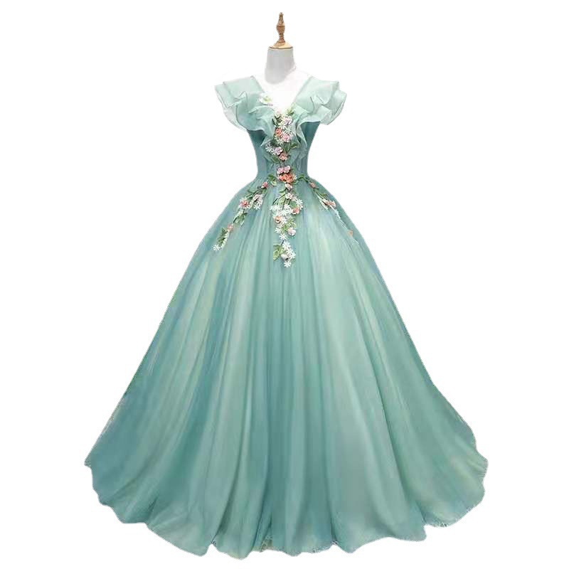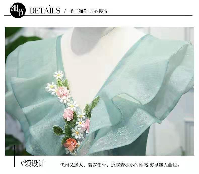 Váy dạ hội dài tay bồng với lớp vải mỏng màu xanh ngọc phủ bên ngoài, tạo vẻ đẹp nhẹ nhàng và thanh thoát. Thiết kế này phù hợp cho các bạn học sinh biểu diễn tiết mục đơn ca, tham gia sự kiện văn nghệ hoặc đóng v người dẫn chương trình. Khi mặc, bạn chỉ cần kéo khóa phía sau và chỉnh sửa phần váy cho thật cân đối. Kiểu dáng trang nhã giúp người mặc tự tin tỏa sáng trên sân khấu. | Tên sản phẩm: Váy Đầm Liền Thân Nữ - Thời Trang Nữ | Mã sản phẩm: A0835 - Giá: 1.640.000đ | Mã nhà sản xuất: SHTYFA-G05Hình ảnh sản phẩm