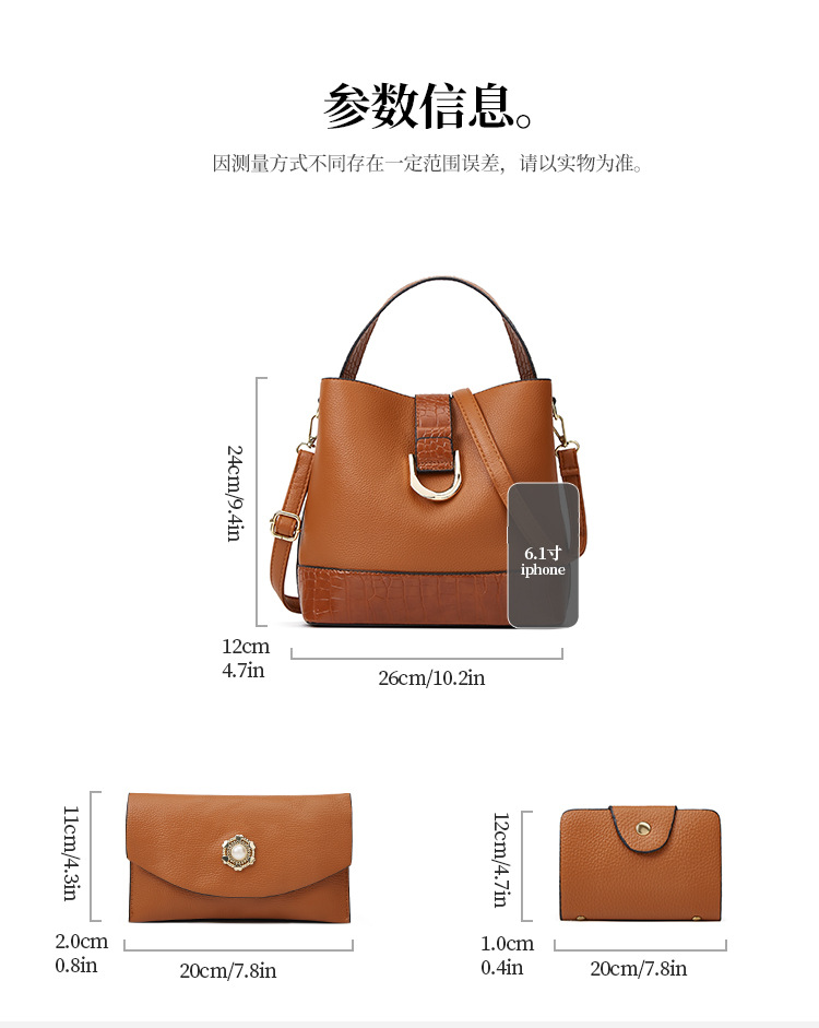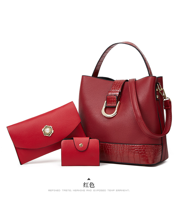 Bộ ba túi xách thiết kế theo phong cách trẻ trung, gồm một túi lớn và hai túi nhỏ đi kèm, tạo thành bộ sản phẩm tiện lợi. Túi có sức chứa rộng rãi, kiểu dáng đơn giản và dễ phối đồ. Bạn có thể đeo túi bằng tay, khoác v hoặc mang chéo người tùy theo sở thích và nhu cầu sử dụng hằng ngày. Đây là mẫu túi dành cho nữ, phù hợp cho nhiều hoàn cảnh khác nhau. | Tên sản phẩm: Túi Xách Nữ Cả Bộ 3 Món Phong Cách Hàn Quốc - Túi Ví Nữ | Mã sản phẩm: A0842 - Giá: 570.000đ | Mã nhà sản xuất: SHRYIN-G01Hình ảnh sản phẩm