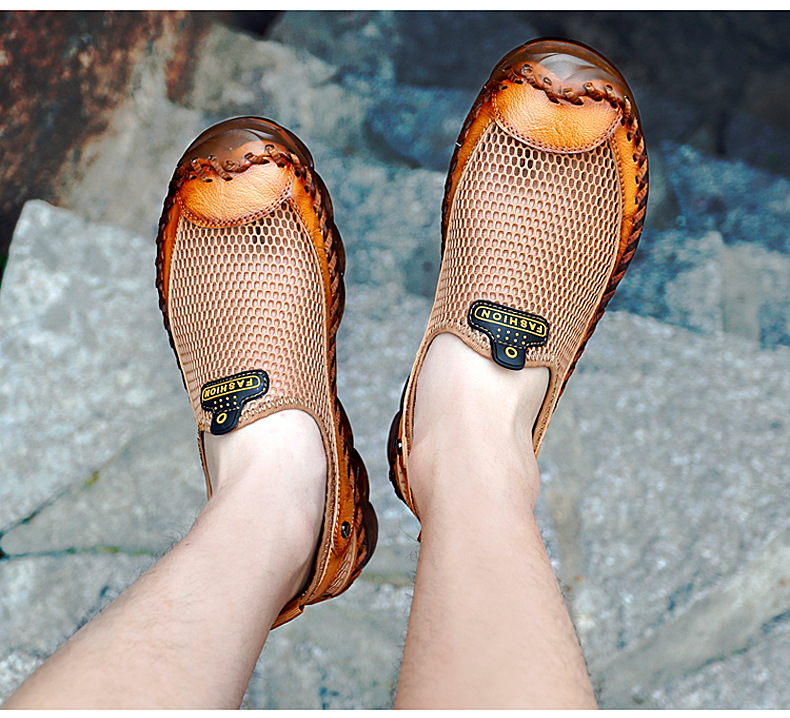 Giày dành cho nam, thiết kế cỡ lớn phù hợp với nhiều dáng chân. Sản phẩm được làm từ chất liệu da bò bền đẹp kết hợp phần mặt trên có lỗ thông hơi, giúp đôi chân luôn khô ráo và mát mẻ. Đế giày làm từ chất liệu mềm dẻo, tạo cảm giác êm ái và nhẹ tênh khi di chuyển. Kiểu dáng kín mũi, phù hợp cho các hoạt động hằng ngày. Chỉ cần xỏ chân vào, điều chỉnh qu cho vừa vặn là có thể sử dụng ngay. | Tên sản phẩm: Giày Dép Sandal Nam Chất Liệu Da Bò Big Size Ngoại Cỡ - Giày Dép Nam | Mã sản phẩm: A0903 - Giá: 720.000đ | Mã nhà sản xuất: TUNEZH-G02Hình ảnh sản phẩm