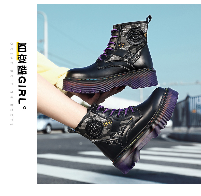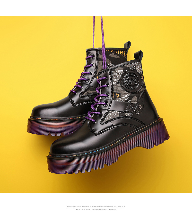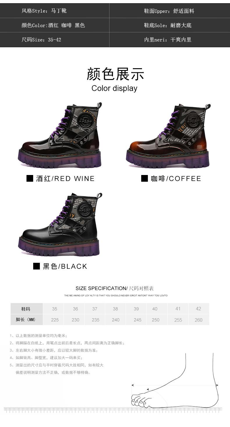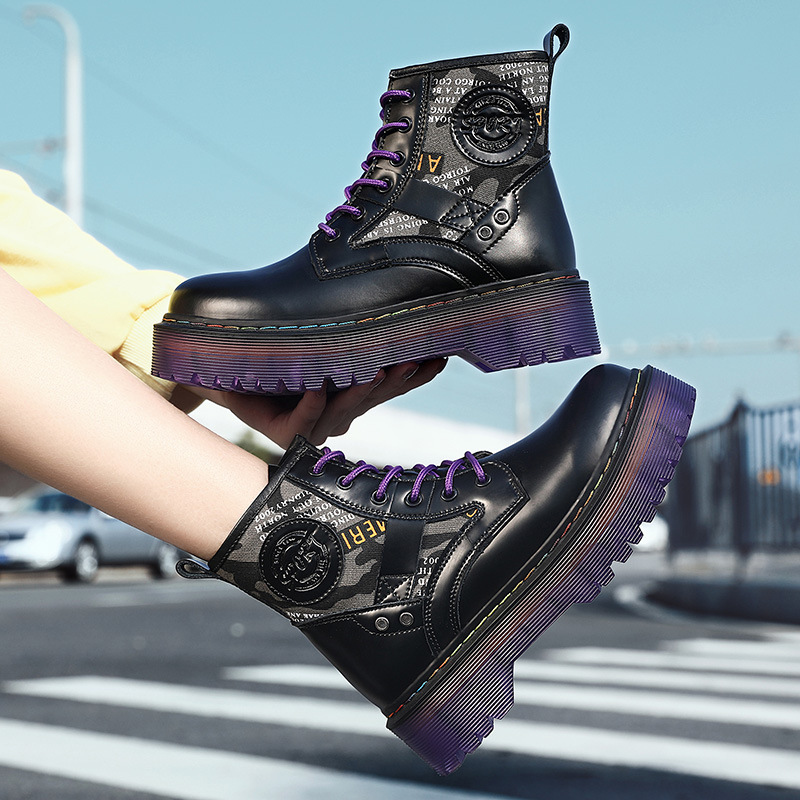 Đôi bốt cổ cao này có phần đế dày tạo dáng thời thượng và nâng chiều cao nhẹ nhàng. Kiểu dáng mang phong cách phương Tây, kết hợp nét cá tính mạnh mẽ với vẻ ngoài năng động. Sản phẩm được làm từ chất liệu da thật, mang lại độ bền và cảm giác thoải mái khi mang. Bốt có cổ cao ôm vừa vặn, phù hợp cho các hoạt động thường ngày. Bạn có thể dễ dàng phối cùng quần jeans hay trang phục để tạo điểm nhấn ấn tượng. | Tên sản phẩm: Giày Boot Martin Nữ Chất Liệu Da Bò Big Size Ngoại Cỡ Đế Cao Hàng Mùa Xuân Thu Đông Phong Cách Âu Mỹ - Giày Dép Nữ | Mã sản phẩm: A0905 - Giá: 1.000.000đ | Mã nhà sản xuất: TUNEZH-G03Hình ảnh sản phẩm