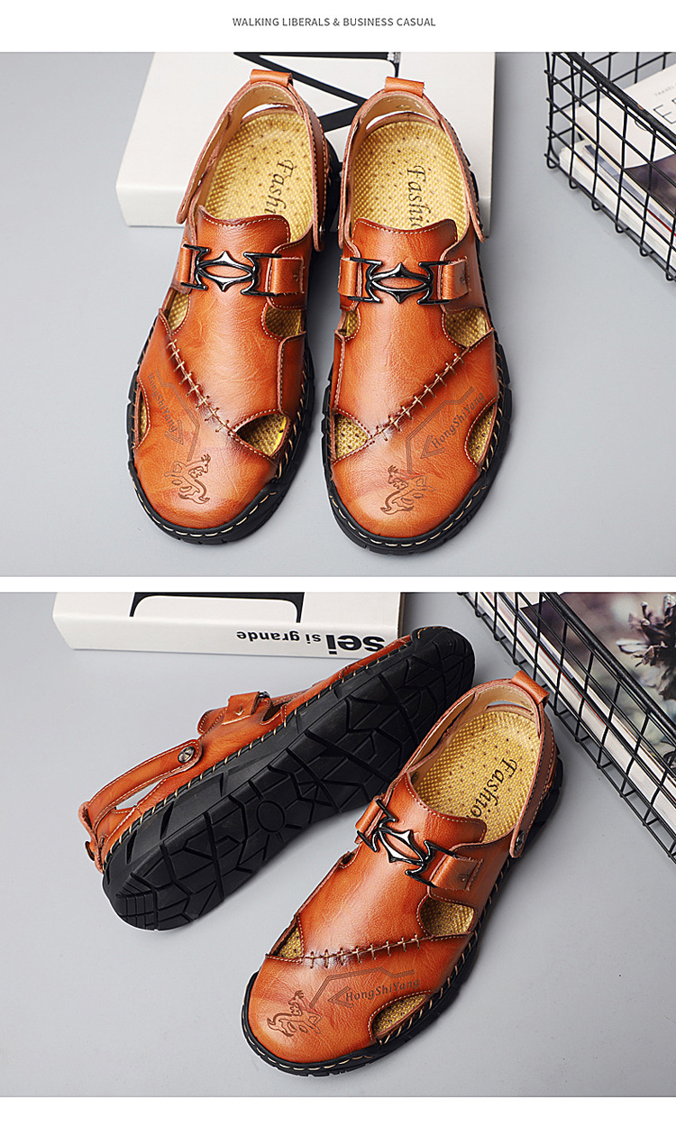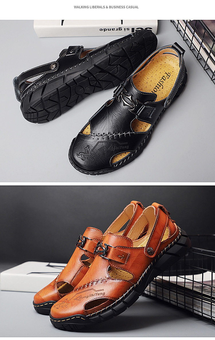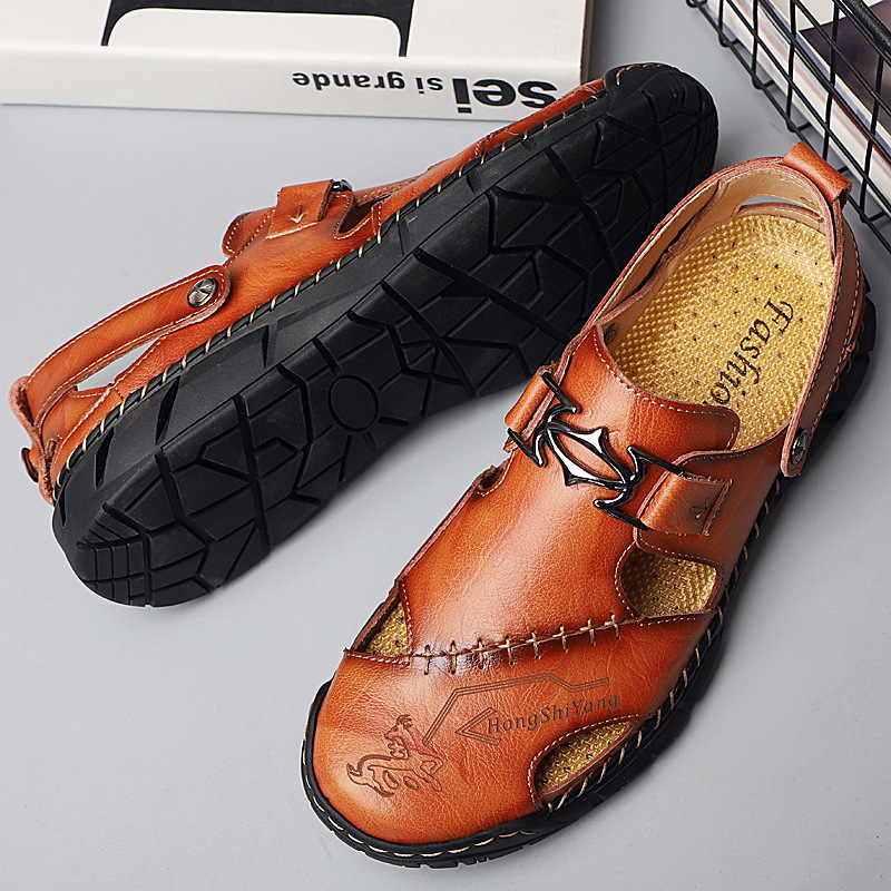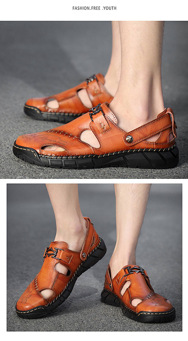 Dành cho nam giới, đôi dép này có kiểu dáng rộng rãi thoải mái. Dép được làm từ chất liệu da thật, phần mũi bịt kín và thiết kế đục lỗ tinh tế giúp đôi chân luôn thông thoáng. Đây là mẫu dép qu hậu dễ mang, phù hợp cho những lúc thư giãn, dạo bờ biển hay đi chơi hàng ngày. Chỉ cần xỏ chân vào và bạn đã sẵn sàng để tận hưởng cảm giác mát mẻ, dễ chịu. | Tên sản phẩm: Giày Dép Sandal Nam Chất Liệu Da Bò Big Size Ngoại Cỡ Thoáng Khí - Giày Dép Nam | Mã sản phẩm: A0906 - Giá: 670.000đ | Mã nhà sản xuất: TUNEZH-G02Hình ảnh sản phẩm