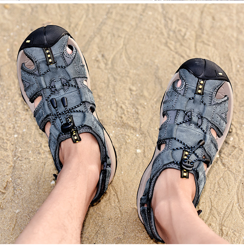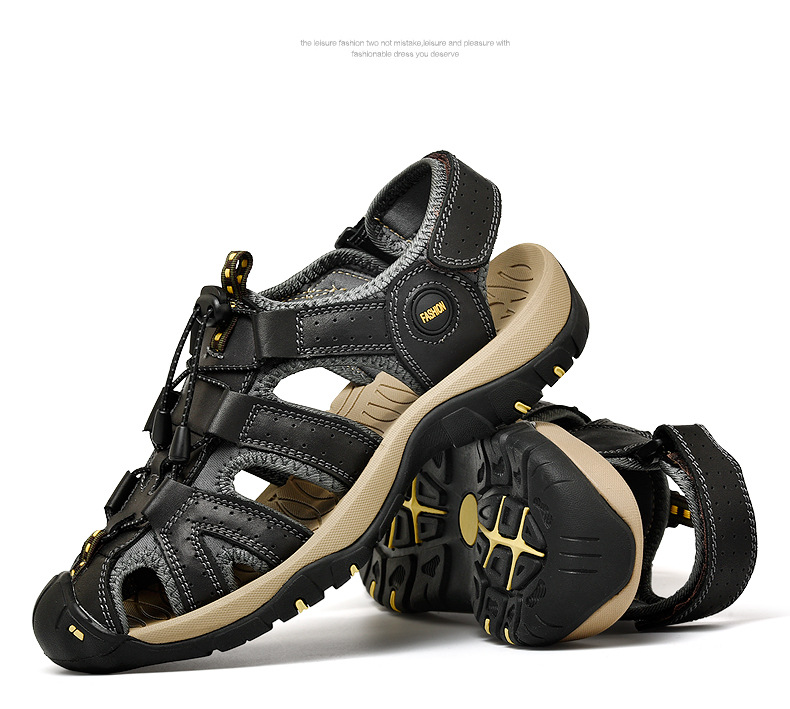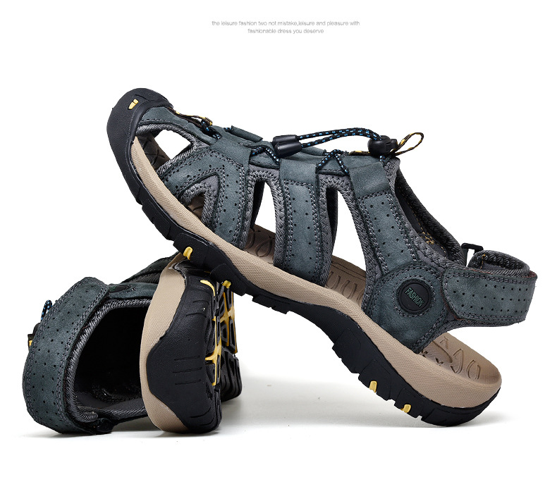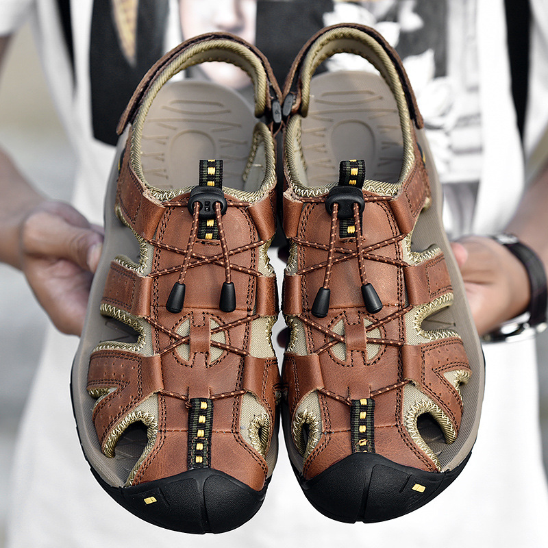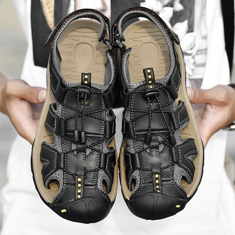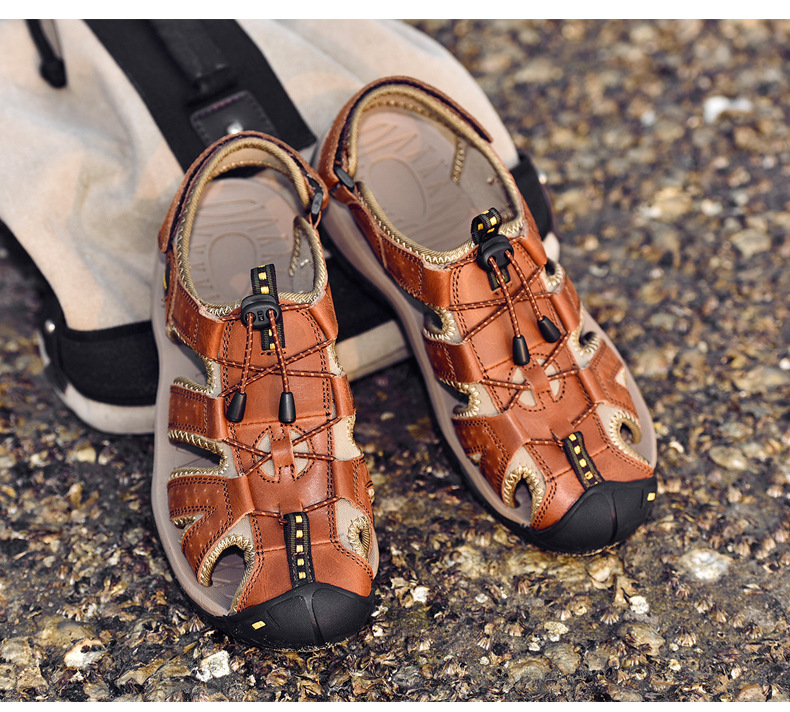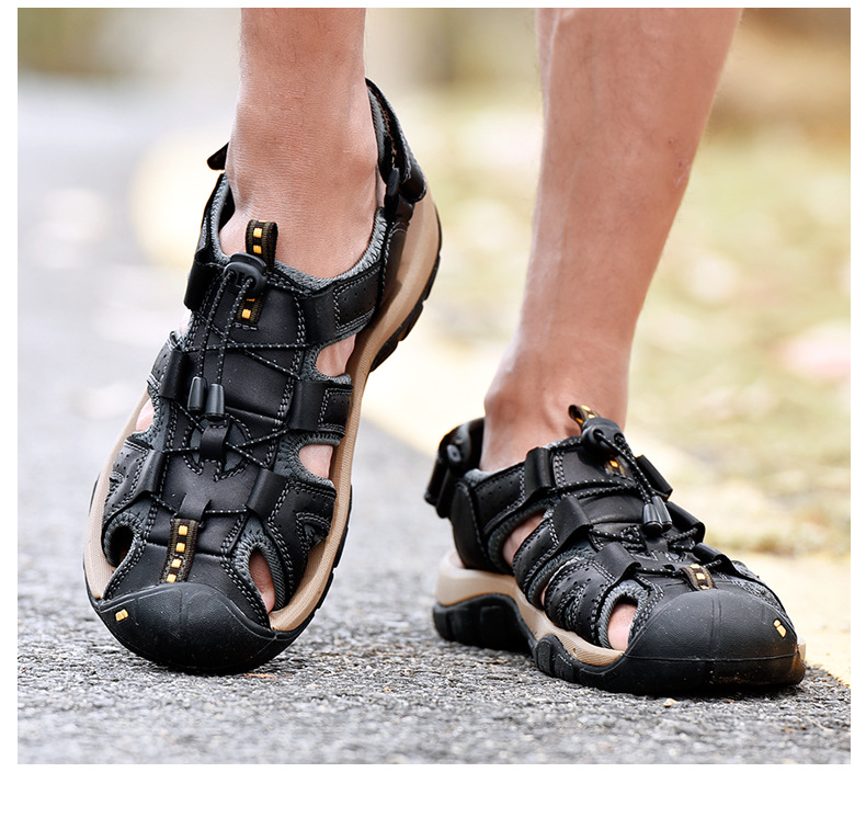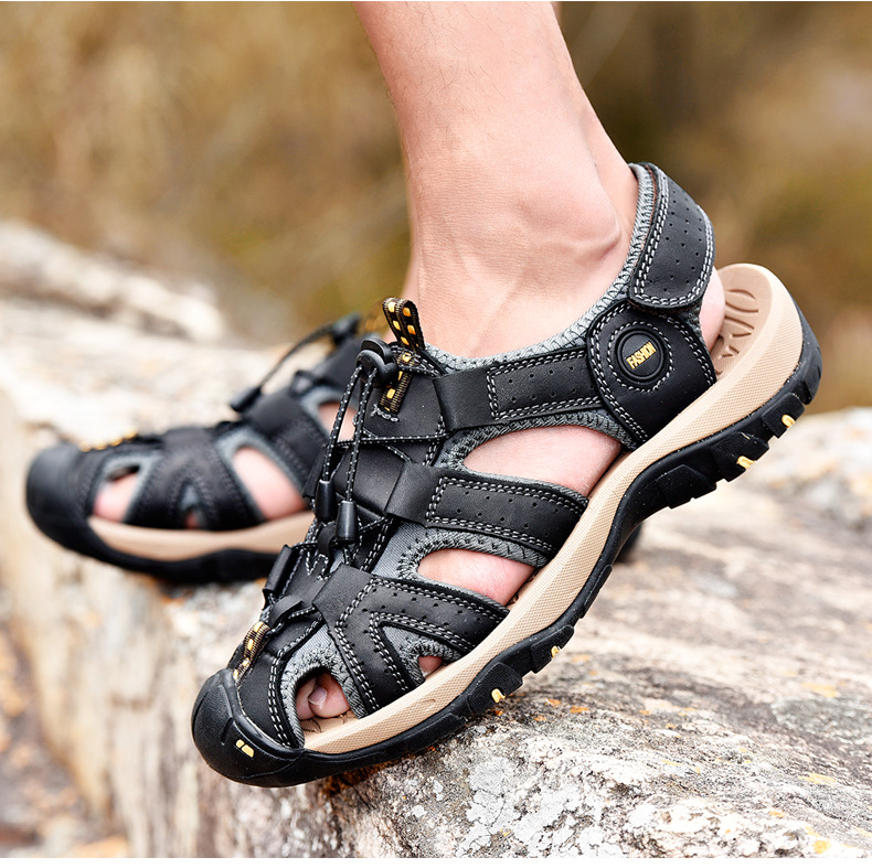 Giày đi núi mùa hè dành cho nam, kiểu dáng gọn gàng ôm trọn bàn chân. Sản phẩm được làm thủ công, có size lớn và rất thoáng khí, giúp đôi chân luôn mát mẻ, dễ chịu. Đế giày được thiết kế chống trượt, bám chắc trên nhiều địa hình, đảm bảo an toàn khi di chuyển. Bạn có thể dùng để đi bộ đường dài, leo núi hoặc mang trong các hoạt động ngoài trời. | Tên sản phẩm: Giày Dép Sandal Nam Big Size Ngoại Cỡ Ma Sát Chống Trượt Thoáng Khí Hàng Mùa Hè - Giày Dép Nam | Mã sản phẩm: A0910 - Giá: 610.000đ | Mã nhà sản xuất: TUNEZH-G02Hình ảnh sản phẩm