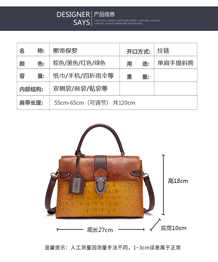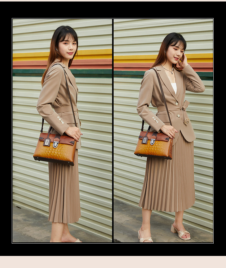 Túi xách nữ mẫu mới, kết hợp hài hòa giữa phong cách cổ điển châu Âu và nét hiện đại. Điểm nhấn nổi bật với họa tiết dập nổi tinh tế cùng sự phối màu sáng tạo. Thiết kế đa năng, vừa có qu xách vừa có dây đeo chéo linh hoạt, phù hợp cho nhiều dịp sử dụng khác nhau. Chất liệu bền đẹp, gia công tỉ mỉ đến từng đường kim mũi chỉ. Dễ dàng phối cùng nhiều trang phục, mang đến vẻ ngoài ấn tượng và cá tính cho người dùng. | Tên sản phẩm: Túi Xách Nữ Phong Cách Âu Mỹ - Túi Ví Nữ | Mã sản phẩm: A0926 - Giá: 920.000đ | Mã nhà sản xuất: GUDEA-G03Hình ảnh sản phẩm