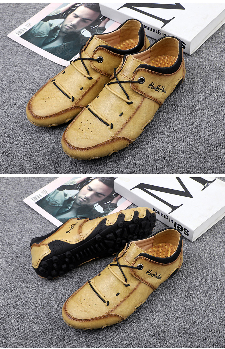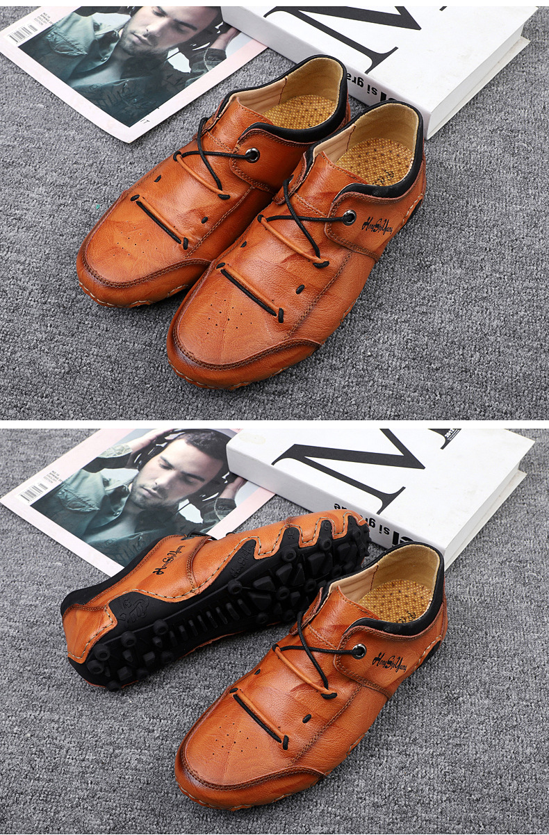 Giày da thật dành cho nam có form giày rộng rãi, phù hợp với nhiều cỡ chân. Sản phẩm sở hữu đế cực mềm và độ bền cao, giúp bạn thoải mái vận động cả ngày. Kiểu dáng phối các đường ôm độc đáo như hình bạch tuộc, mang đến vẻ ngoài năng động và hợp thời. Bạn có thể dễ dàng phối cùng quần jeans hoặc quần âu để tạo nên những phong cách khác nhau trong đời sống hằng ngày. | Tên sản phẩm: Giày Da Nam Chất Liệu Da Bò Big Size Ngoại Cỡ Đế Mềm - Giày Dép Nam | Mã sản phẩm: A0948 - Giá: 720.000đ | Mã nhà sản xuất: TUNEZH-G02Hình ảnh sản phẩm
