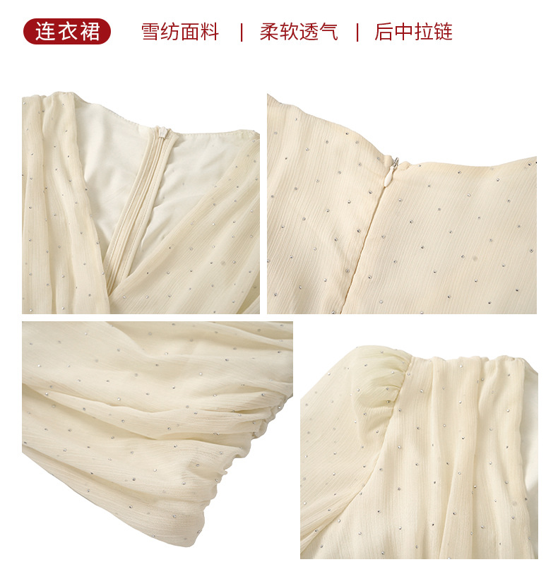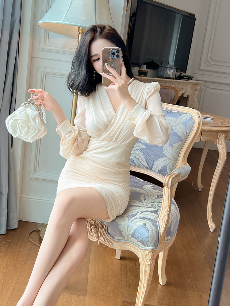 Chiếc đầm dành cho mùa thu với thiết kế kiểu cách Pháp thanh lịch. Cổ chữ V cùng các đường nhún tinh tế giúp tôn lên đường nét cơ thể một cách dịu dàng. Form đầm ôm vừa vặn, đặc biệt phù hợp cho những bạn có chiều cao khiêm tốn. Chất vải mềm mại mang đến sự thoải mái cho người mặc suốt cả ngày dài. Dễ dàng phối cùng giày cao gót hay giày đế bằng để tạo nên những phong cách khác nhau. | Tên sản phẩm: Váy Đầm Liền Thân Nữ Cổ Chữ V Hàng Mùa Xuân Thu Đông - Thời Trang Nữ | Mã sản phẩm: a0964 - Giá: 1.200.000đ | Mã nhà sản xuất: CHDG-G04Hình ảnh sản phẩm