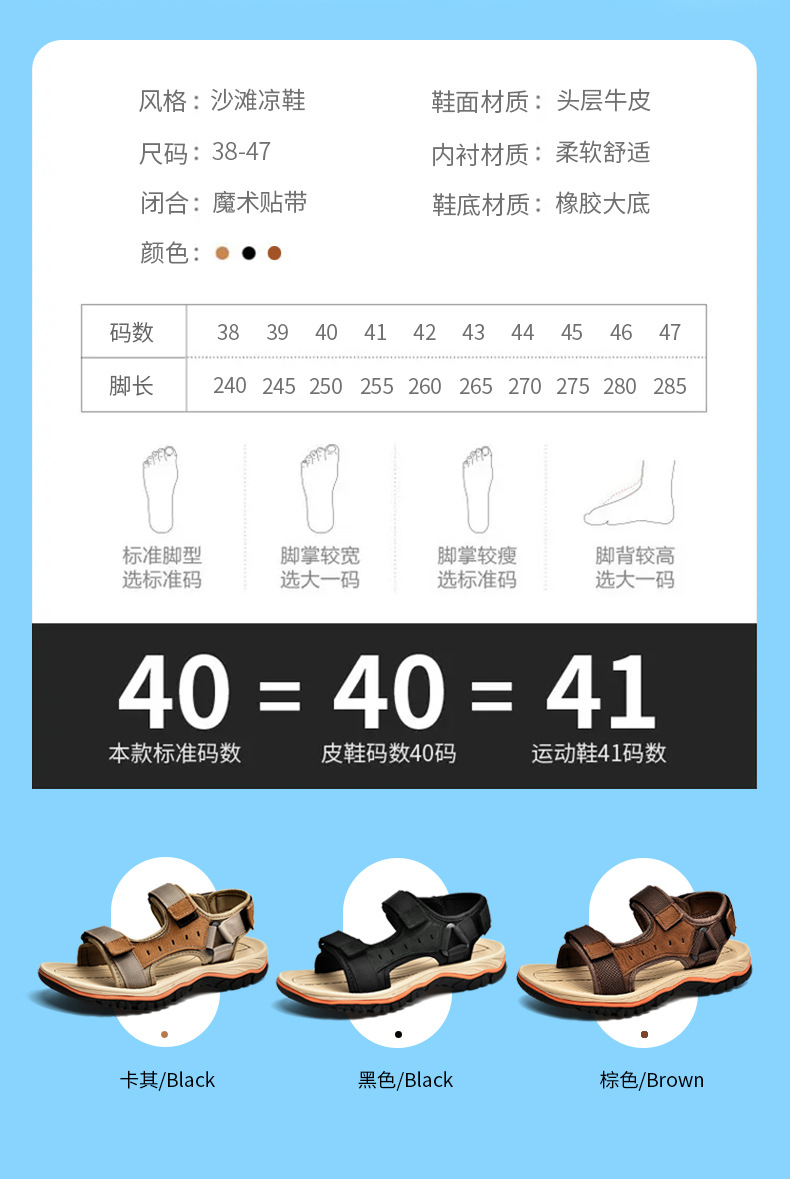 Đôi giày nam thiết kế năng động với phần đế dày tạo cảm giác thoải mái khi di chuyển. Sản phẩm sử dụng chất liệu da thật tự nhiên ở mặt ngoài, mang lại độ bền và khả năng thông thoáng tốt. Kiểu dáng phù hợp cho các hoạt động ngoài trời hoặc đi chơi thường ngày. Cách sử dụng rất đơn giản nhờ hệ thống dán tự động giúp điều chỉnh độ ôm vừa vặn. Đây là lựa chọn tiện lợi cho mùa hè với nhiều cỡ chân khác nhau. | Tên sản phẩm: Giày Dép Sandal Nam Chất Liệu Da Bò Big Size Ngoại Cỡ Đế Cao Hàng Mùa Hè - Giày Dép Nam | Mã sản phẩm: A0970 - Giá: 590.000đ | Mã nhà sản xuất: TUNEZH-G01Hình ảnh sản phẩm