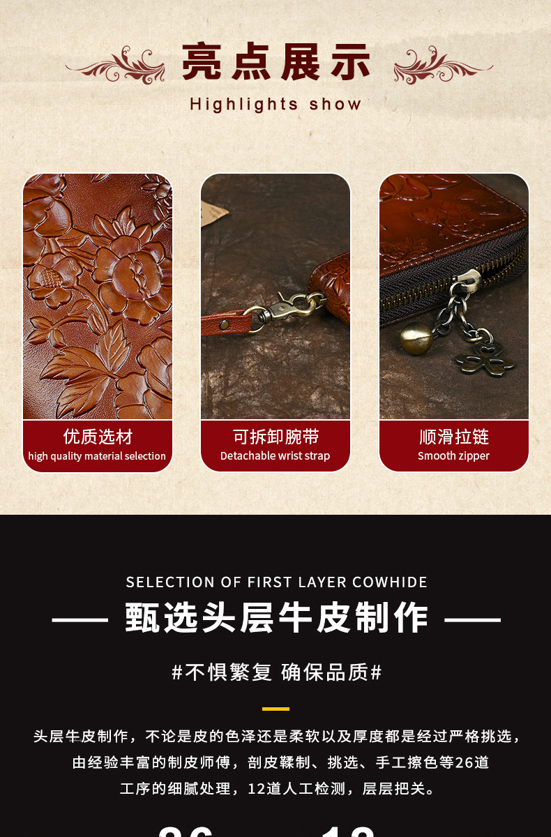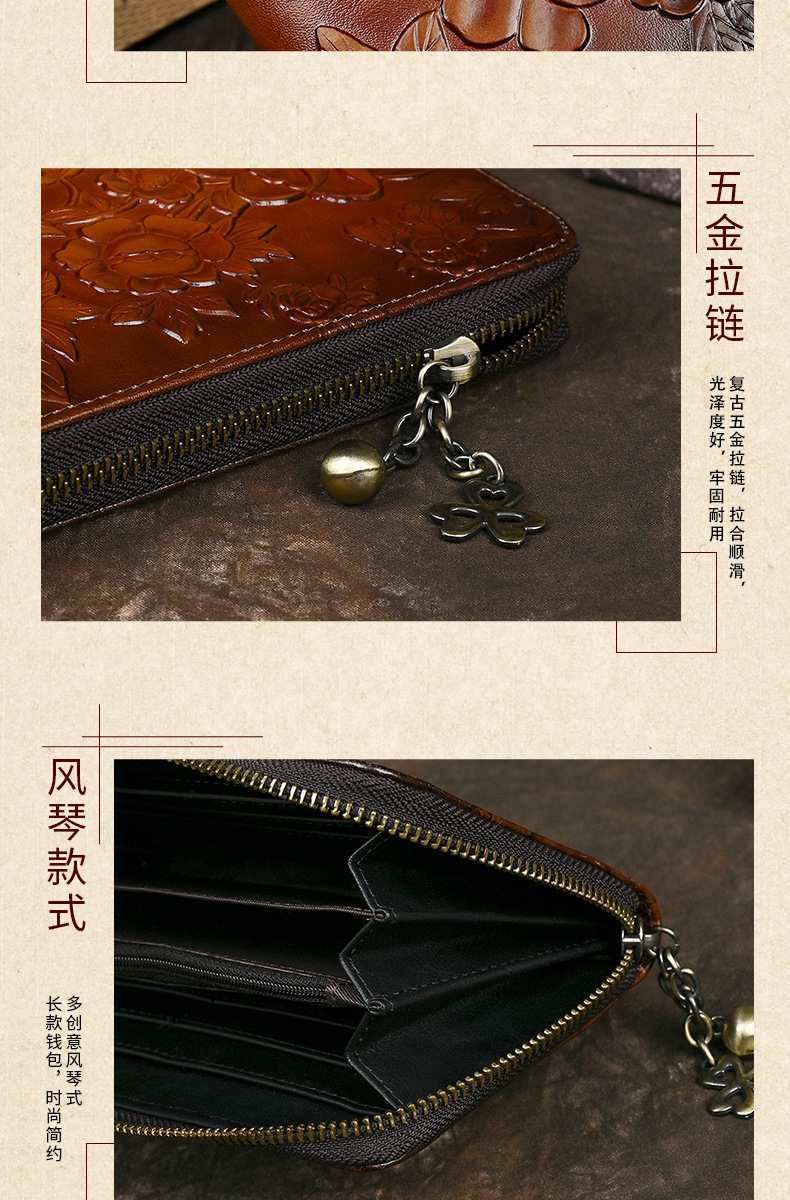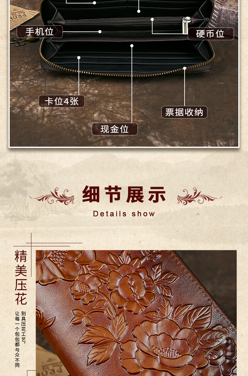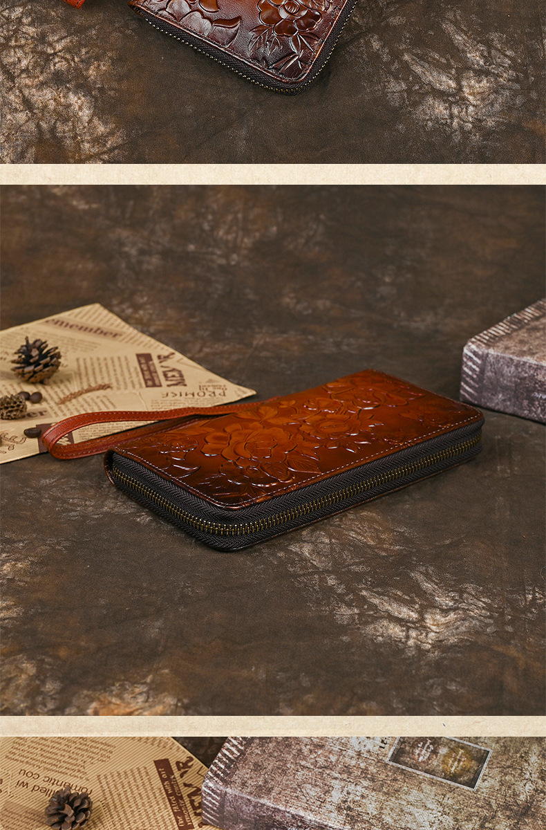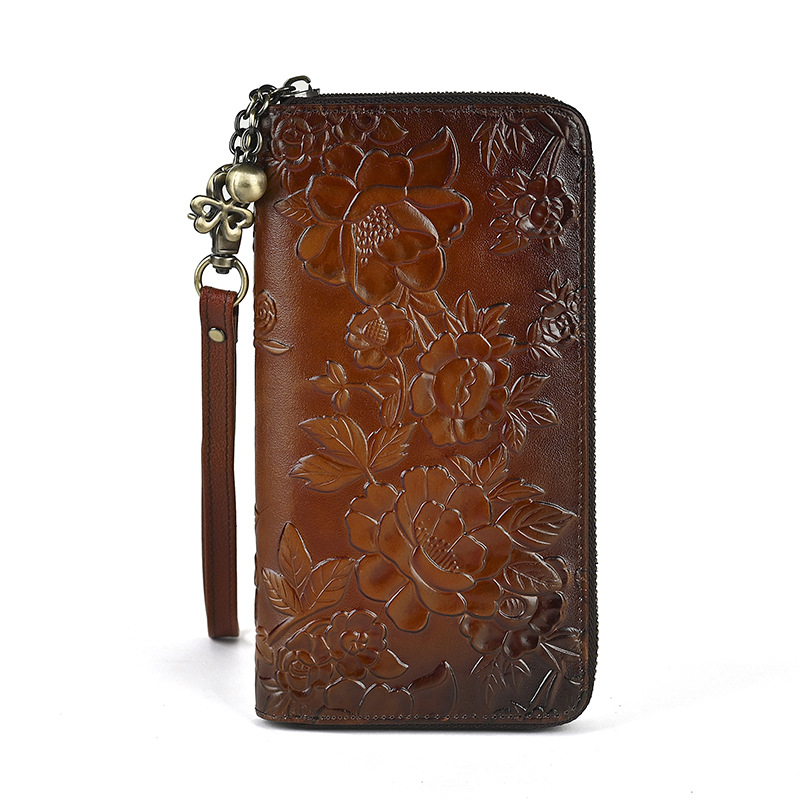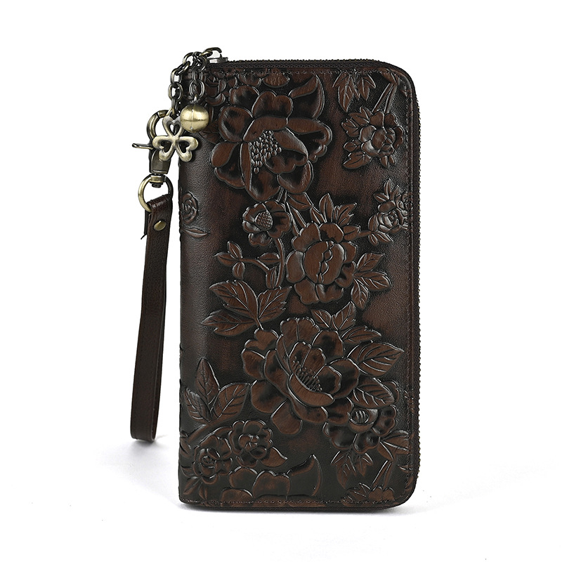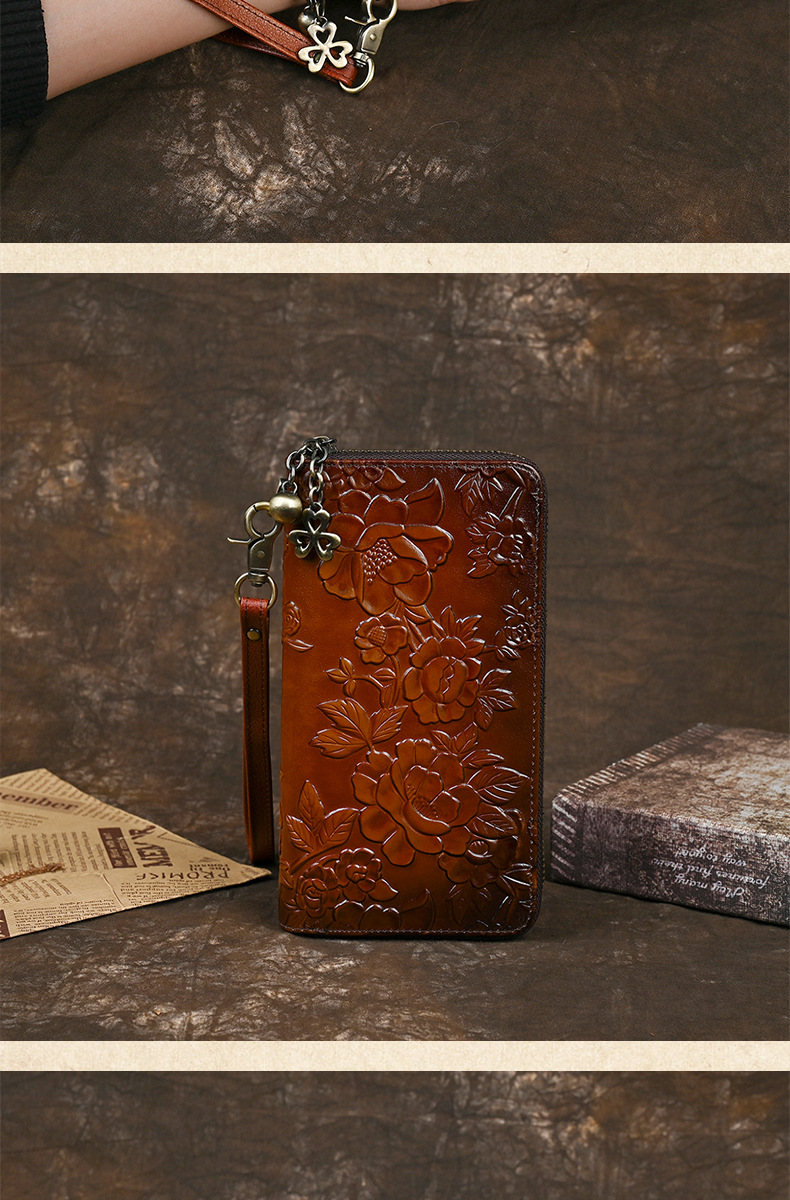 Chiếc ví cầm tay này có kiểu dáng thon dài, được làm từ chất da bò mềm mại và bền chắc. Điểm nhấn đặc biệt là họa tiết ép hoa và cây cỏ tinh xảo, mang đến vẻ đẹp dịu dàng và nữ tính. Bên trong ví có nhiều ngăn rộng rãi, giúp bạn dễ dàng sắp xếp tiền mặt, thẻ và các giấy tờ quan trọng. Rất tiện lợi khi cầm đi làm hoặc dự tiệc. | Tên sản phẩm: Ví Bóp Cầm Tay Nữ Chất Liệu Da Bò Họa Tiết Hoa Phục Cổ Cổ Điển - Túi Ví Nữ | Mã sản phẩm: A0984 - Giá: 670.000đ | Mã nhà sản xuất: GUDGE-G02Hình ảnh sản phẩm