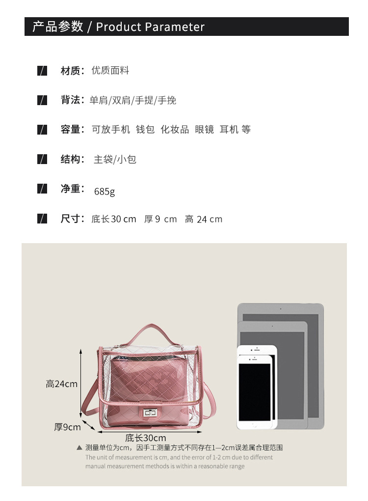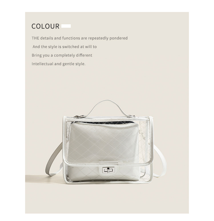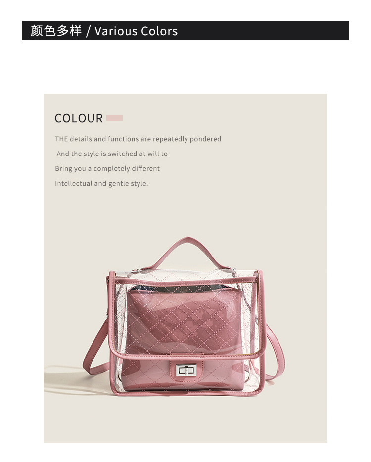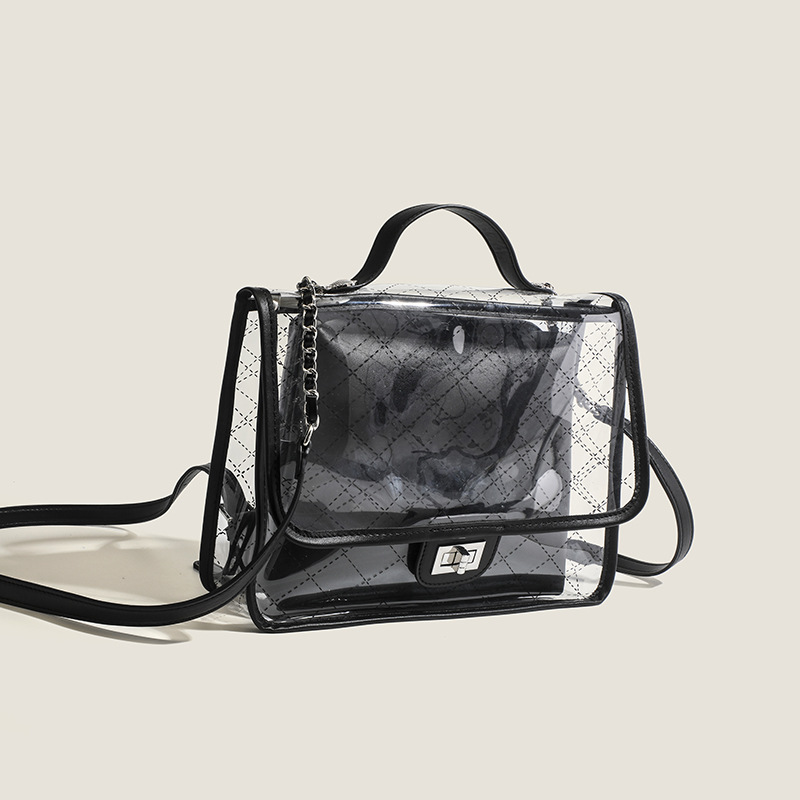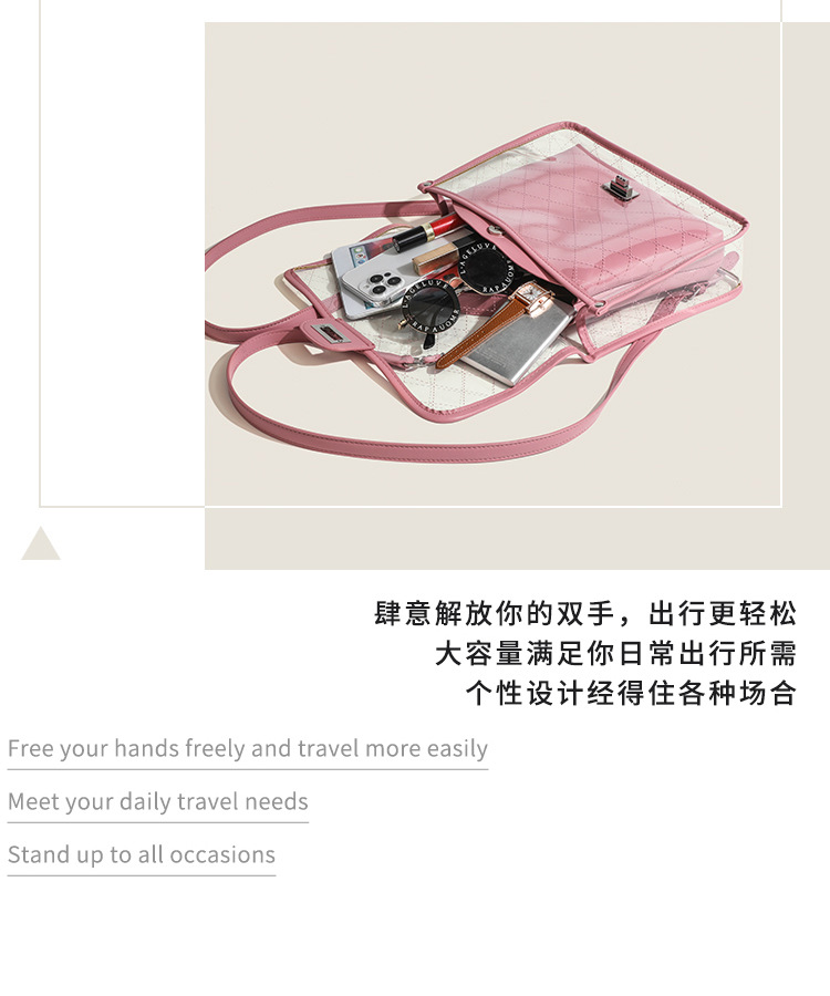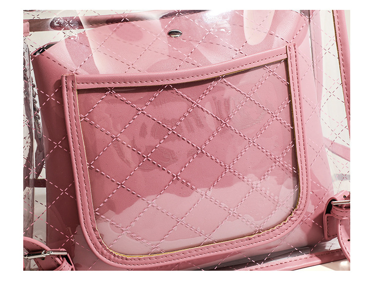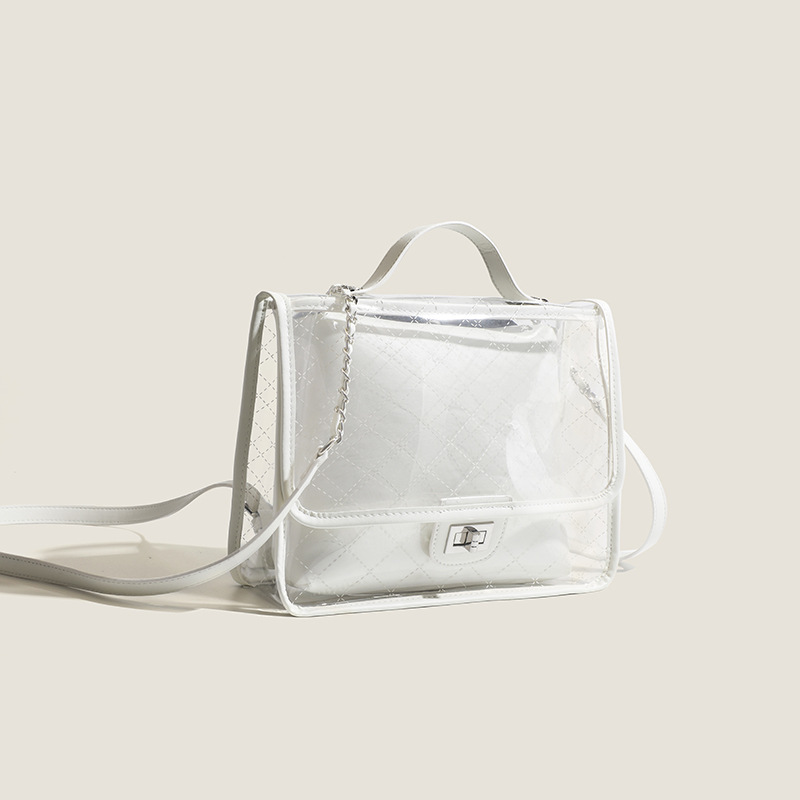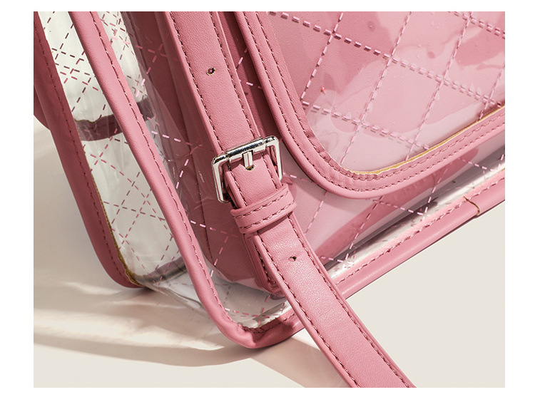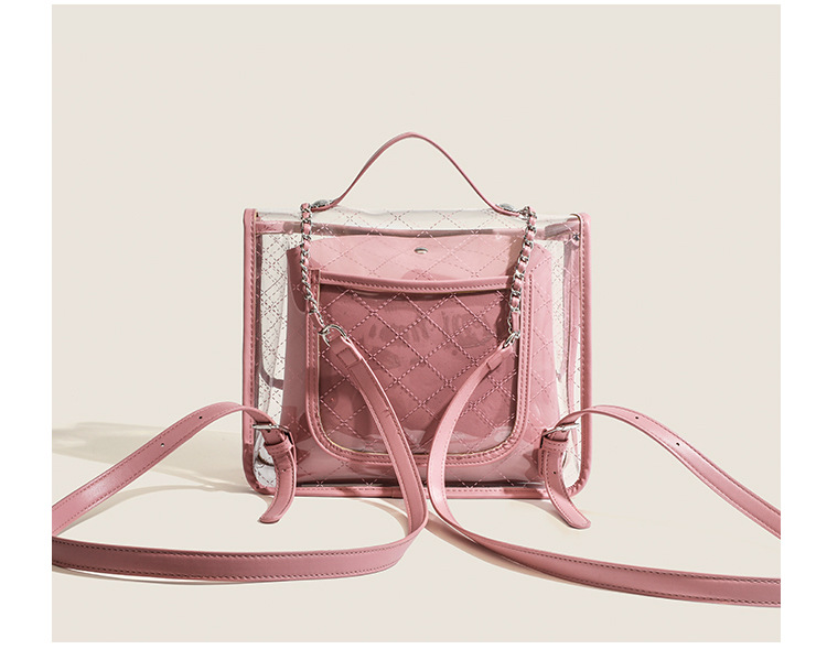 Chiếc ba lô trong suốt này có kiểu dáng hiện đại, được điểm xuyến bởi những đường may tạo hình ô quả trám tinh tế. Chất liệu trong như thạch giúp bạn dễ dàng tìm thấy đồ đạc bên trong. Sản phẩm rất rộng rãi, đựng vừa nhiều vật dụng cần thiết cho những chuyến đi chơi trong ngày. Bạn có thể đeo trên v hoặc xách tay một cách thuận tiện. | Tên sản phẩm: Túi Xách Nữ Kẻ Caro Kẻ Caro Trong Suốt Hàng Mùa Hè - Túi Ví Nữ | Mã sản phẩm: A1029 - Giá: 510.000đ | Mã nhà sản xuất: GURELE-G01Hình ảnh sản phẩm