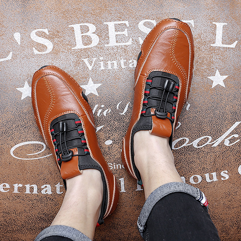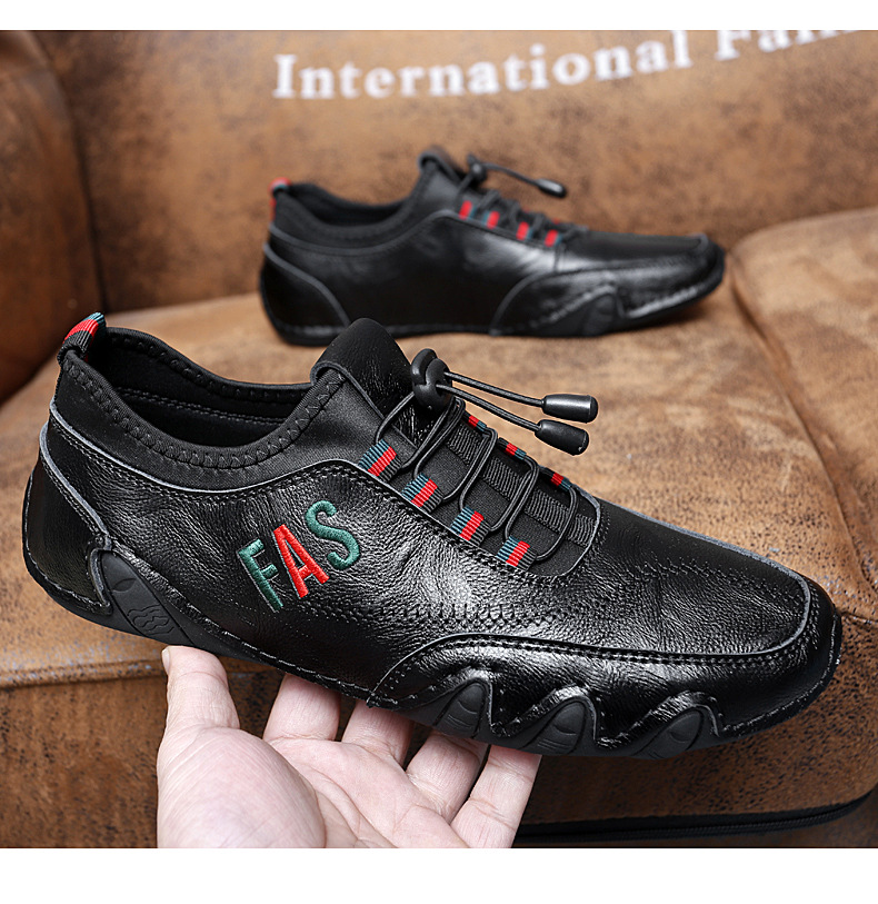 Giày da dành cho nam, kiểu dáng thoải mái với form giày rộng rãi. Sản phẩm được làm từ chất liệu da thật, êm ái và co giãn tốt. Đế giày mềm, nhẹ, có các múi bám đa chiều như chân bạch tuộc, giúp di chuyển nhẹ nhàng và vững chắc. Đây là kiểu giày lười tiện lợi, không cần buộc dây, phong cách trẻ trung. Bạn có thể mang đi làm, đi chơi hoặc dạo phố hằng ngày một cách dễ dàng. | Tên sản phẩm: Giày Da Nam Chất Liệu Da Bò Big Size Ngoại Cỡ Đế Mềm Phong Cách Hàn Quốc - Giày Dép Nam | Mã sản phẩm: A1039 - Giá: 510.000đ | Mã nhà sản xuất: TUNEZH-G01Hình ảnh sản phẩm