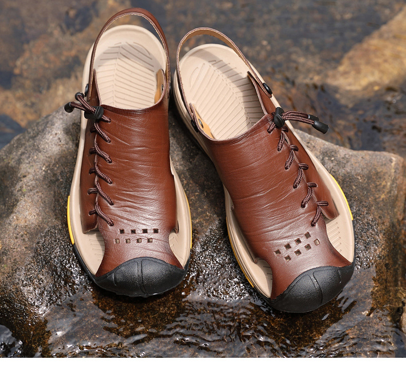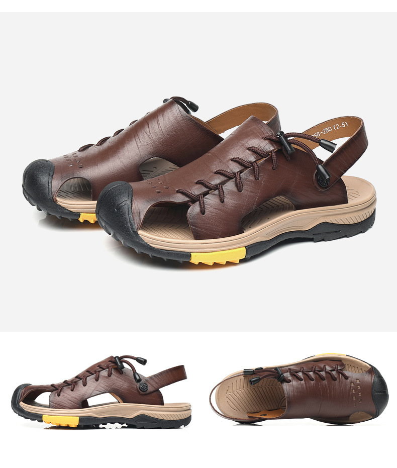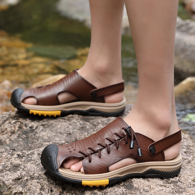 Đôi dép đi biển dành cho nam có thiết kế ôm trọn bàn chân, mang phong cách cổ điển nhẹ nhàng. Sản phẩm được làm từ chất liệu da thật, bên trong có lớp lót mềm mại, tạo cảm giác dễ chịu khi mang. Đế dép chống trượt và chịu mài mòn tốt, đảm bảo an toàn và sử dụng được lâu dài. Kiểu dáng thoáng mát, phù hợp để đi dạo hoặc sử dụng trong những ngày hè. Bạn chỉ cần xỏ chân vào và điều chỉnh qu cho vừa vặn là có thể sử dụng ngay. | Tên sản phẩm: Giày Dép Sandal Nam Chất Liệu Da Bò Big Size Ngoại Cỡ Ma Sát Chống Trượt Thoáng Khí Hàng Mùa Hè Phục Cổ Cổ Điển - Giày Dép Nam | Mã sản phẩm: A1055 - Giá: 870.000đ | Mã nhà sản xuất: TUNEZH-G03Hình ảnh sản phẩm