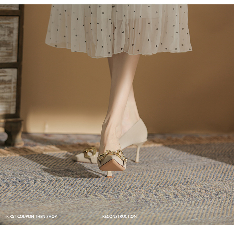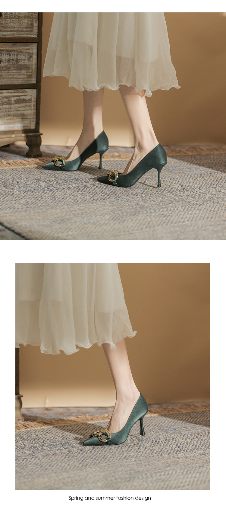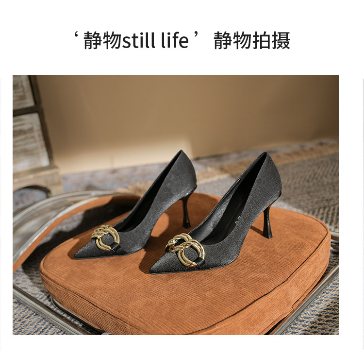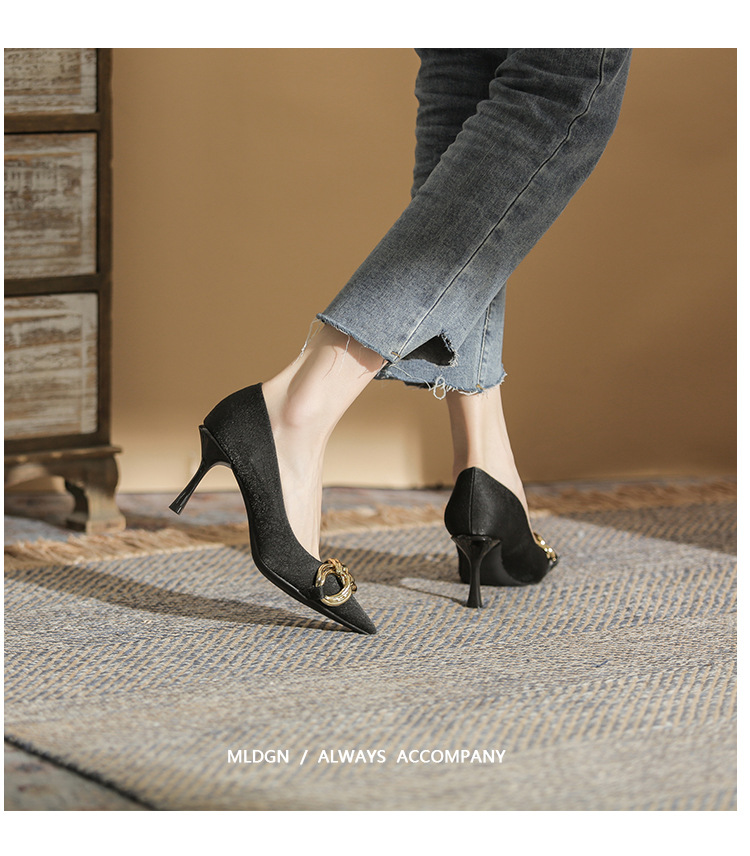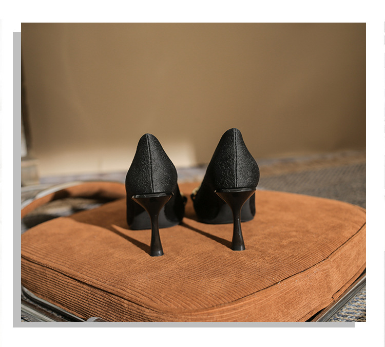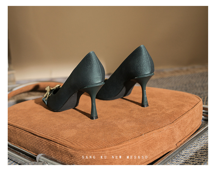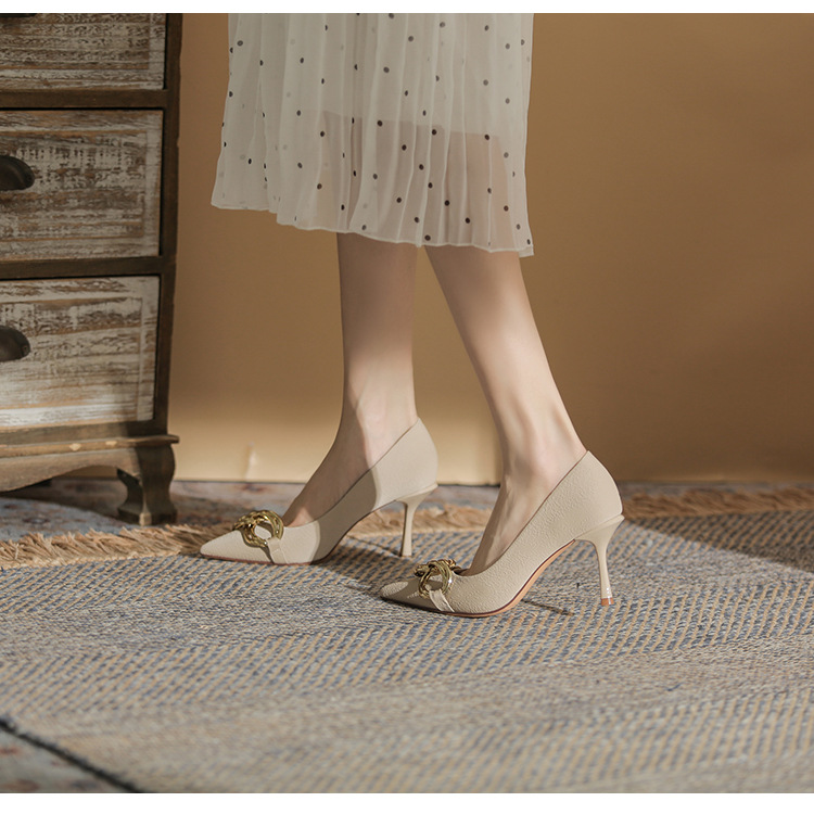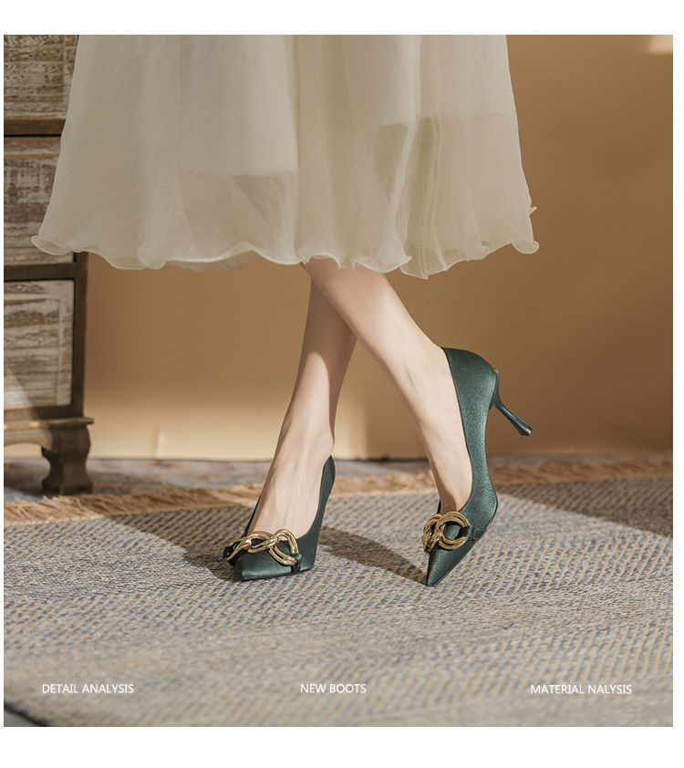 Giày cao gót nữ thiết kế kiểu mũi nhọn, cổ thấp, phong cách châu Âu hiện đại. Điểm nhấn là chi tiết dây xích kim loại tinh tế phía trên, tạo nên vẻ thanh lịch và cá tính. Phần gót thanh mảnh giúp tôn dáng và tăng thêm phần nữ tính. Sản phẩm thích hợp để đi làm, dự tiệc hoặc tạo điểm nhấn cho các bộ trang phục hàng ngày. Khi sử dụng, nên chọn size vừa vặn và kết hợp với những bộ cánh yêu thích. | Tên sản phẩm: Giày Cao Gót Nữ Mũi Nhọn Gót Nhọn Hàng Mùa Xuân Thu Đông Phong Cách Âu Mỹ - Giày Dép Nữ | Mã sản phẩm: A1067 - Giá: 840.000đ | Mã nhà sản xuất: HUDS-G03Hình ảnh sản phẩm