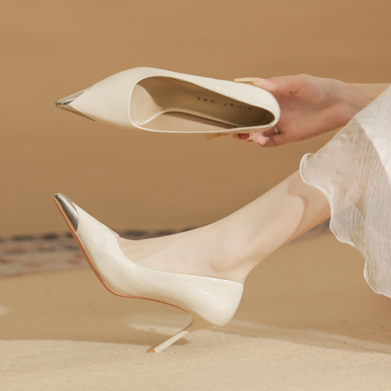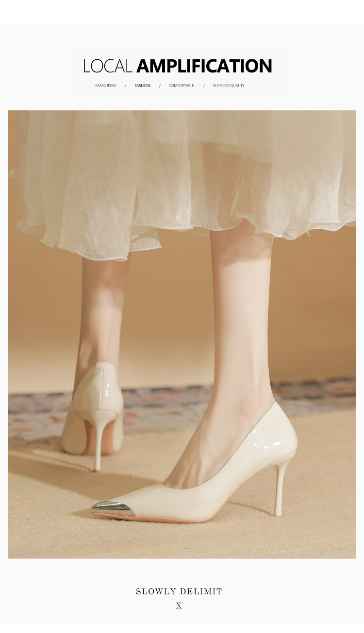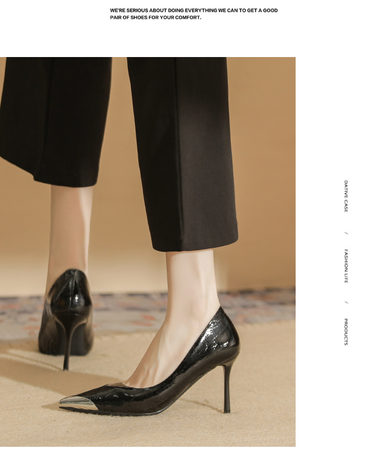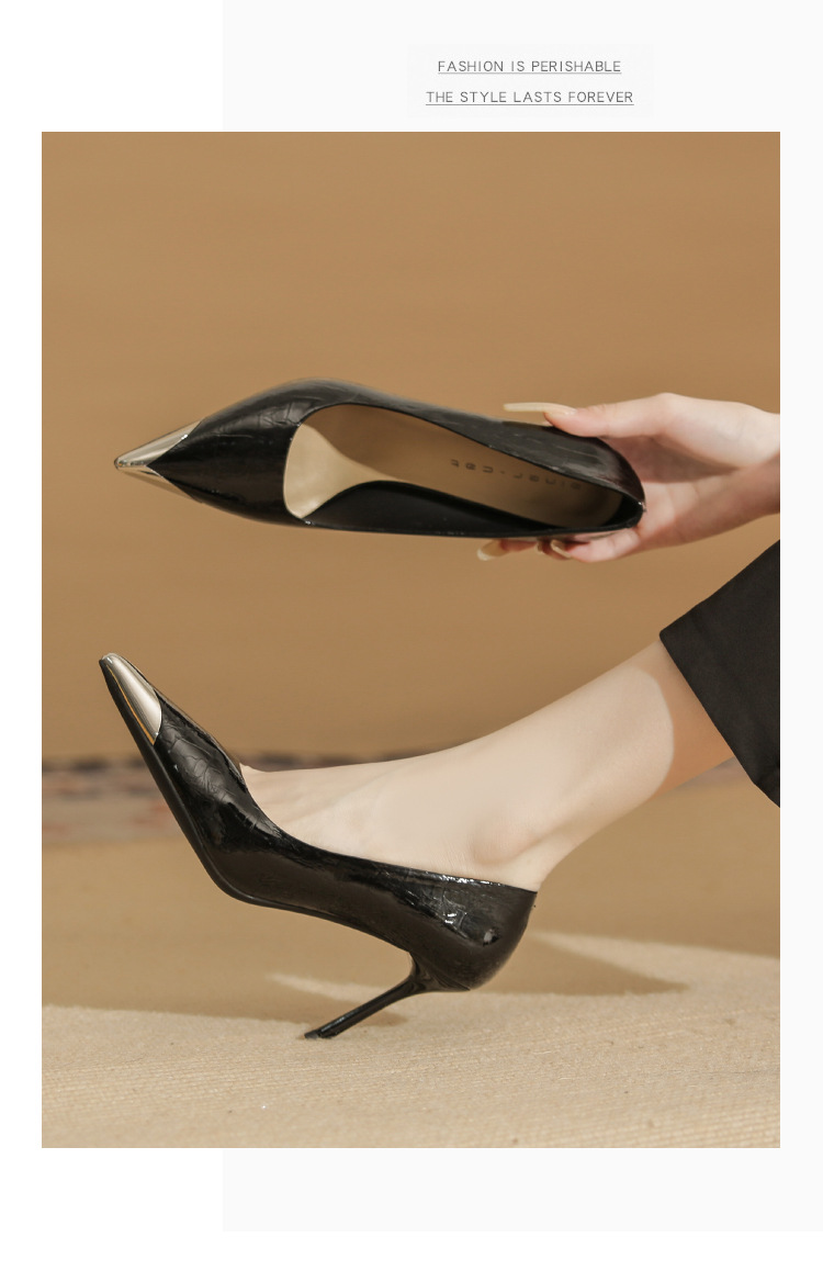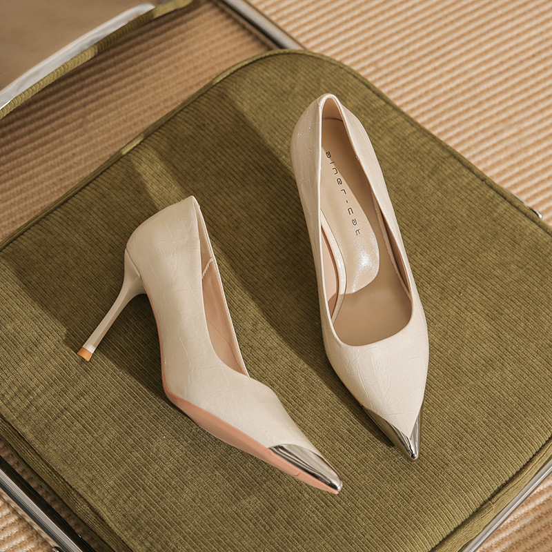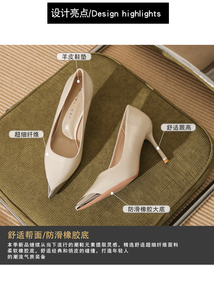 Giày cao gót nữ với phần mũi nhọn được điểm xuyết chi tiết bằng kim loại sáng bóng, tạo điểm nhấn tinh tế. Chất liệu da mềm mại ôm chân một cách thoải mái. Kiểu dáng gót nhọn thanh lịch, cổ giày thấp phù hợp cho việc di chuyển nhiều trong ngày. Bạn có thể dễ dàng phối cùng quần âu hoặc váy để có vẻ ngoài chỉn chu. | Tên sản phẩm: Giày Cao Gót Nữ Mũi Nhọn Gót Nhọn - Giày Dép Nữ | Mã sản phẩm: A1073 - Giá: 890.000đ | Mã nhà sản xuất: HUDS-G03Hình ảnh sản phẩm