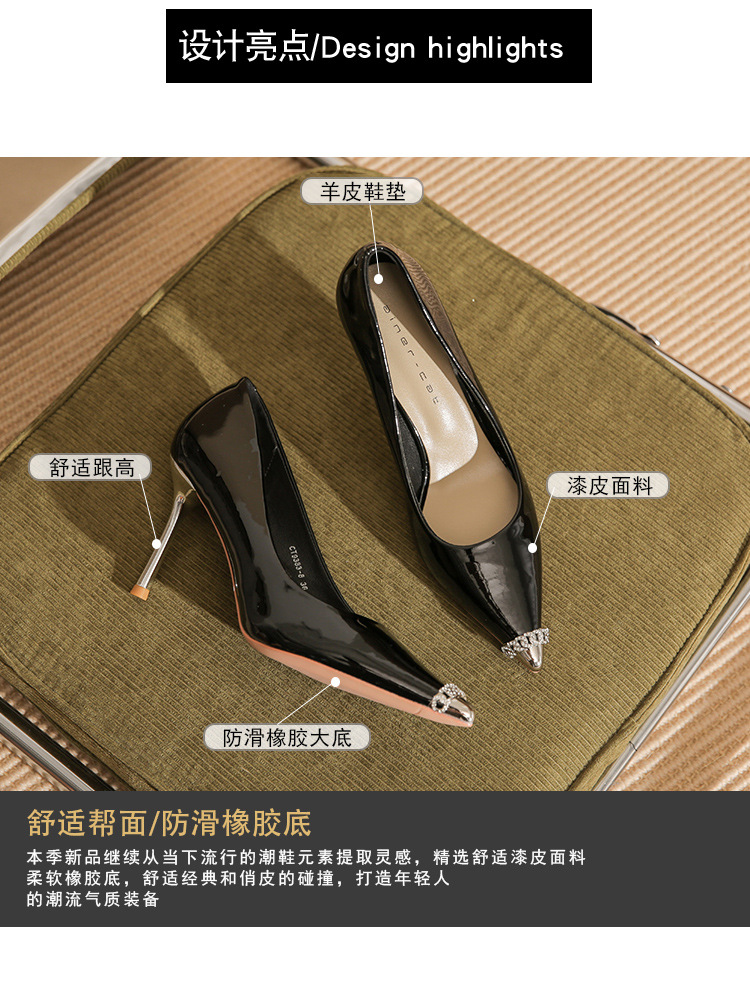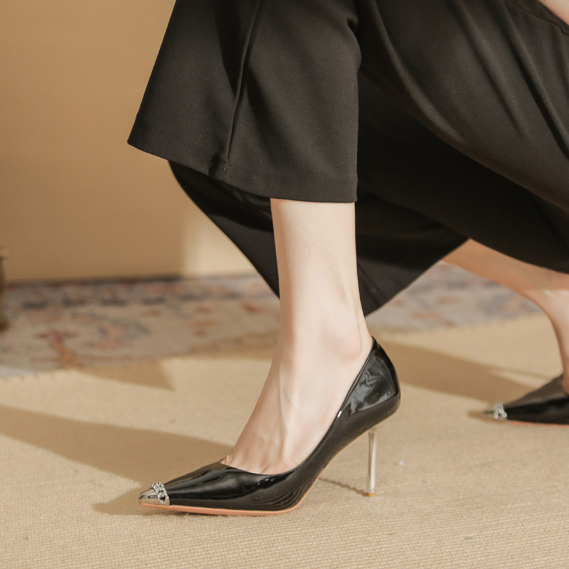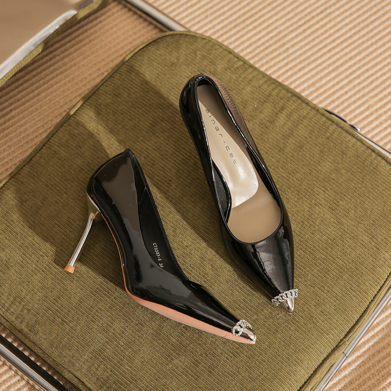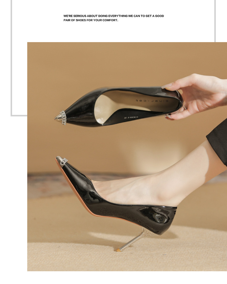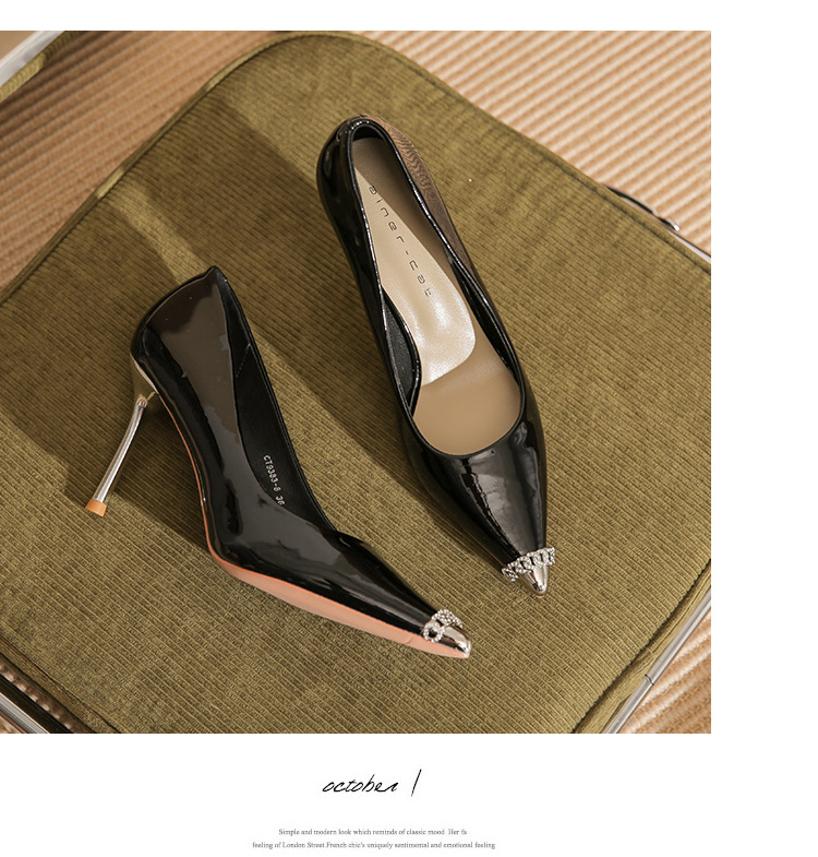 Giày cao gót nữ với phần mũi nhọn thanh lịch, được làm từ chất liệu da bóng đẹp mắt. Sản phẩm có gót nhọn vừa phải, giúp tôn dáng và dễ dàng phối cùng nhiều trang phục khác nhau như quần tây, chân váy khi đi làm hoặc dự tiệc. Bạn chỉ cần mang vào và bước đi tự tin là đã có ngay vẻ ngoài ưng ý. | Tên sản phẩm: Giày Cao Gót Nữ Mũi Nhọn Gót Nhọn - Giày Dép Nữ | Mã sản phẩm: A1076 - Giá: 890.000đ | Mã nhà sản xuất: HUDS-G03Hình ảnh sản phẩm