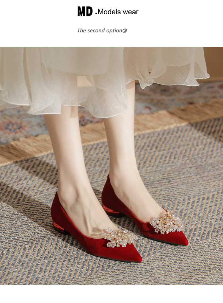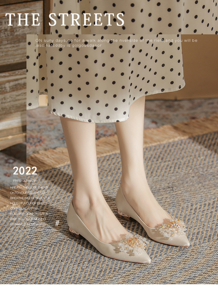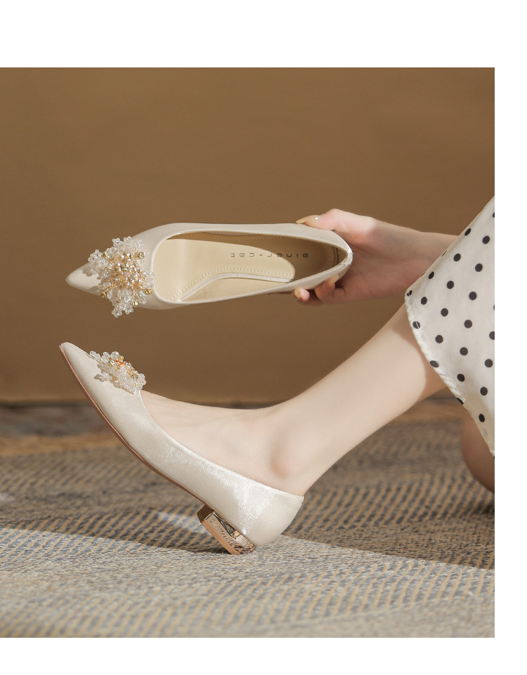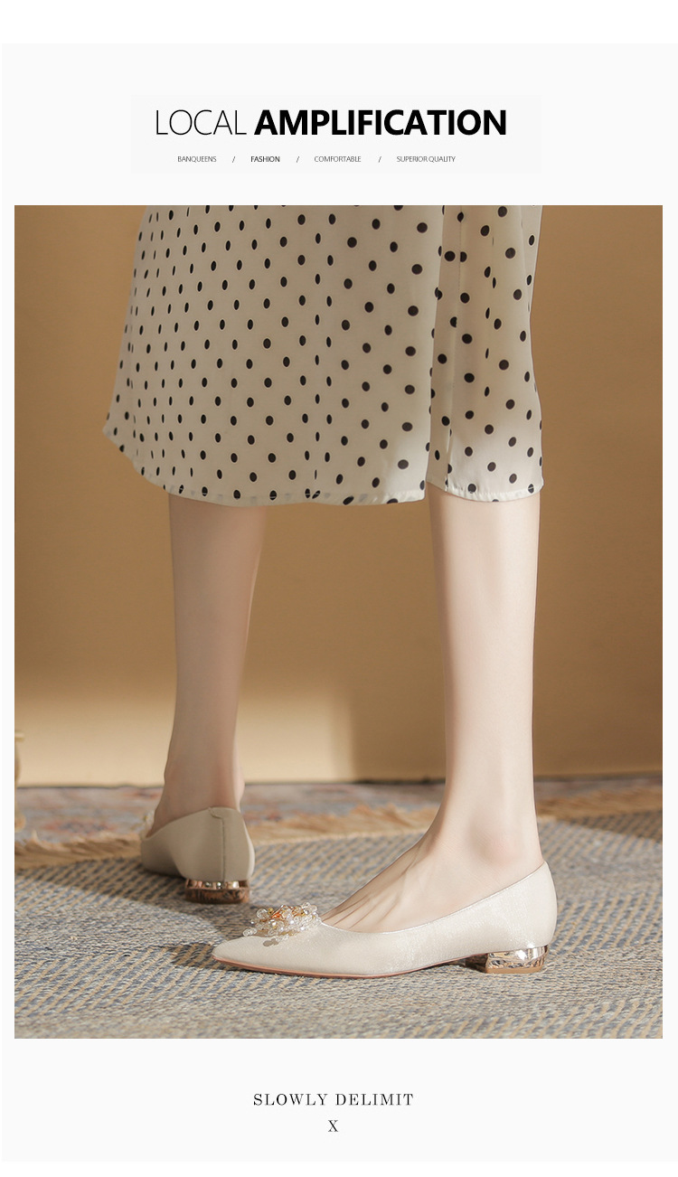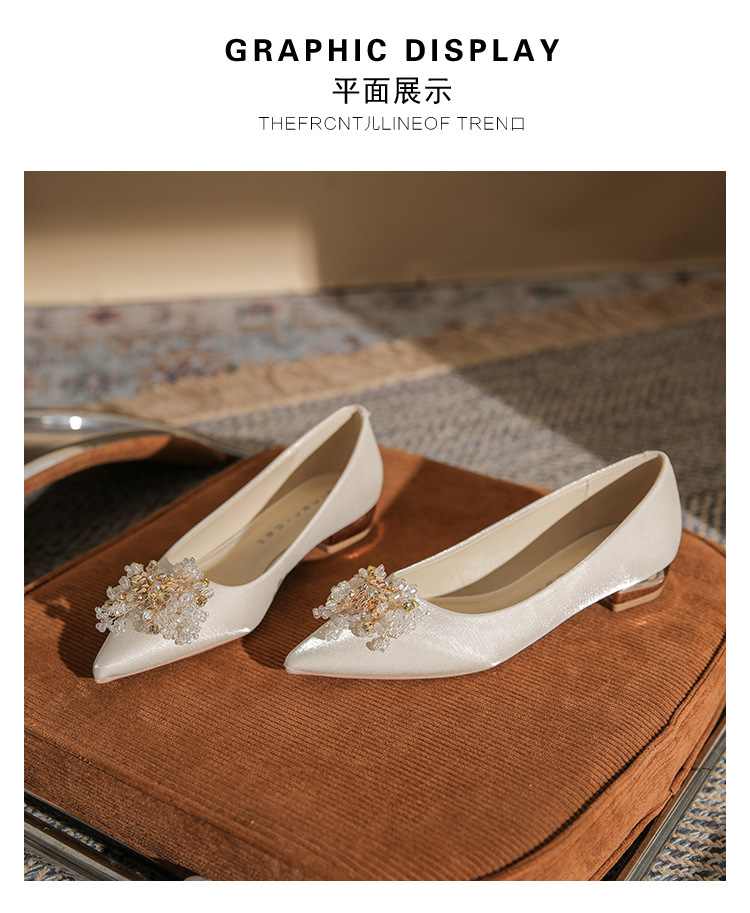 Đôi giày này có phần đế bằng phẳng và gót thấp vừa phải, giúp bạn di chuyển thoải mái suốt ngày dài. Kiểu dáng mũi nhọn cùng phần cổ rộng tạo nên vẻ thanh thoát. Sản phẩm thích hợp để mang trong các dịp quan trọng hoặc kết hợp cùng trang phục thường ngày. Bạn chỉ cần xỏ chân vào và điều chỉnh dây qu cho vừa vặn là có thể sử dụng ngay. | Tên sản phẩm: Giày Cao Gót Nữ Mũi Nhọn Gót Vuông Dùng Trong Lễ Cưới - Giày Dép Nữ | Mã sản phẩm: A1079 - Giá: 990.000đ | Mã nhà sản xuất: HUDS-G03Hình ảnh sản phẩm