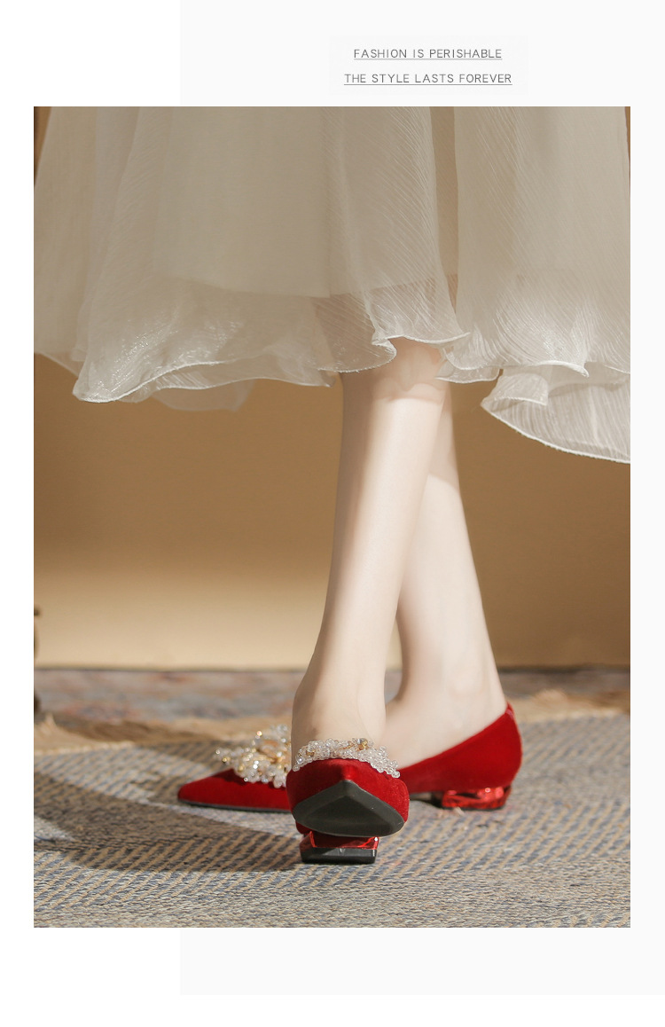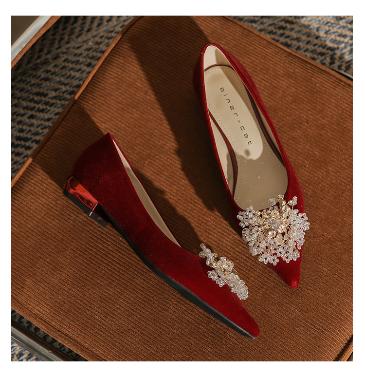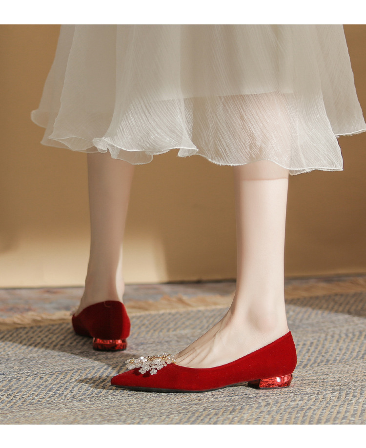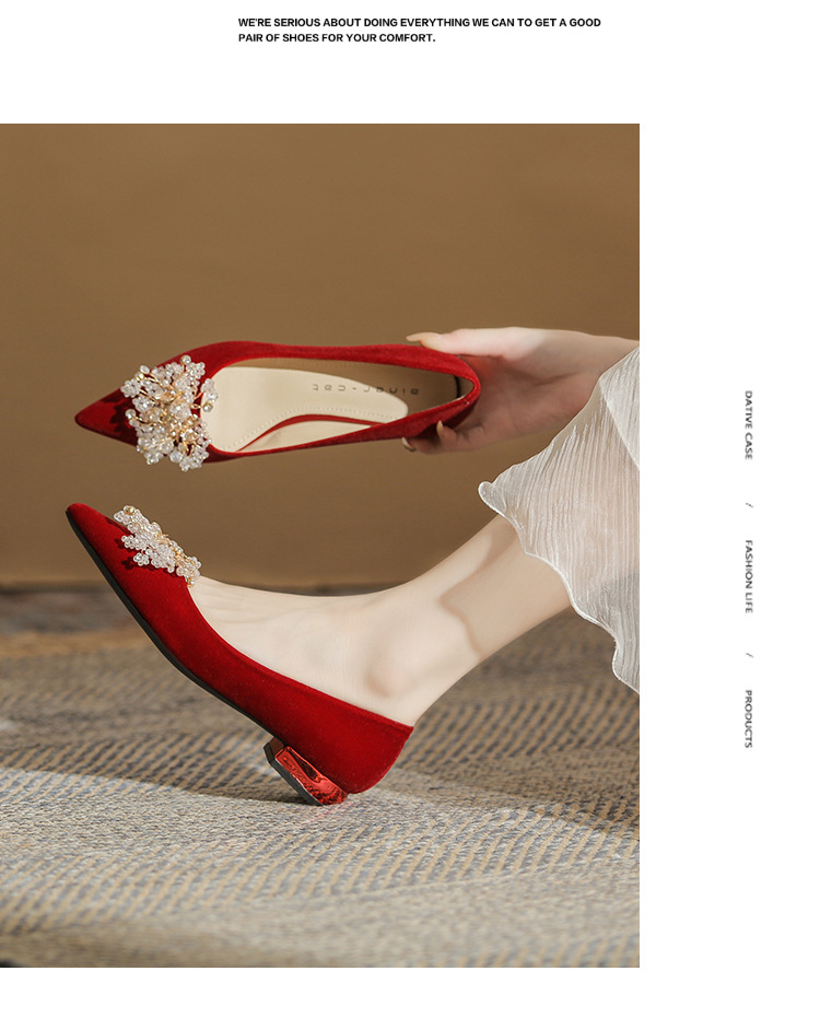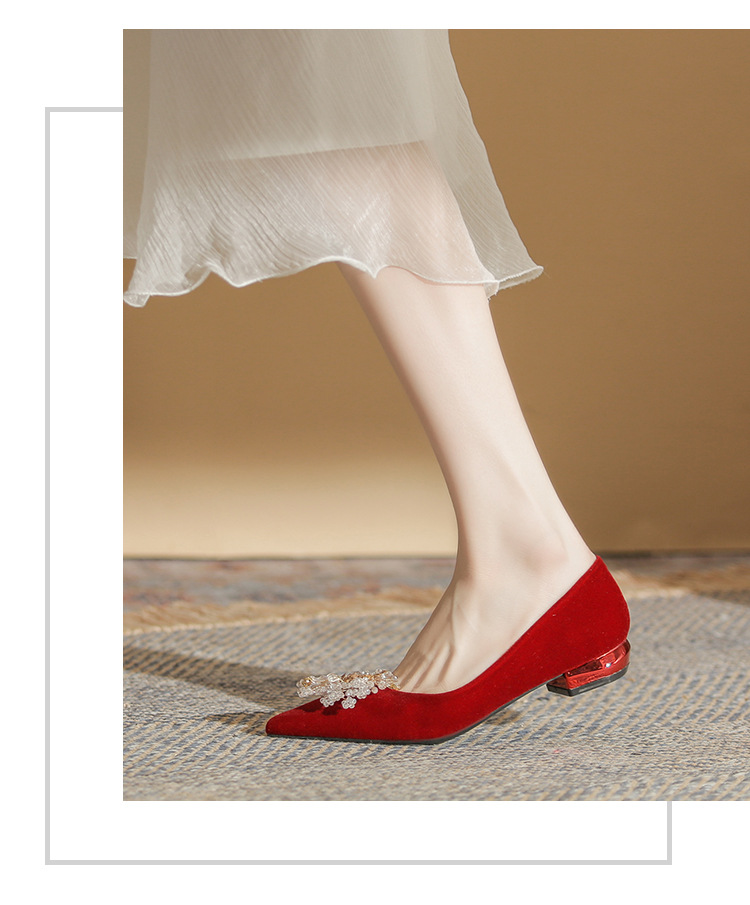 Đôi giày này có phần đế bằng phẳng và gót thấp vừa phải, giúp bạn di chuyển thoải mái suốt ngày dài. Kiểu dáng mũi nhọn cùng phần cổ rộng tạo nên vẻ thanh thoát. Sản phẩm thích hợp để mang trong các dịp quan trọng hoặc kết hợp cùng trang phục thường ngày. Bạn chỉ cần xỏ chân vào và điều chỉnh dây qu cho vừa vặn là có thể sử dụng ngay. | Tên sản phẩm: Giày Cao Gót Nữ Mũi Nhọn Gót Vuông Dùng Trong Lễ Cưới - Giày Dép Nữ | Mã sản phẩm: A1079 - Giá: 990.000đ | Mã nhà sản xuất: HUDS-G03Hình ảnh sản phẩm