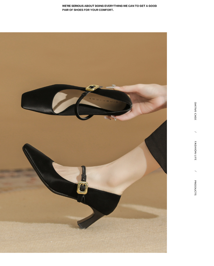 Đôi giày này có phần mũi vuông thanh lịch, kết hợp cùng gót thấp vững chãi giúp bạn dễ dàng di chuyển cả ngày. Kiểu dáng cổ điển với dây đ ngang điều chỉnh được ôm vừa chân, tạo điểm nhấn nữ tính. Chất liệu nhẹ nhàng và bề mặt da mềm mại mang lại sự thoải mái tối đa. Bạn chỉ cần tháo mở khóa dây đ là có thể xỏ chân vào một cách dễ dàng, phù hợp cho nhiều dịp sử dụng. | Tên sản phẩm: Giày Cao Gót Nữ Gót Vuông Quai Hậu - Giày Dép Nữ | Mã sản phẩm: A1082 - Giá: 830.000đ | Mã nhà sản xuất: HUDS-G03Hình ảnh sản phẩm