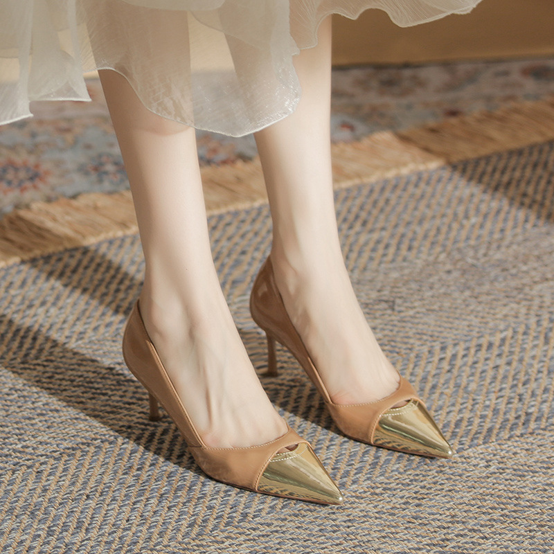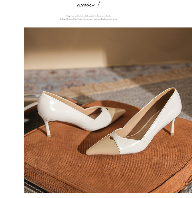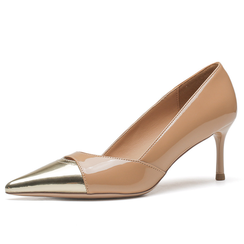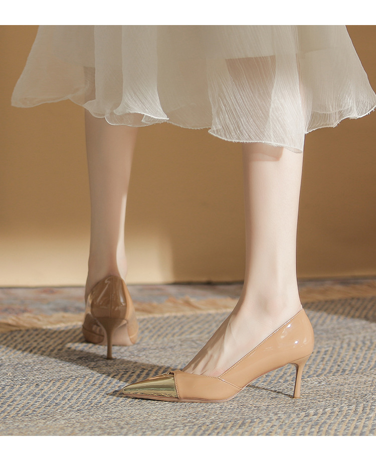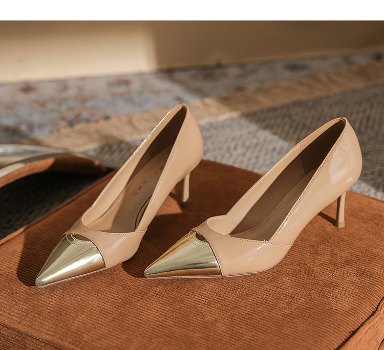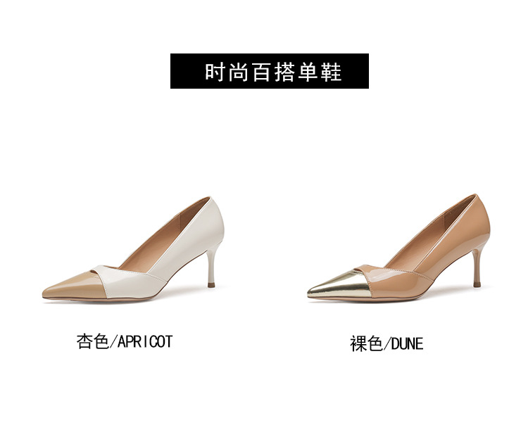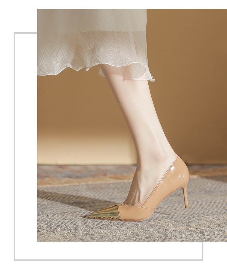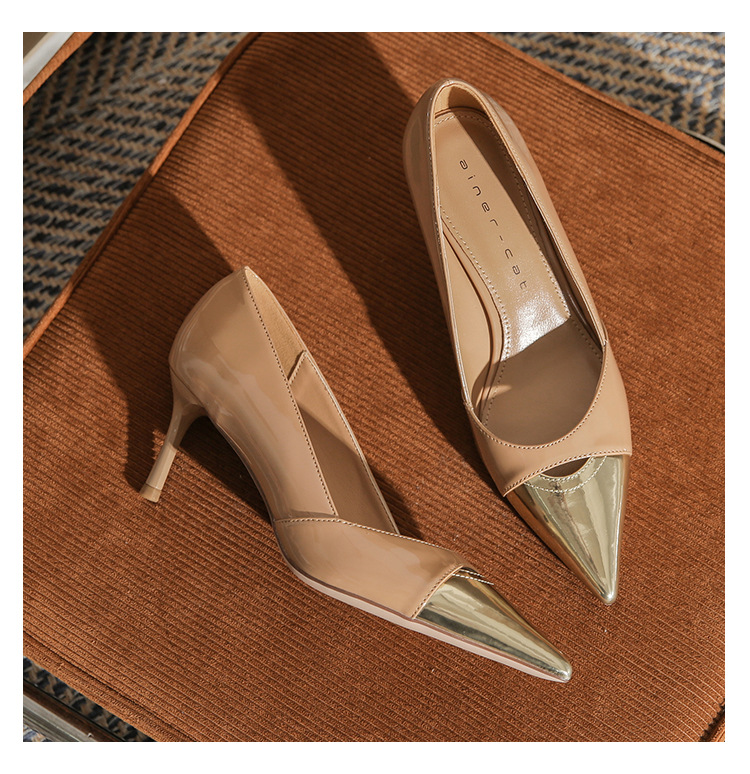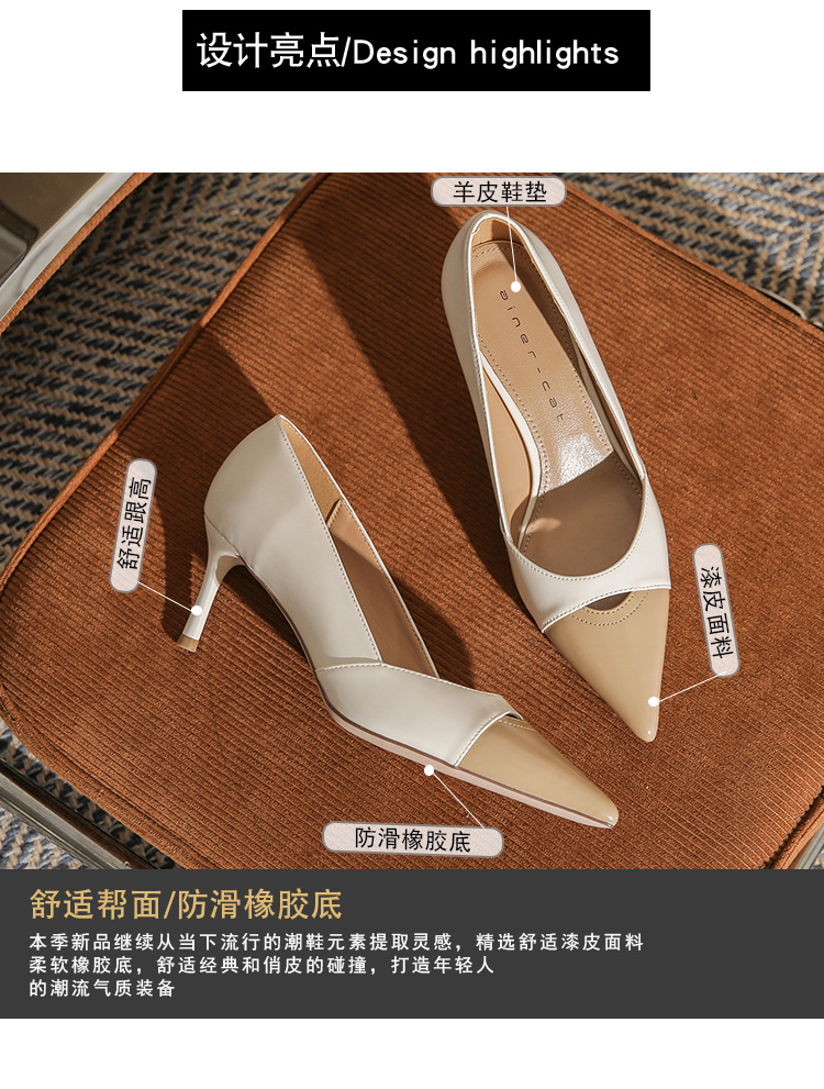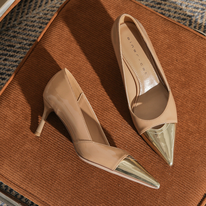 Giày cao gót nữ với thiết kế mũi nhọn và gót thanh mảnh, tạo điểm nhấn bằng sự kết hợp hai tông màu bóng đẹp. Kiểu dáng cổ thấp ôm chân theo phong cách châu Âu hiện đại, chất liệu bề mặt láng bóng dễ lau chùi. Sản phẩm phù hợp để phối cùng nhiều loại trang phục khác nhau. Khi sử dụng, nên chọn size vừa vặn và đi những bước ngắn để làm quen với gót giày trước. | Tên sản phẩm: Giày Cao Gót Nữ Mũi Nhọn Gót Nhọn Phong Cách Âu Mỹ - Giày Dép Nữ | Mã sản phẩm: A1083 - Giá: 830.000đ | Mã nhà sản xuất: HUDS-G03Hình ảnh sản phẩm